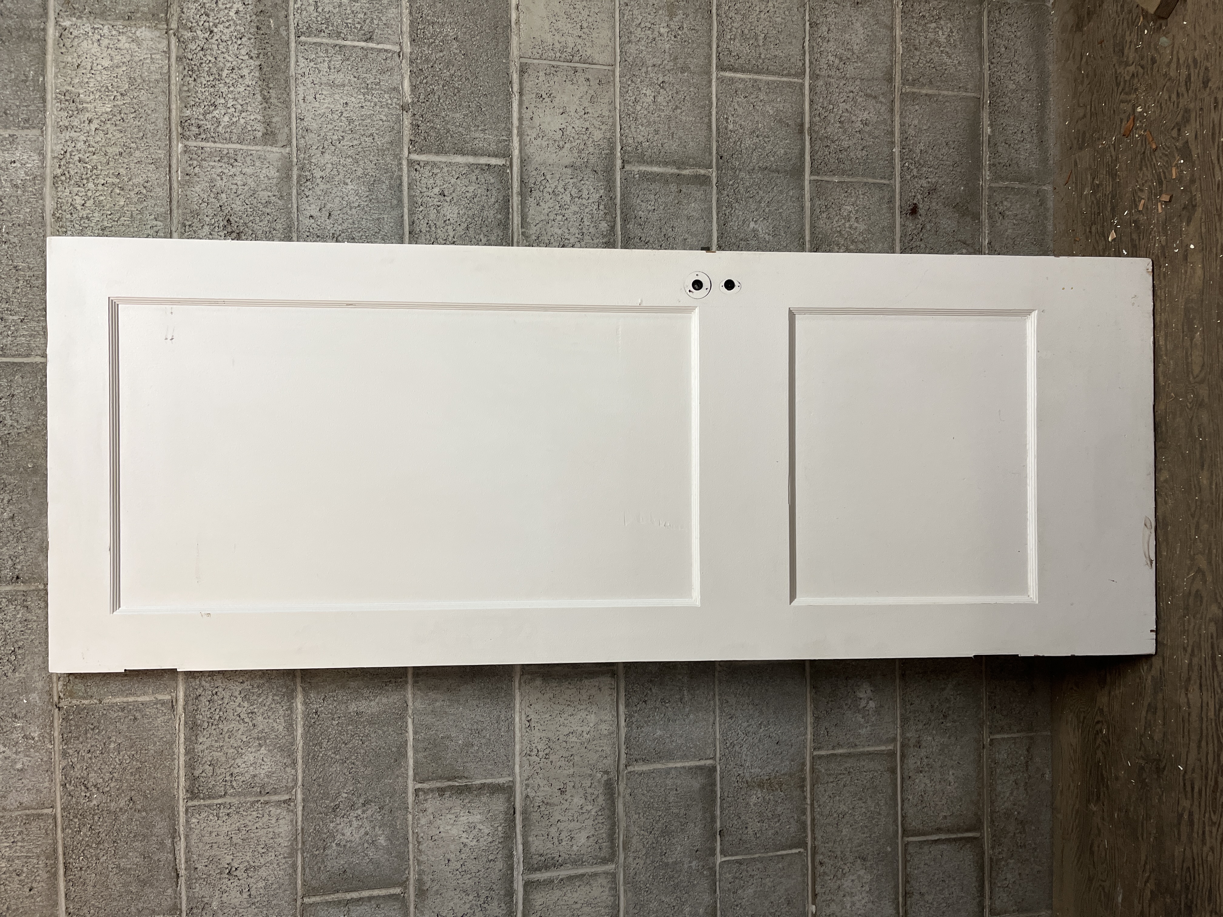 A simple vintage two panel door. It's a right hand swing, painted white both sides and in good workable condition. Measures 30 x 80 x 1.375 inches.