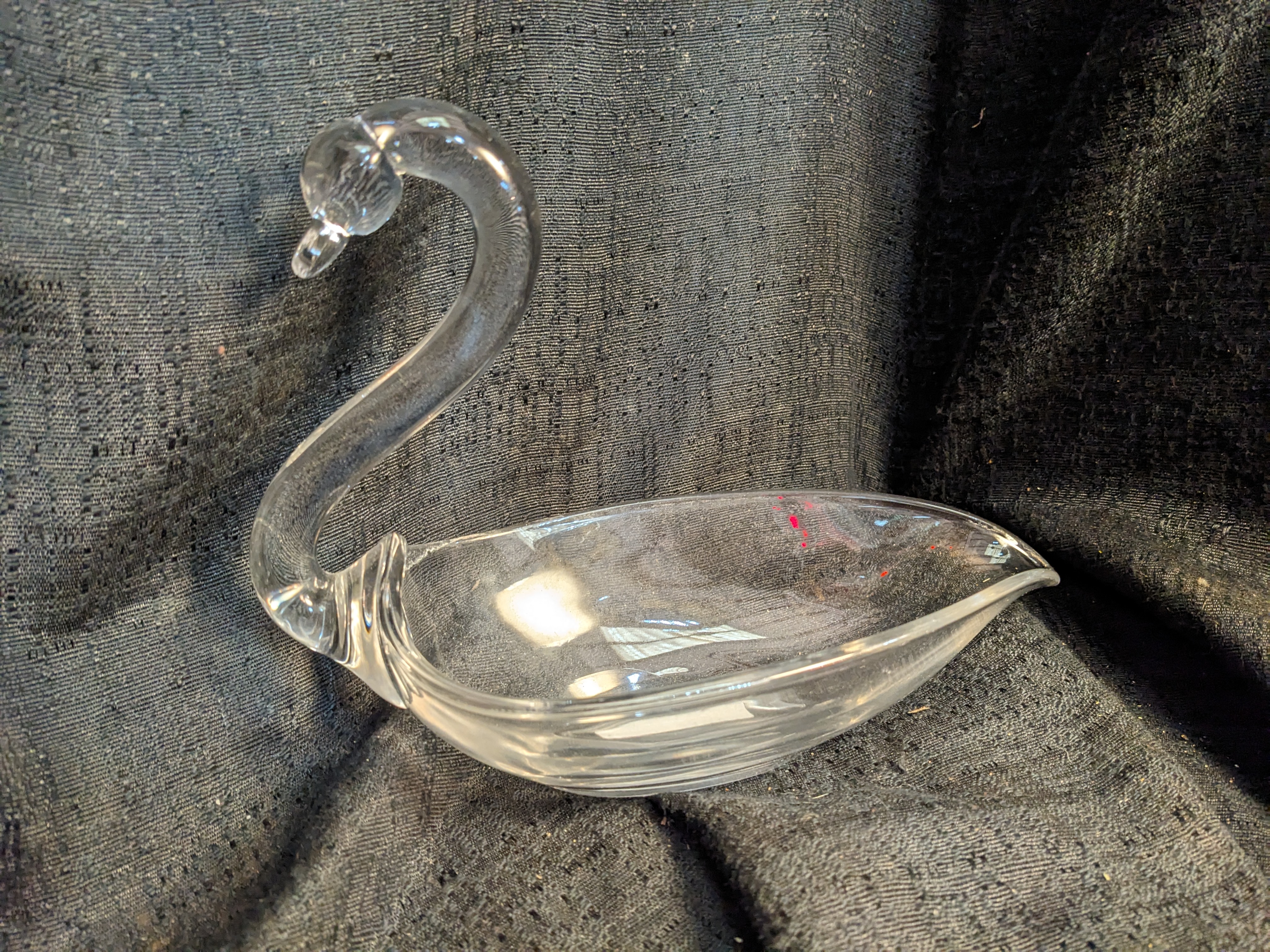 This glass swan would make a good catch all or candy dish. Classy and in good condition with no noticable damage, chips, or scratches.