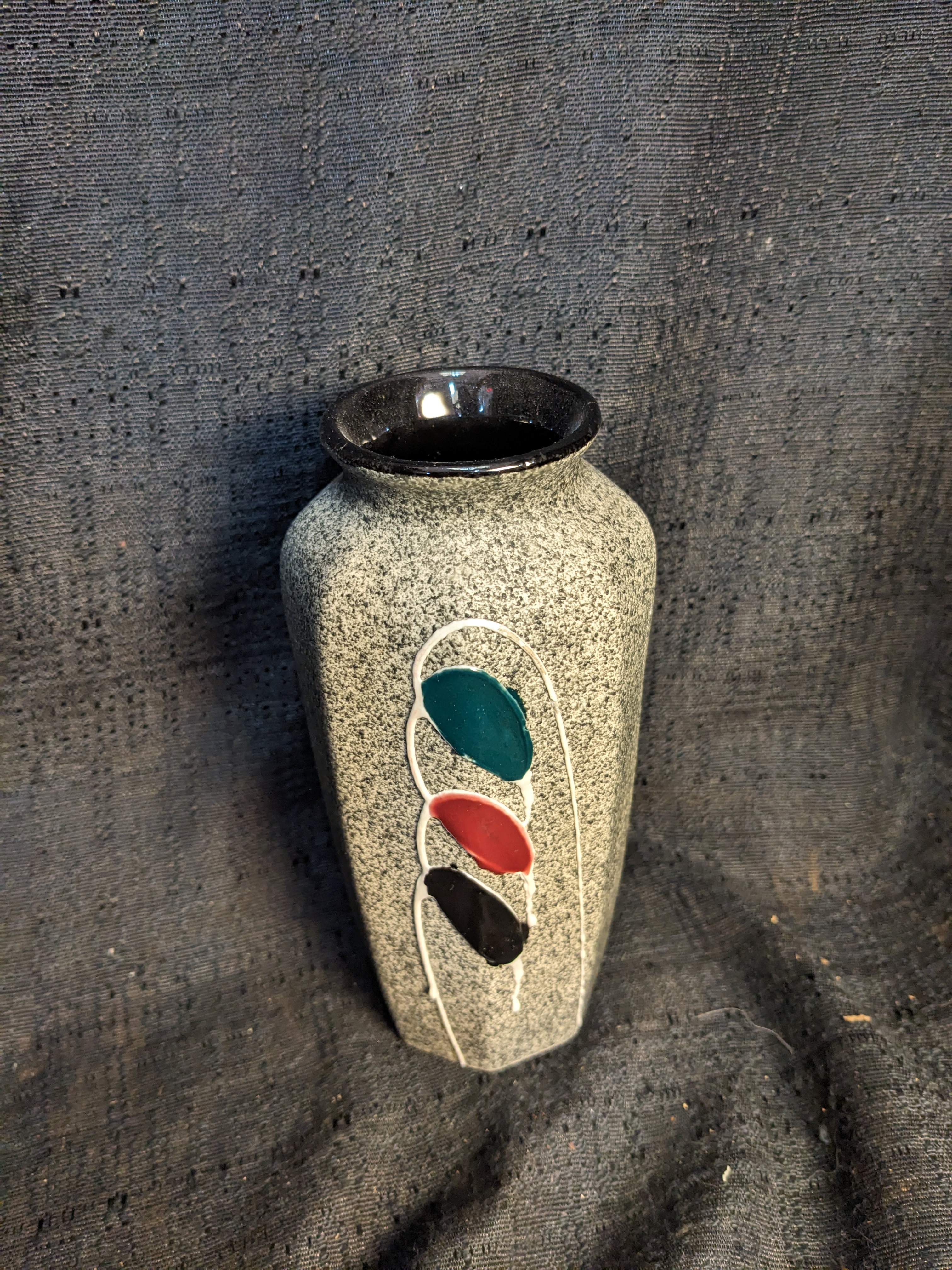 This stone bud vase measures 3 x 6 and features a stone pattern with multi-colored glaze splotches. Super cute and glazed on the inside so it's a functional vessel for propogations or small flower arrangements.