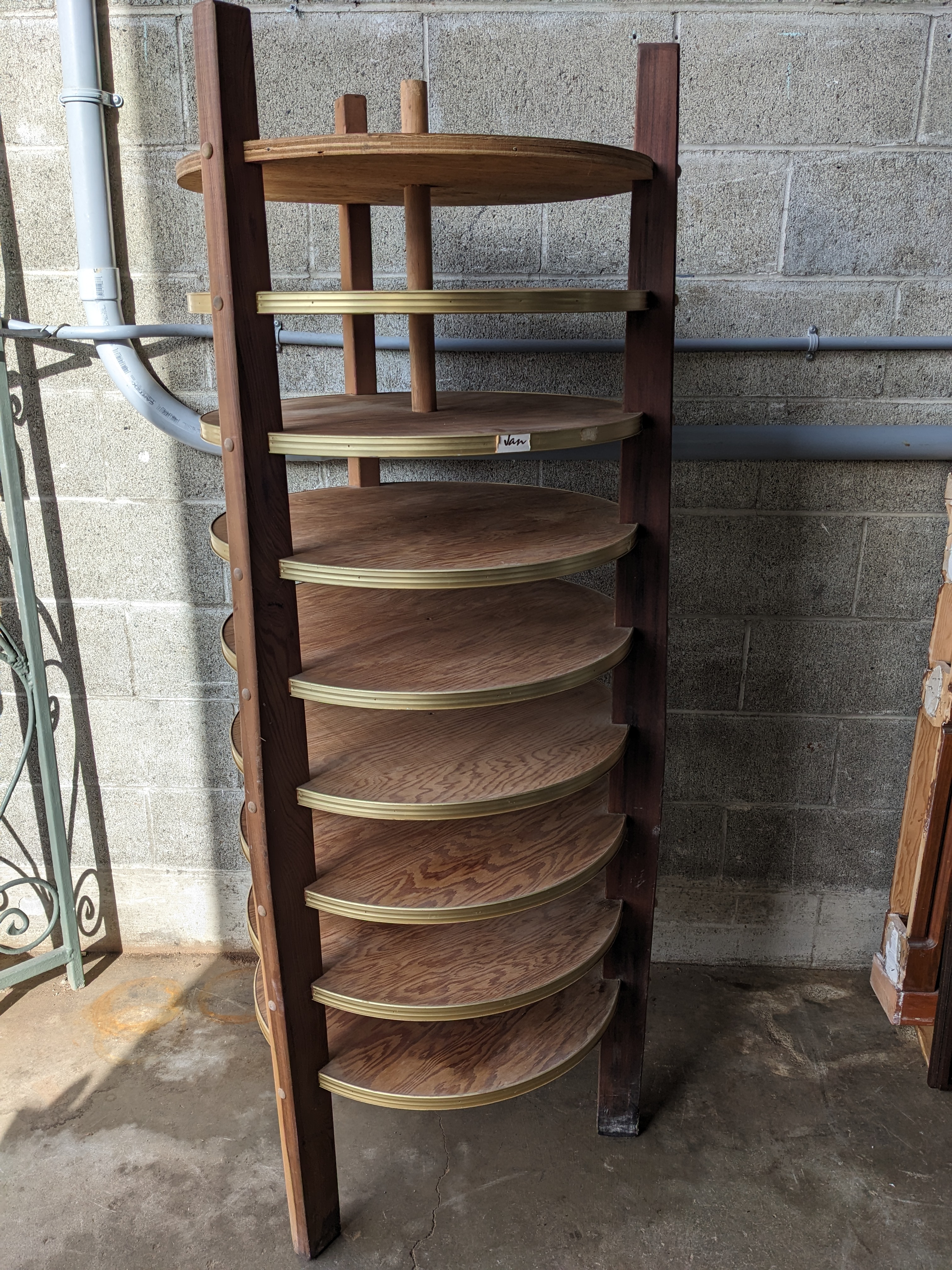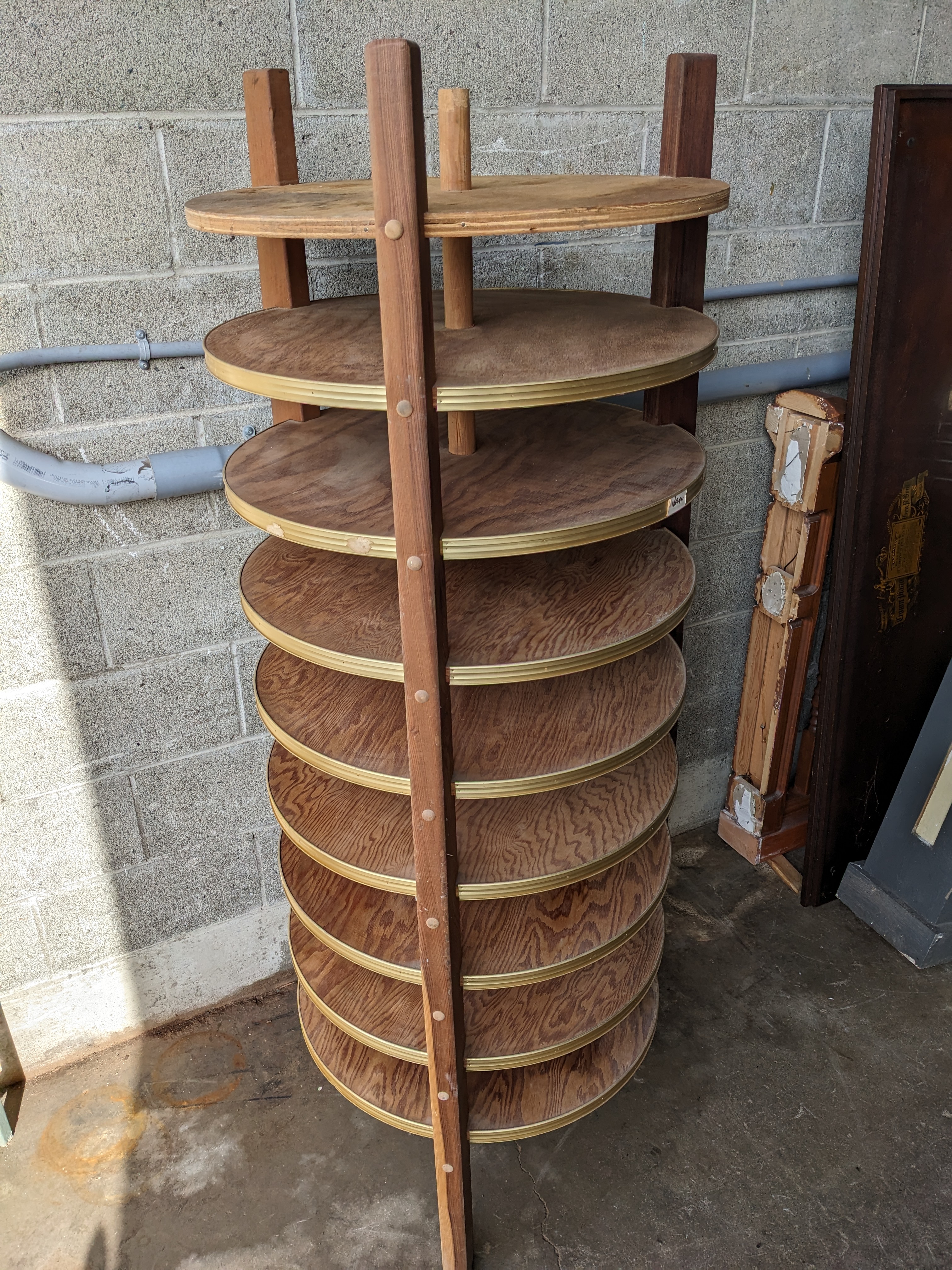 7-tiered wooden shoe rack tower. Features a 360-degree display.