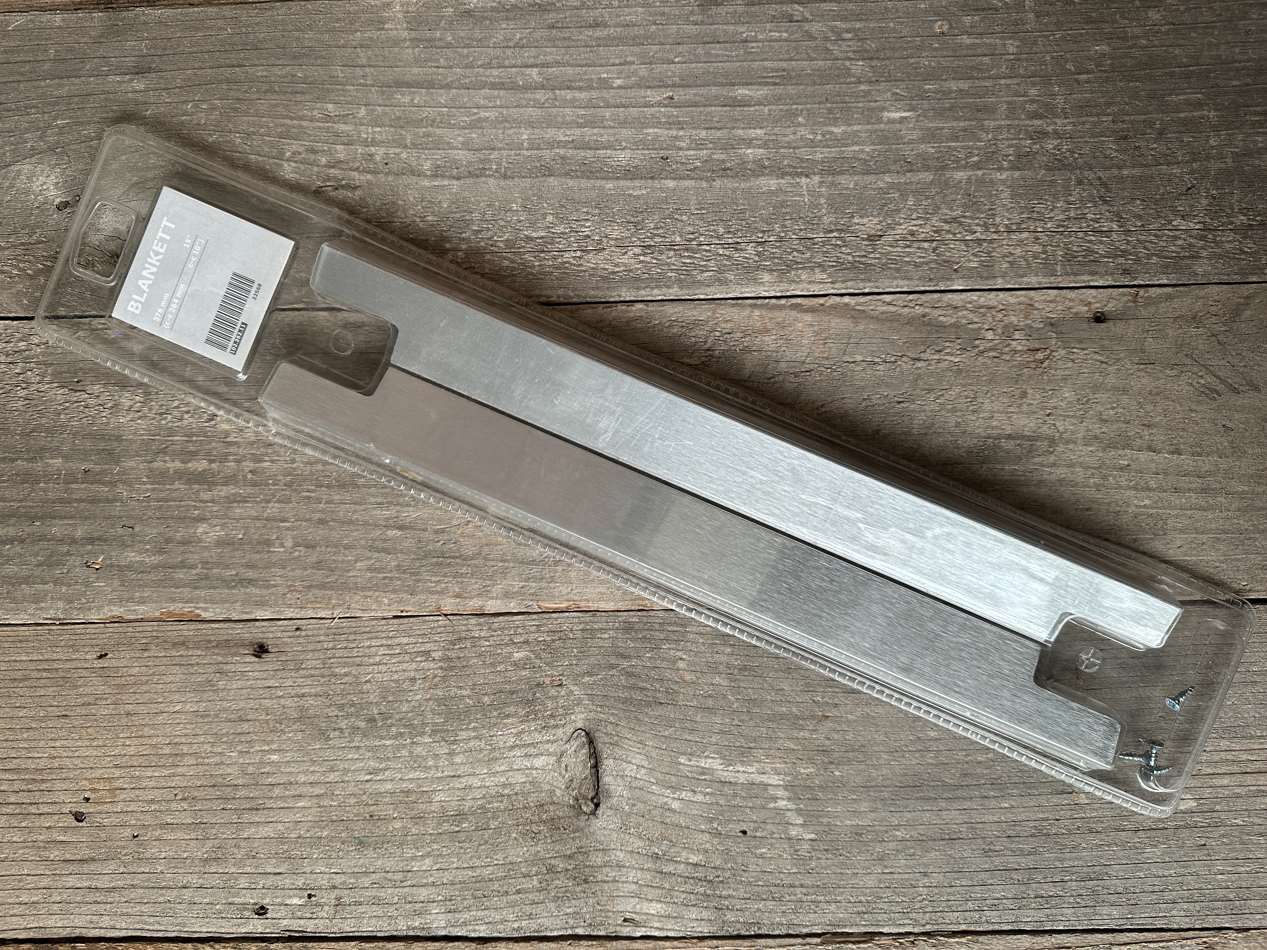 New set of two IKEA Blankett drawer pulls in a brushed chrome.