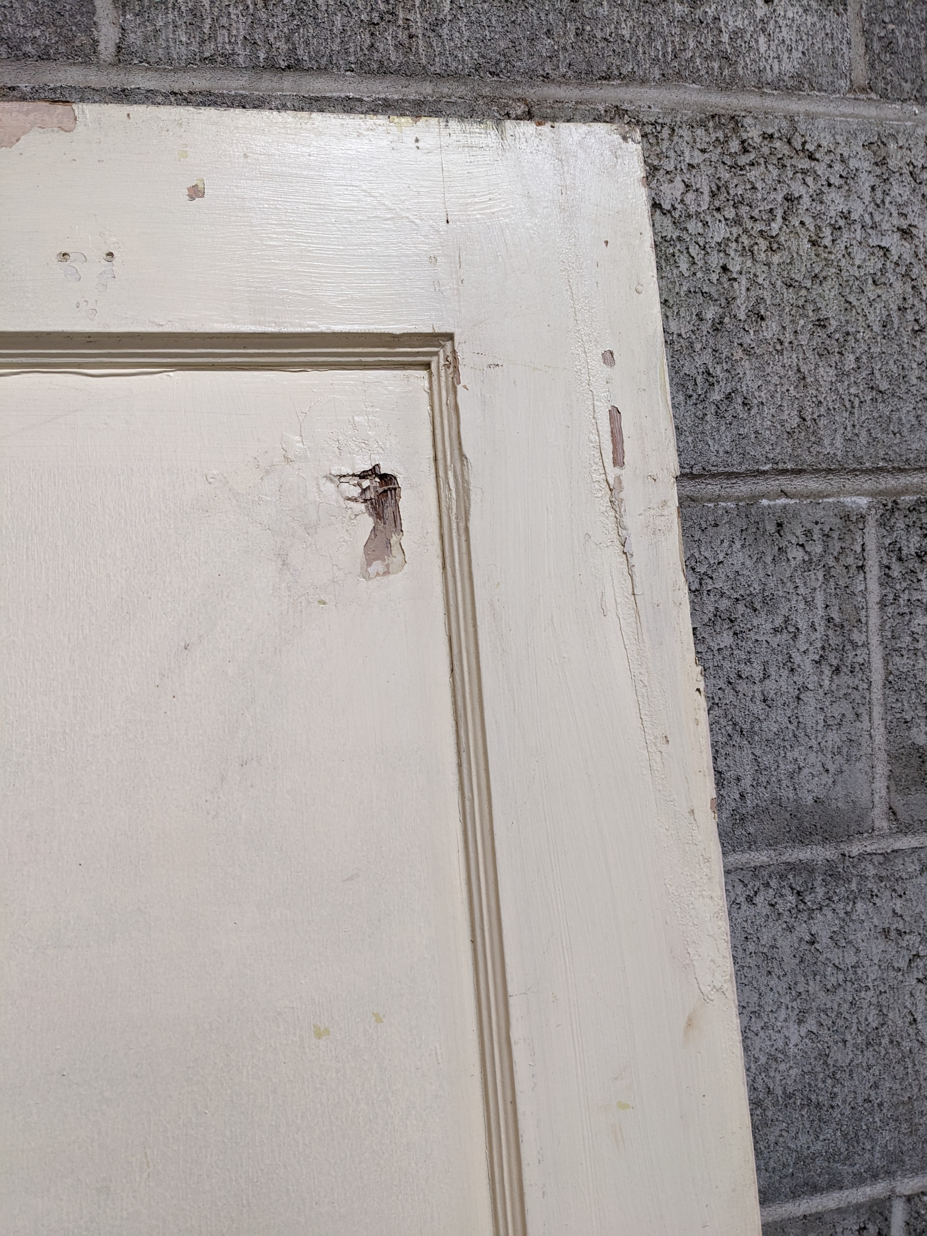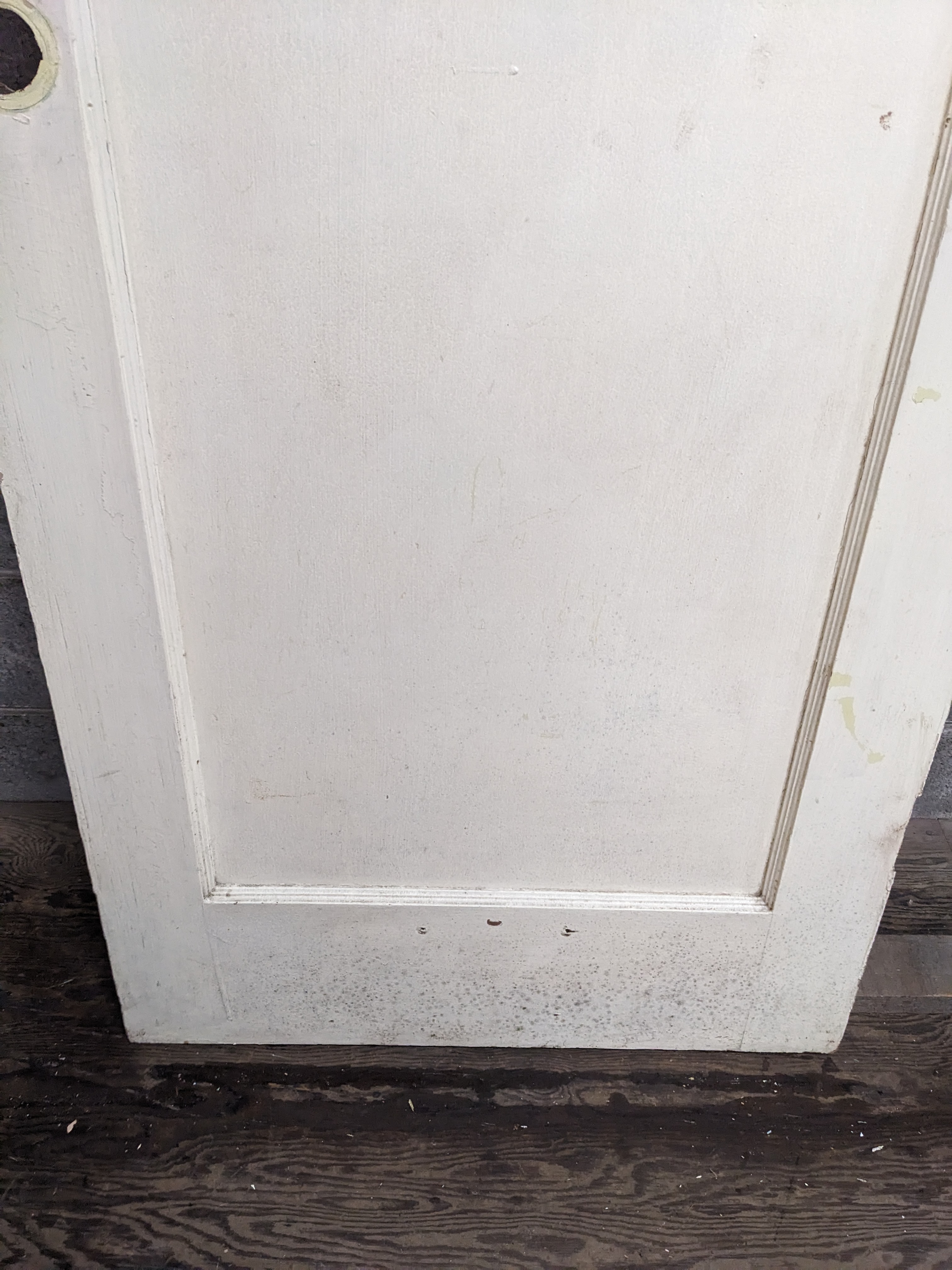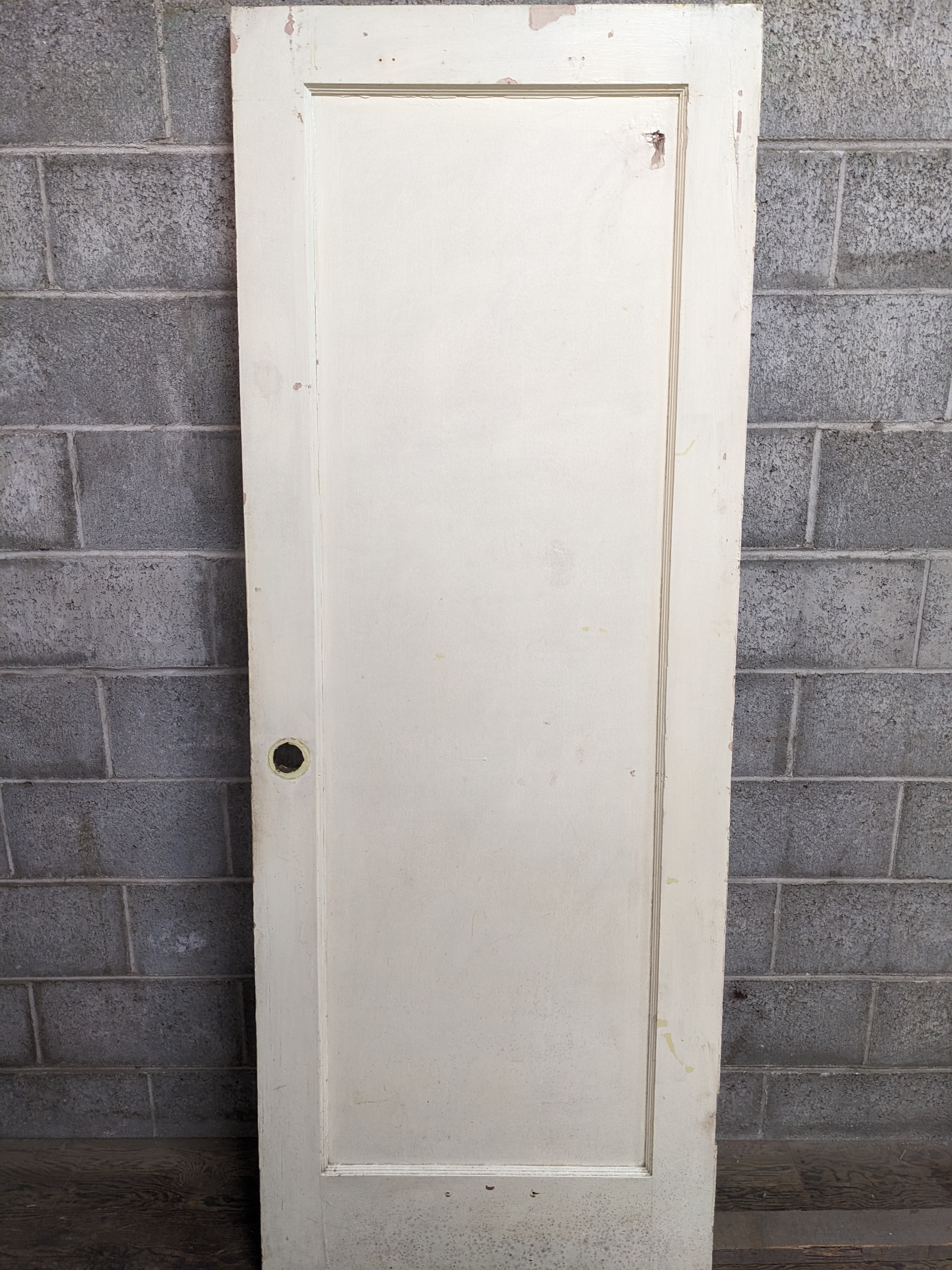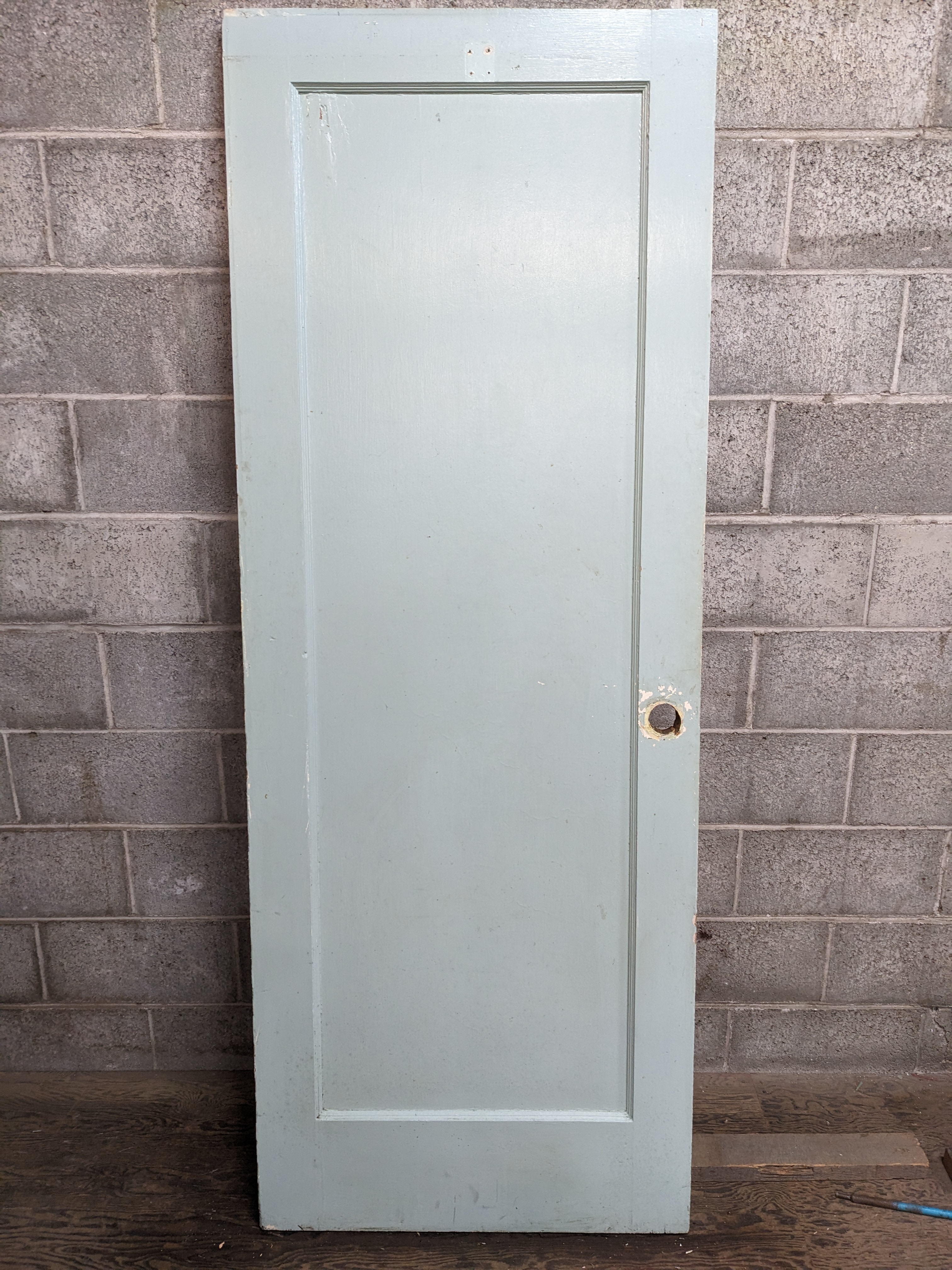 Fully painted single panel interior door. Signs of repair, could use a coat of paint.