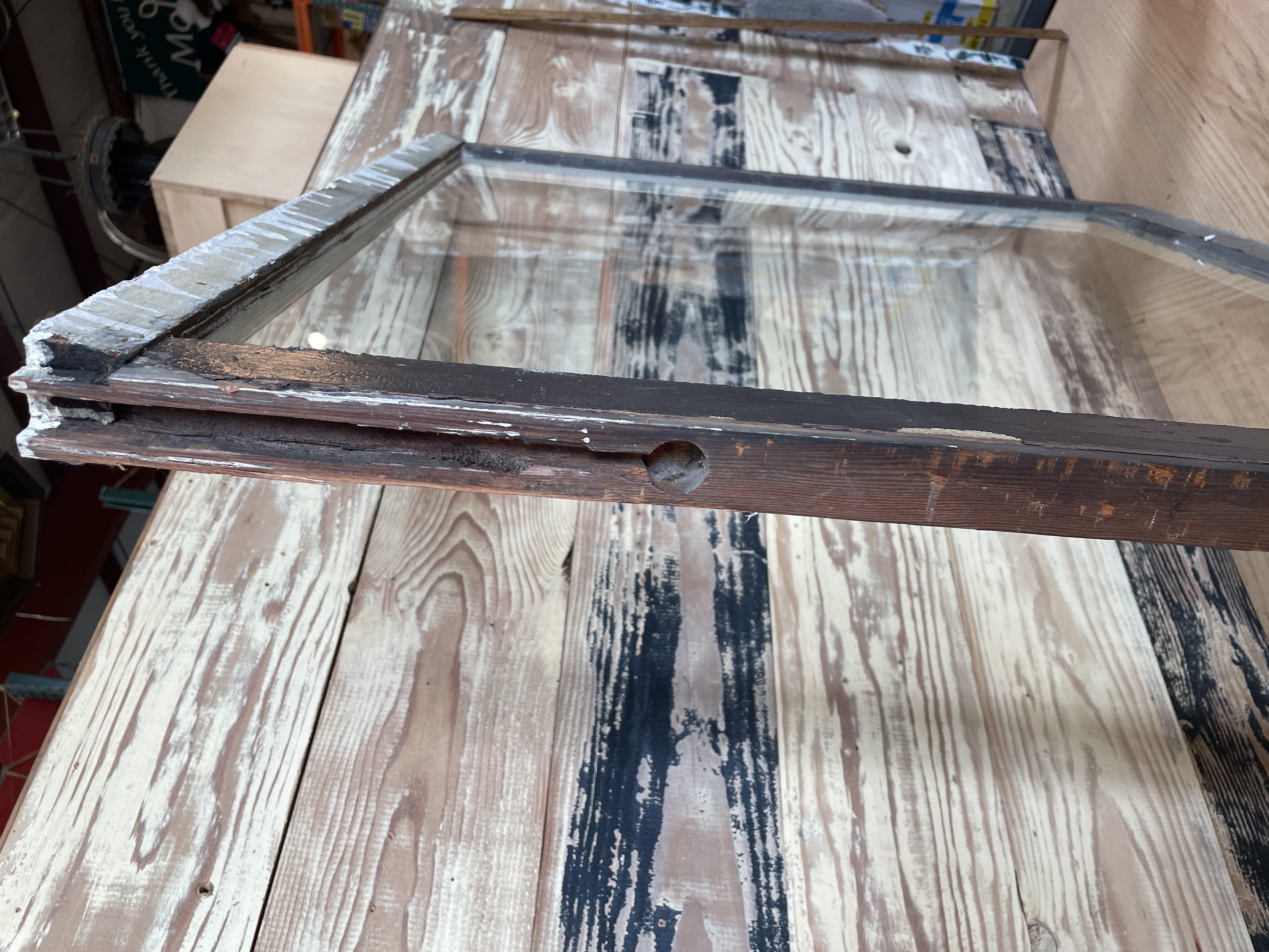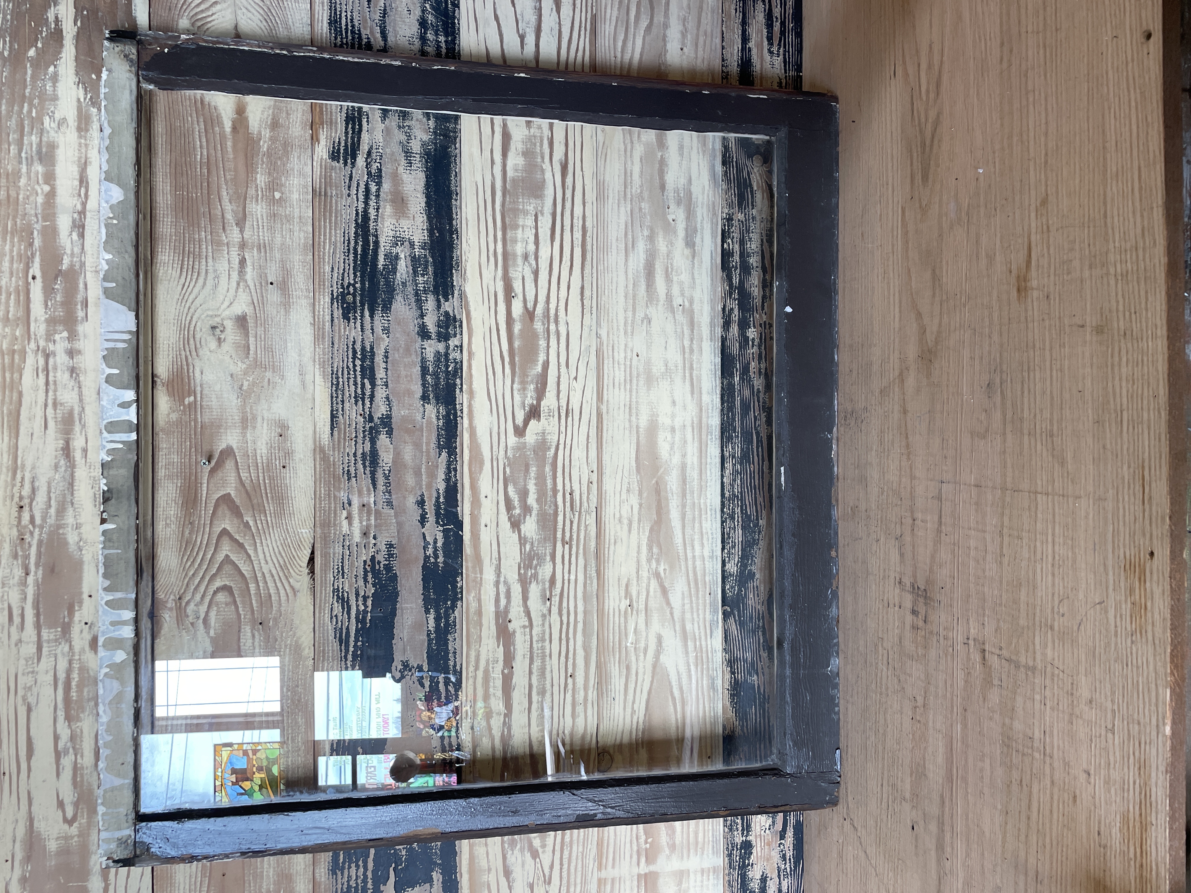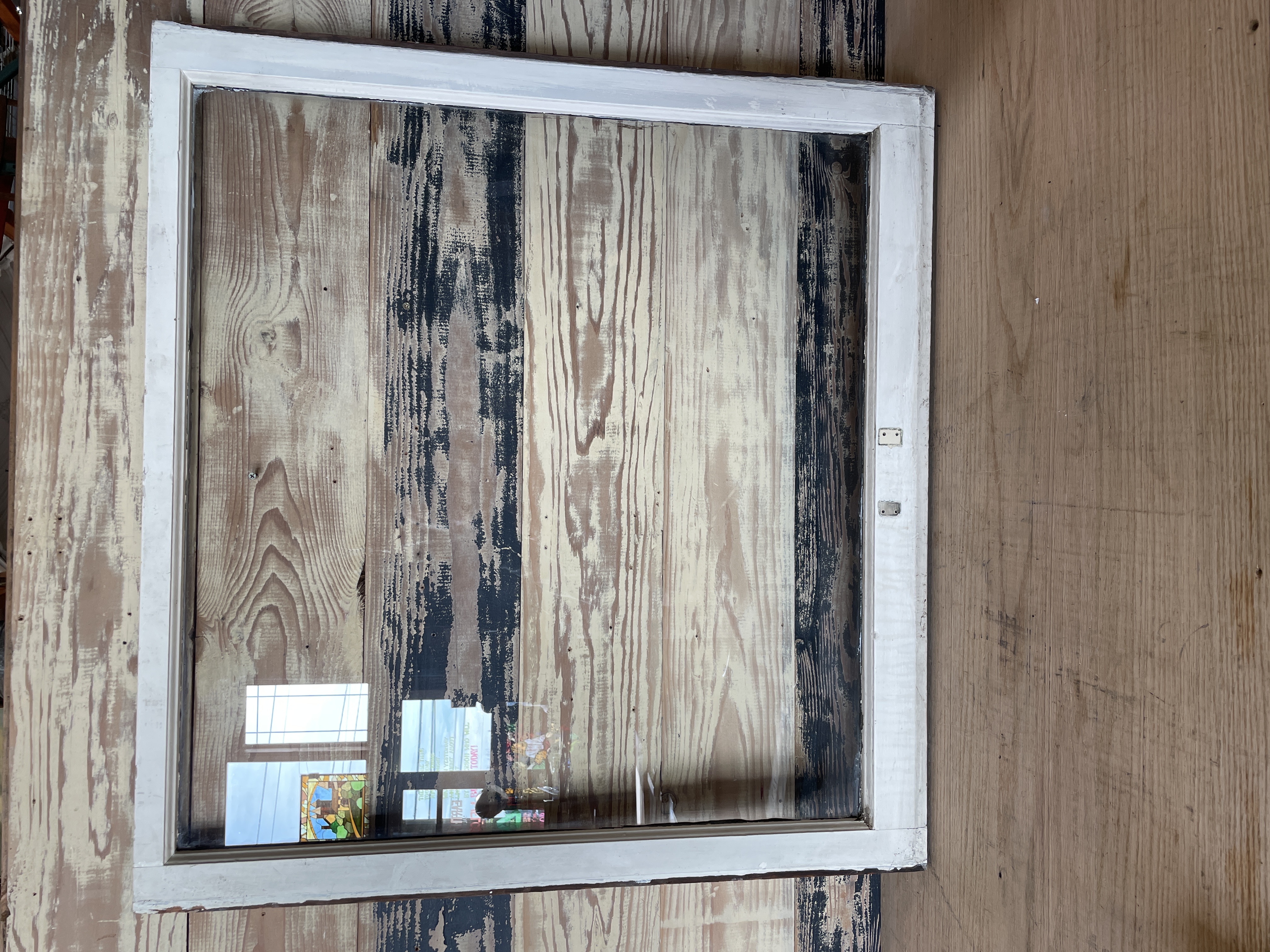 Painted cream on one side and brown on the other side. No cracks or chips. In fair condition.