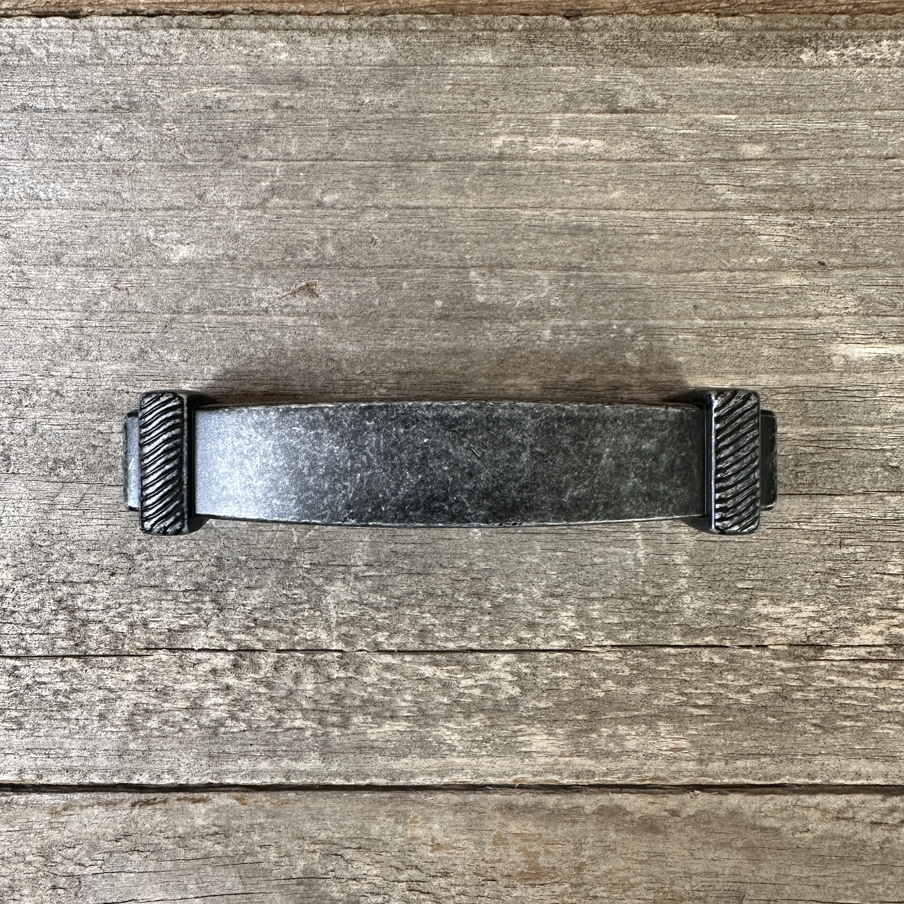 New old stock Amerock Forgings Etched drawer pull in wrought iron. Comes with mounting screws. Multiple in stock; images may be representational.