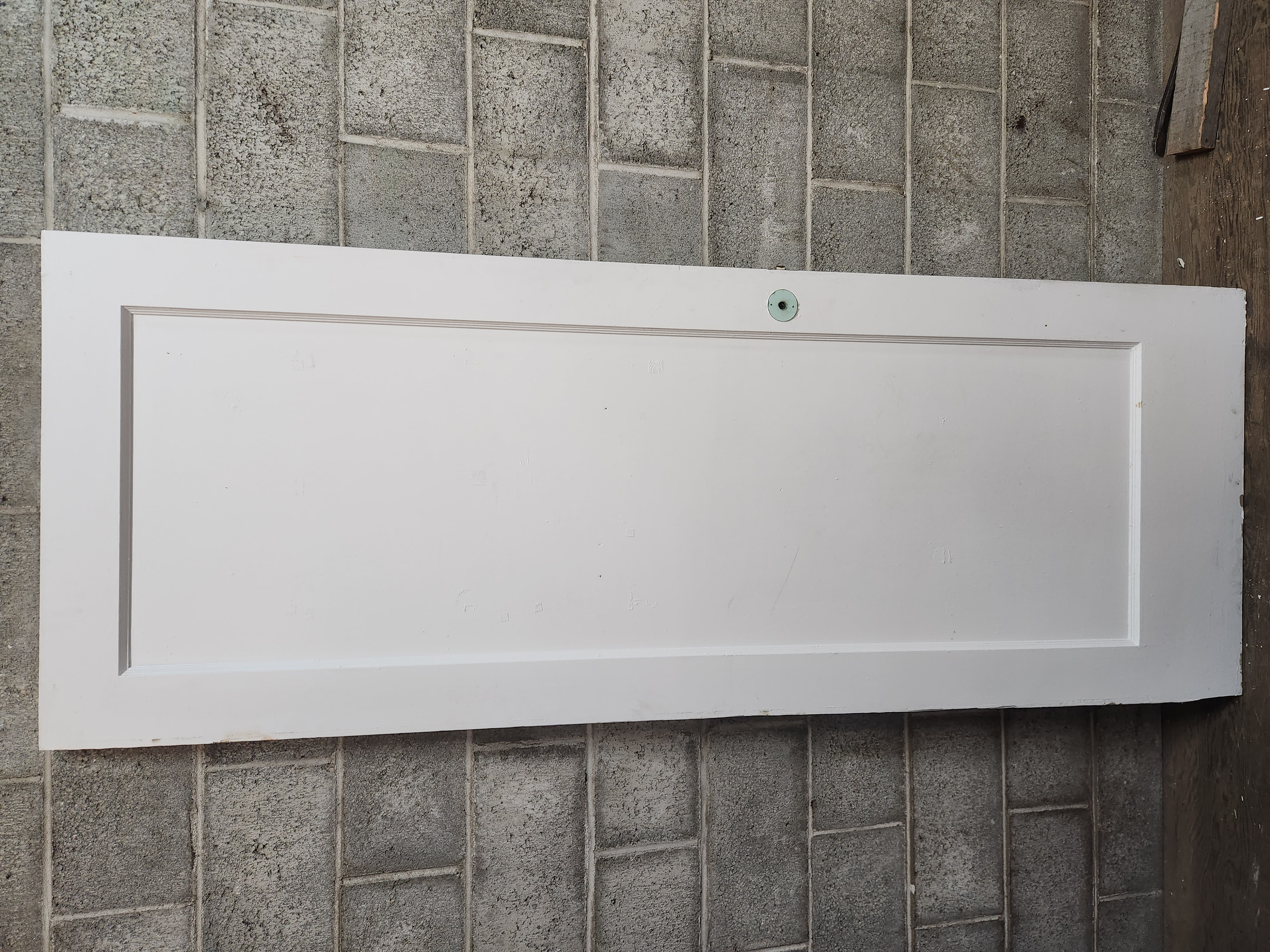 Vintage 1 panel interior door thats in fair condition. Painted both sides with some wear. Has a chip out of bottom corner. Measures 30 x 79.5.