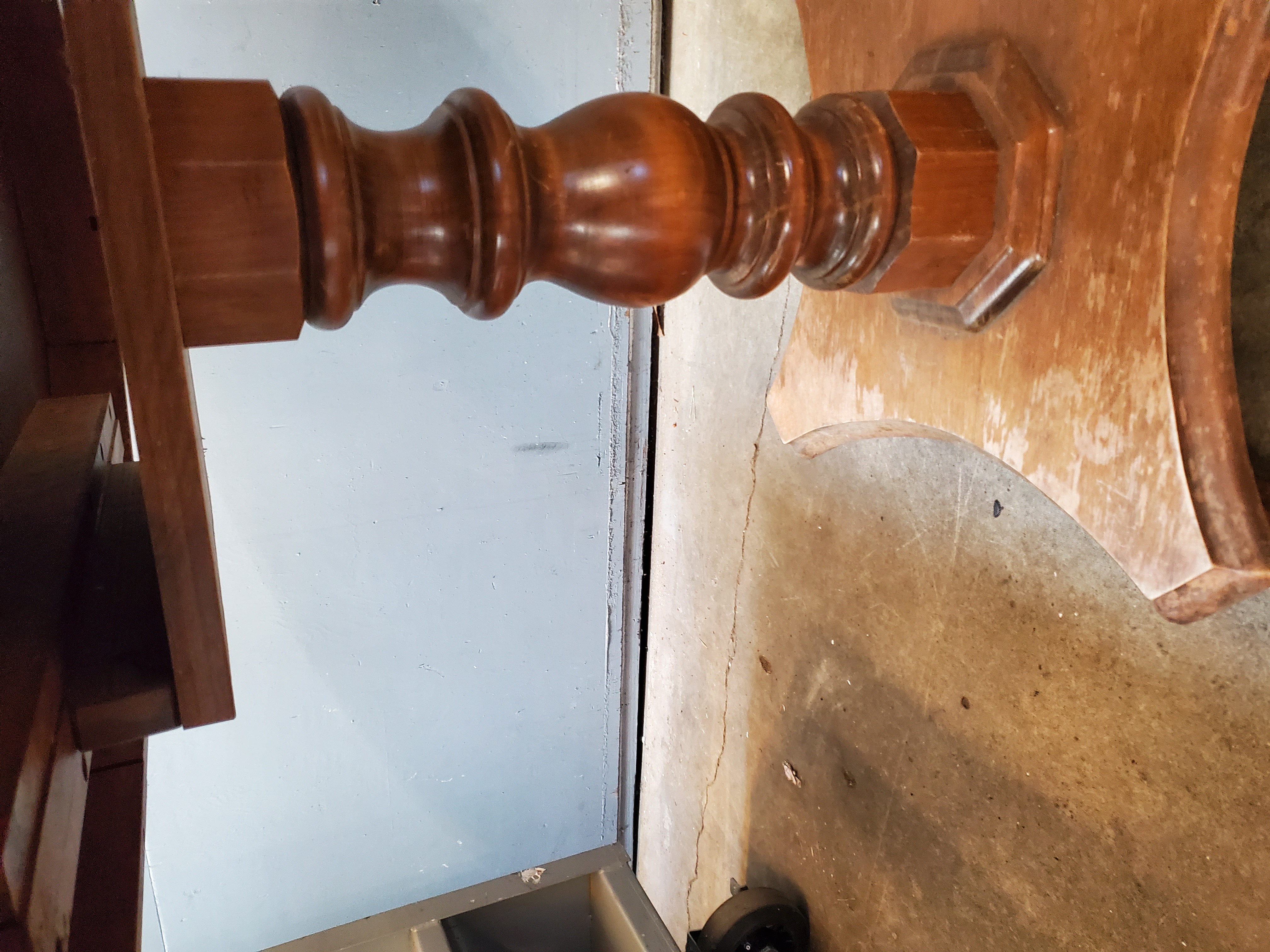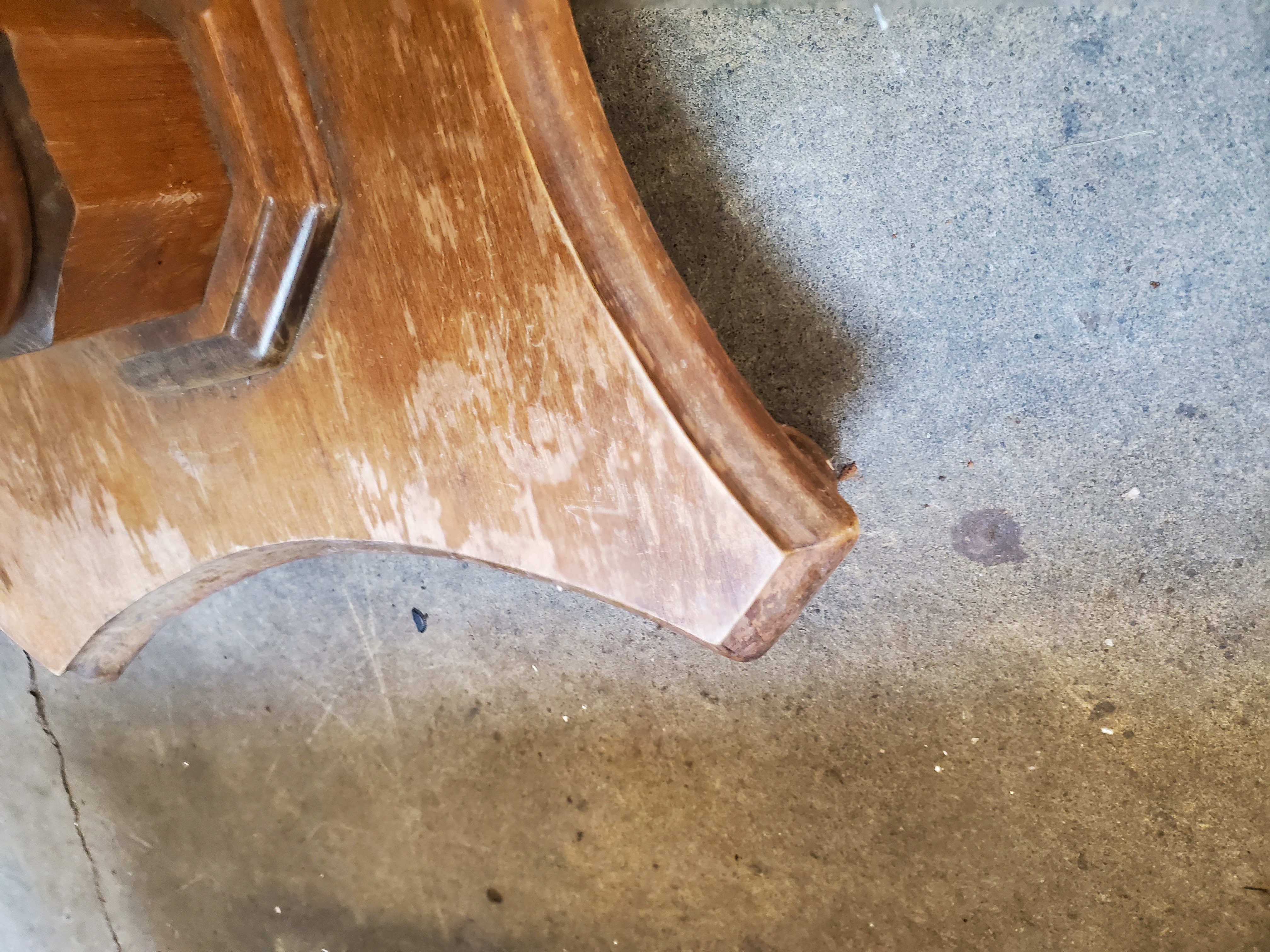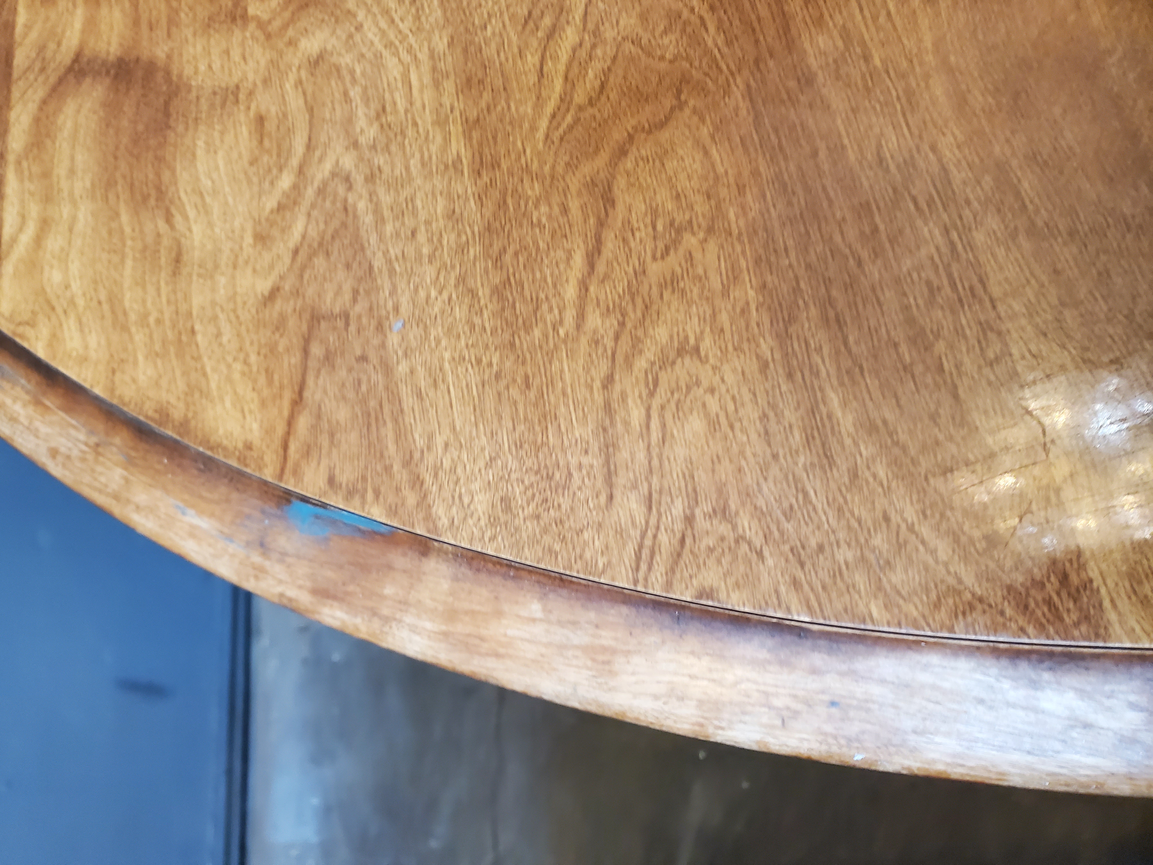 This vintage table is in pretty good shape. The veneer is holding up on the top although it does have some typical wear and tear. It is missing the leaf.