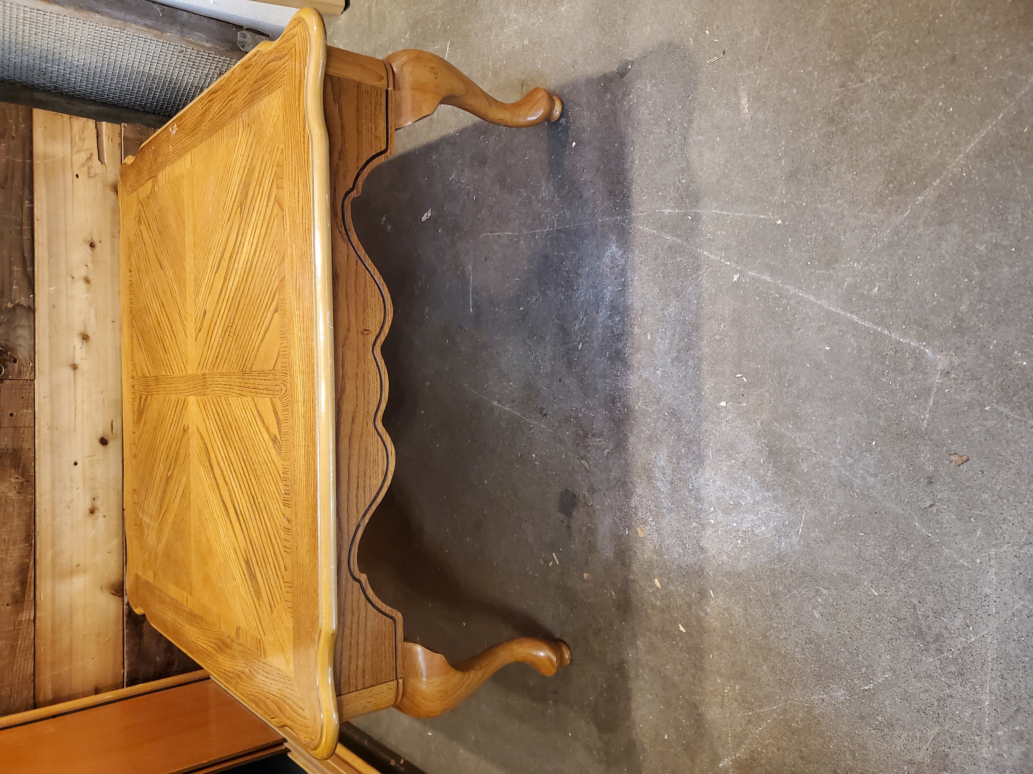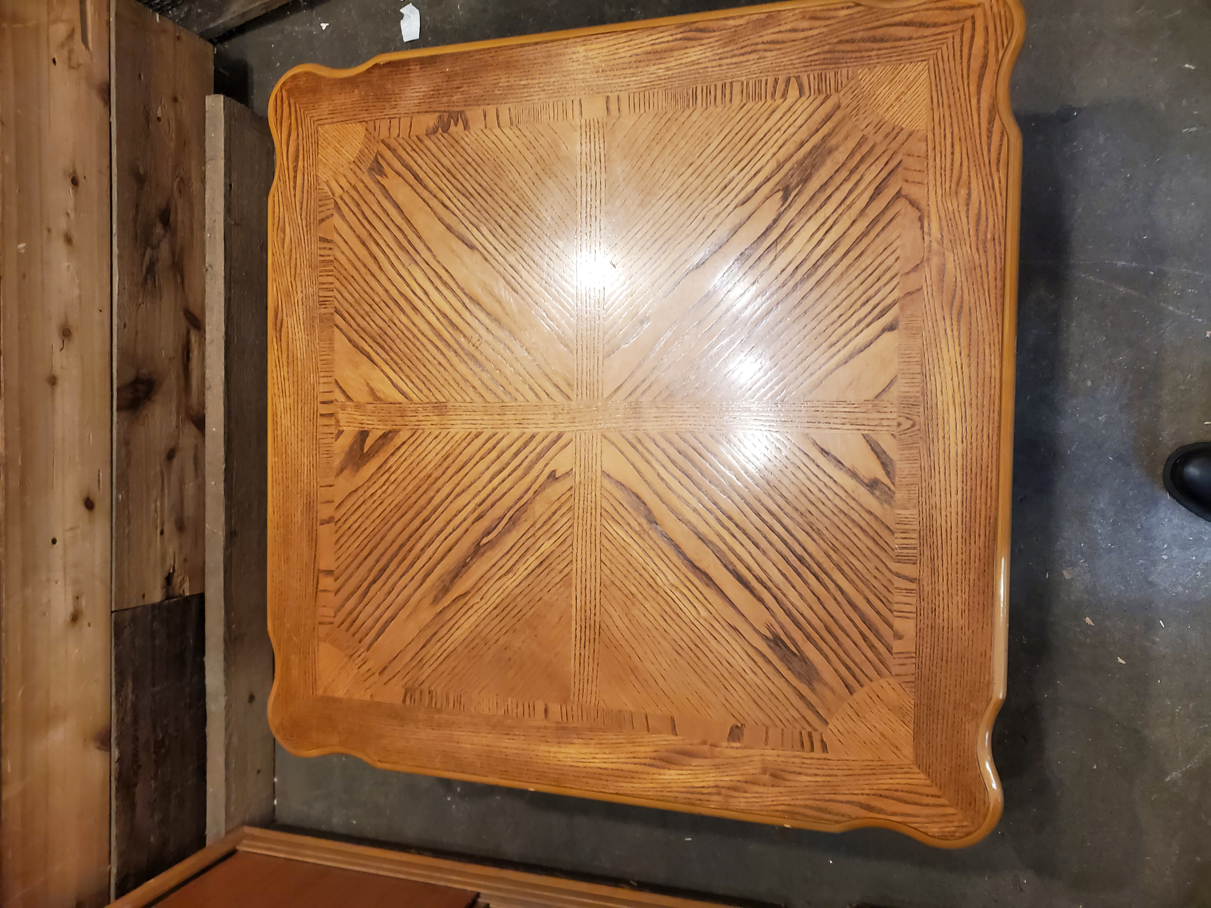 This coffee table is in good condition outside of your typical qear and tear. It is still very shiny and was obviously well taken care of. It would be perfect for a small living room that needs a more square coffee table that isn't too tall.
