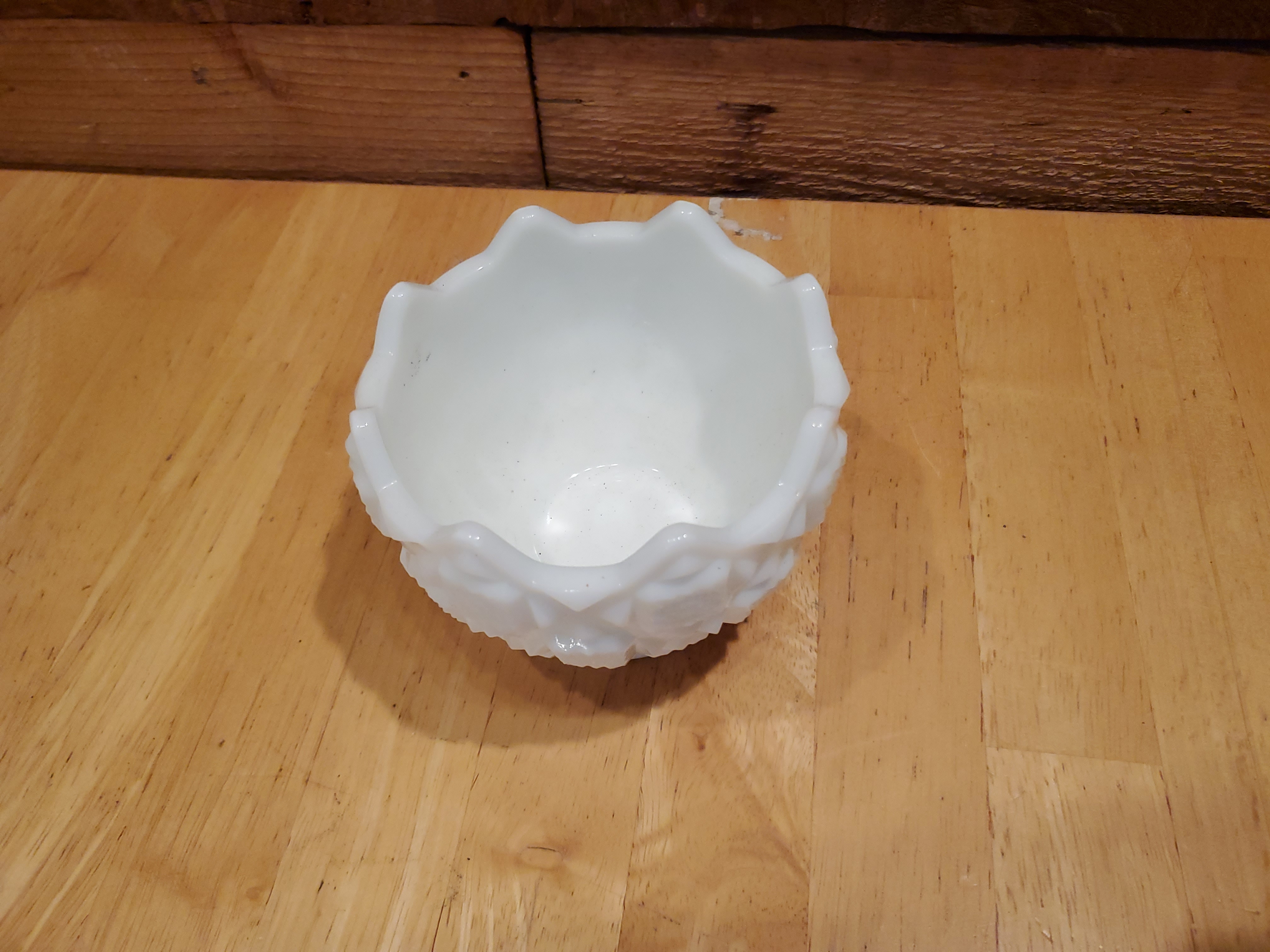 This cute little milk glass bowl looks like it came right off of grandma's table. It is in great condition and would be a great addition to your milk glass collection.