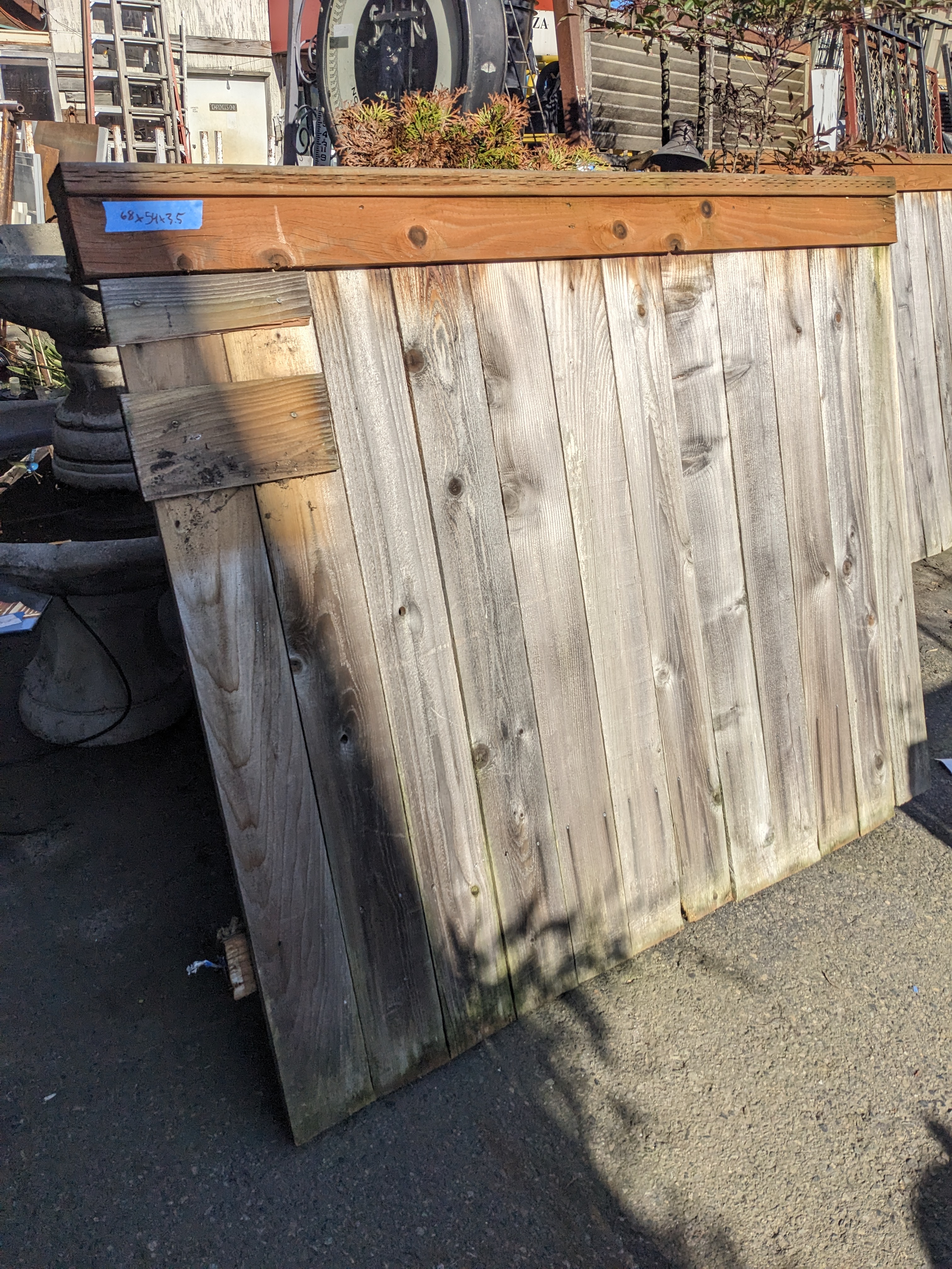 Fence panel, great for backyard or around a garden. Some of the boards are uneven, nothing a few cuts can't fix. In good condition. No major rot or mold.