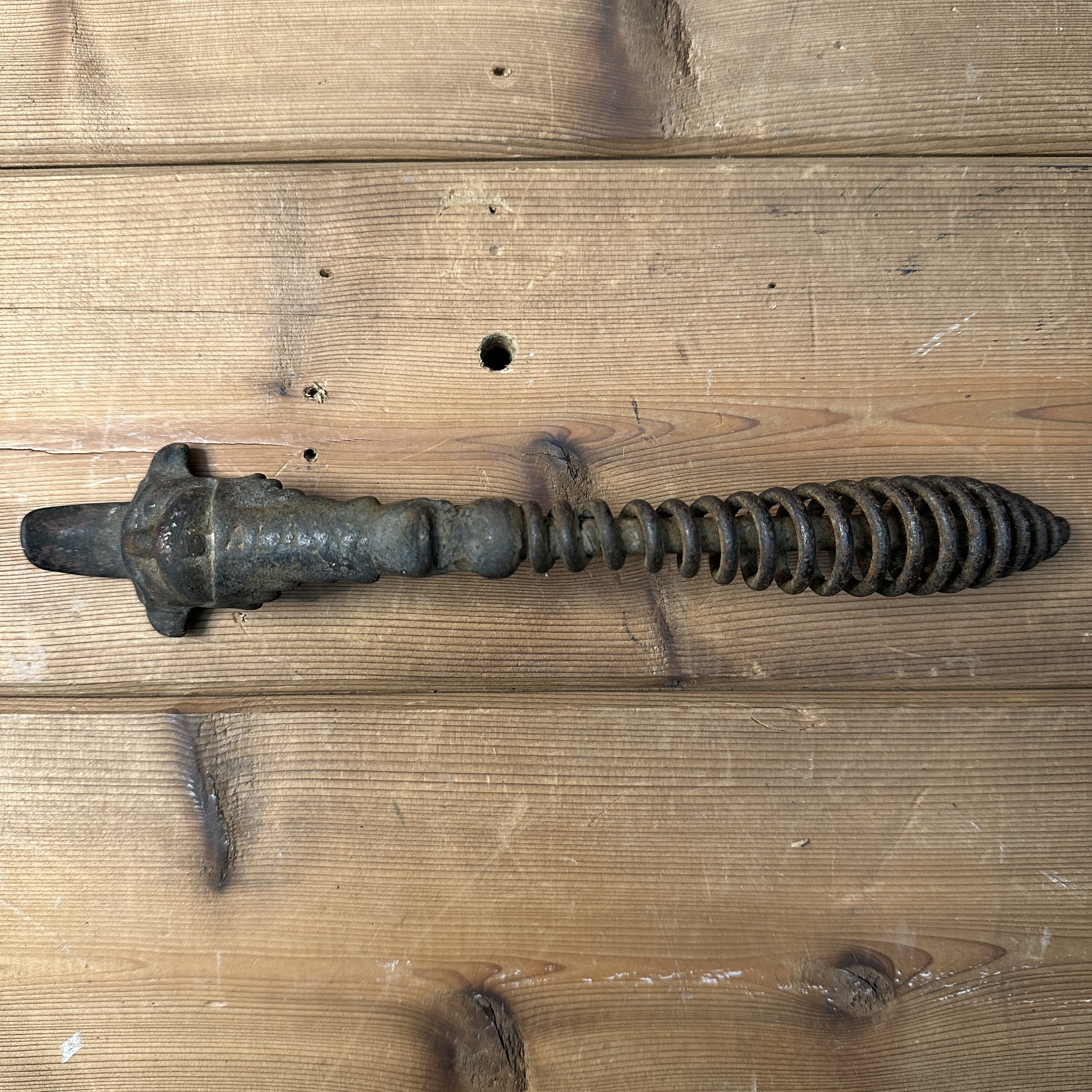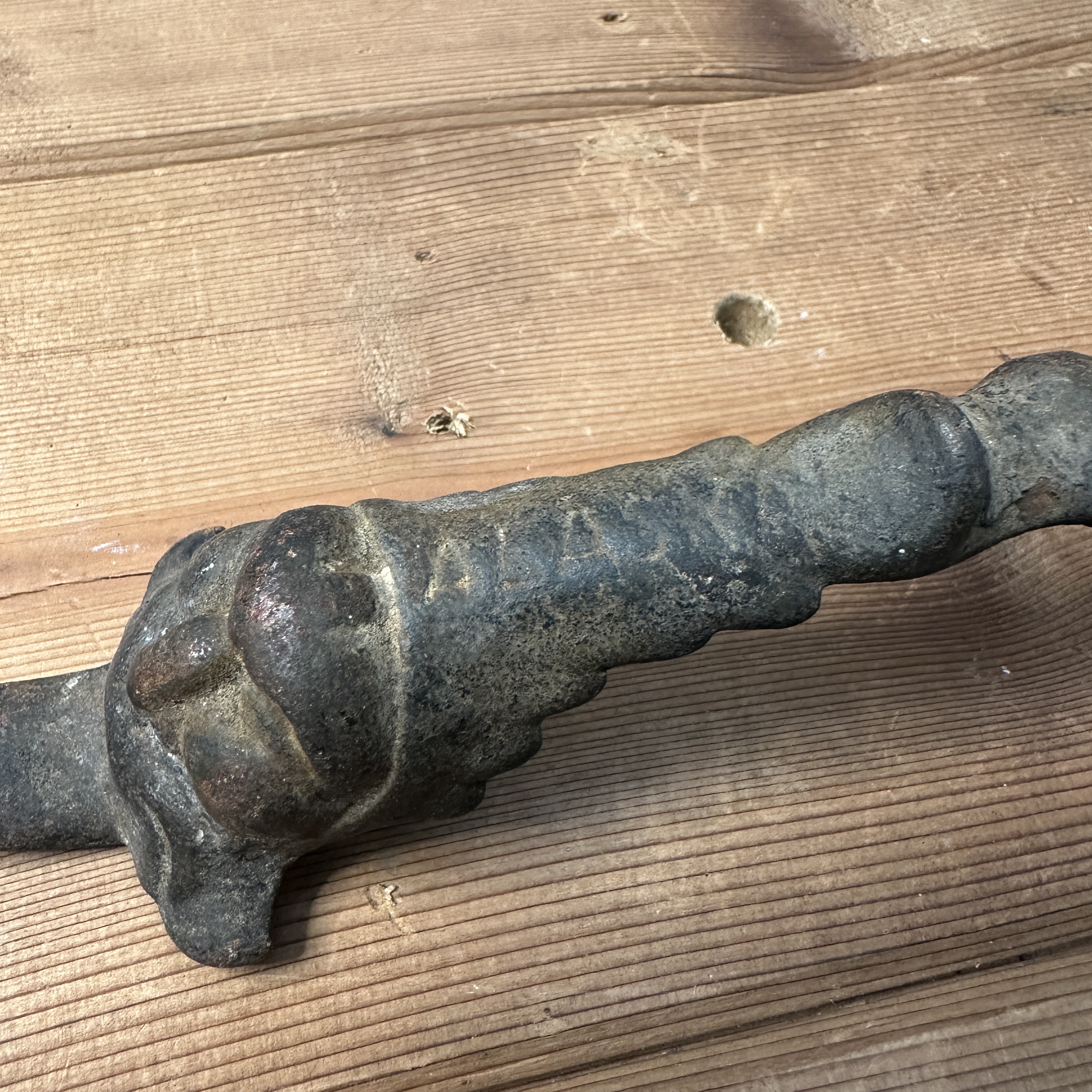 Cast iron Alaska stove lid lifter in good condition without damage. It does have surface rust and grime and might need a good cleaning.