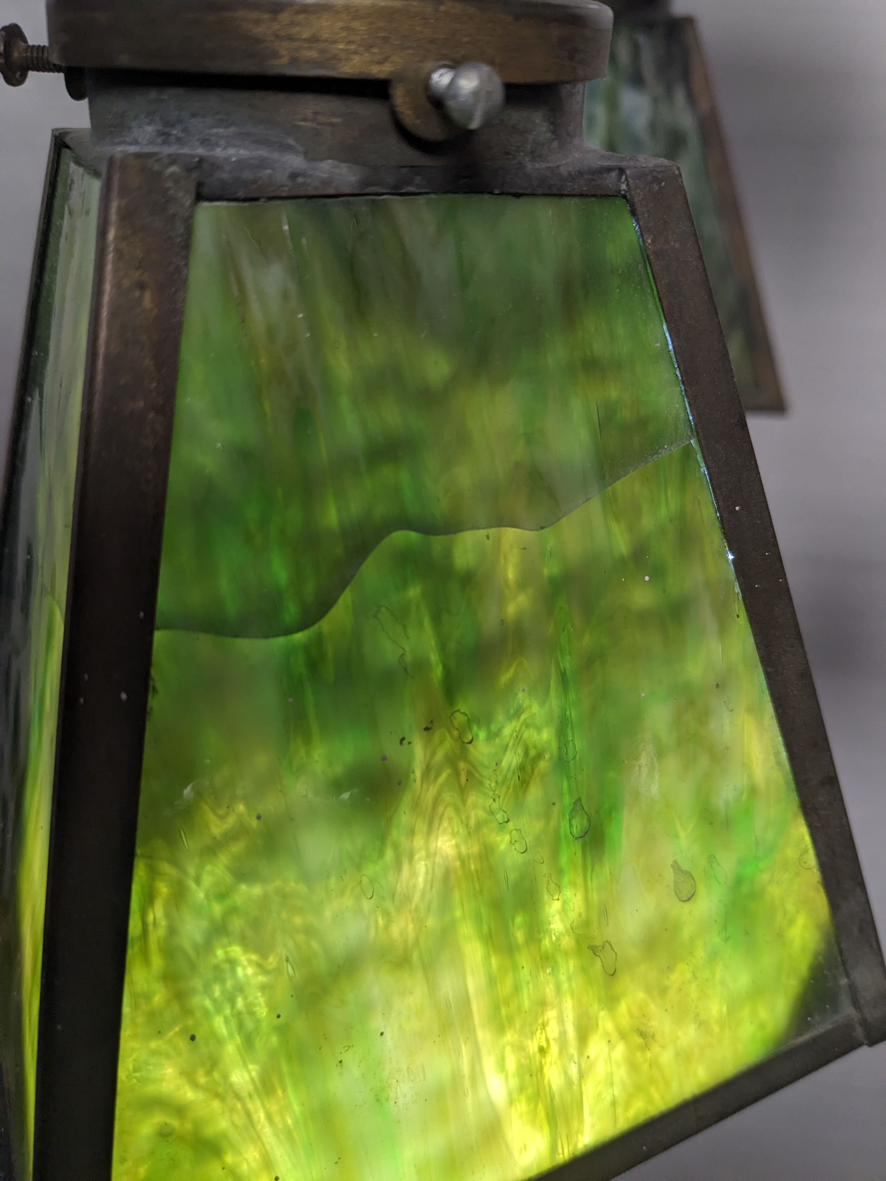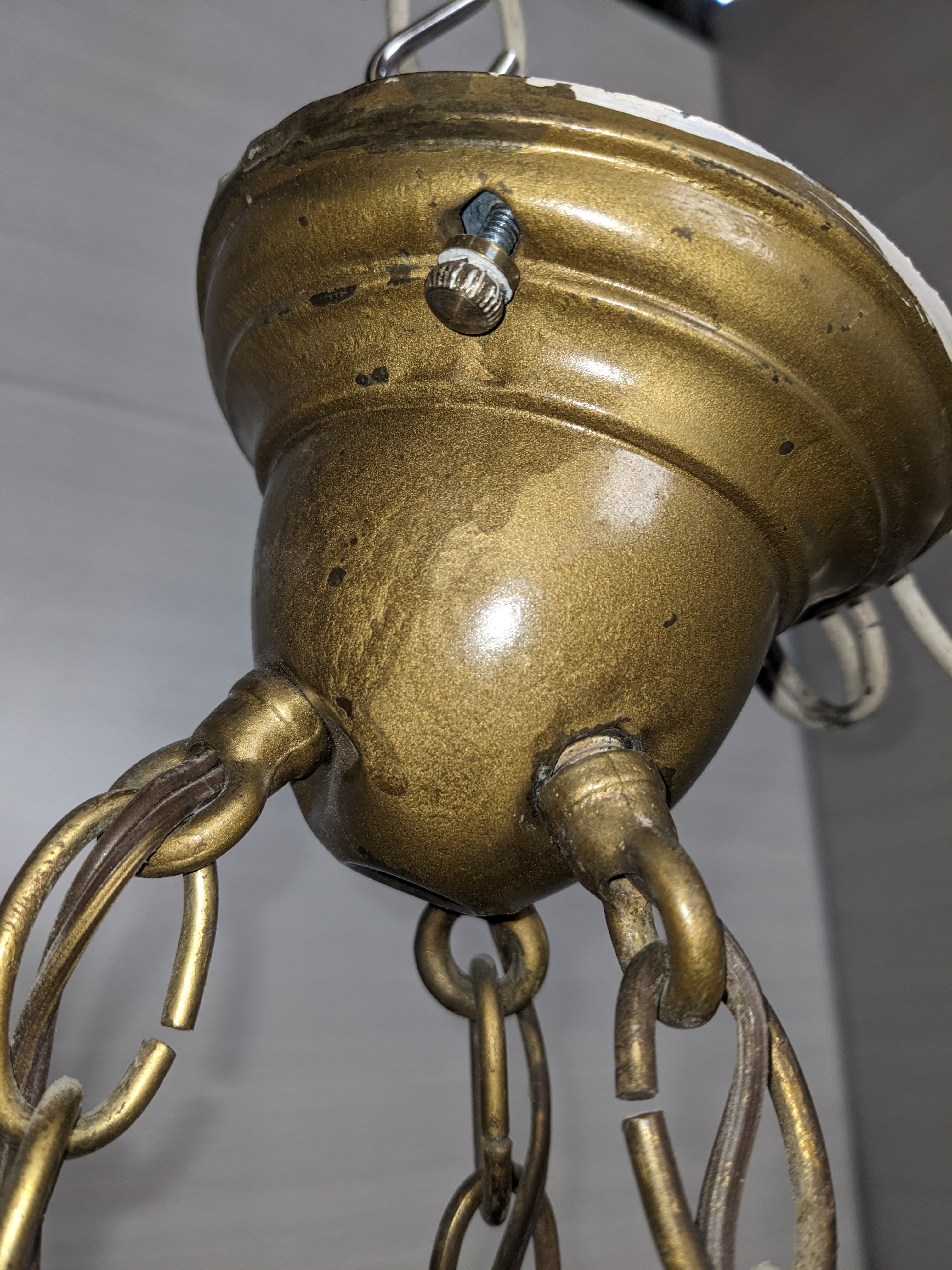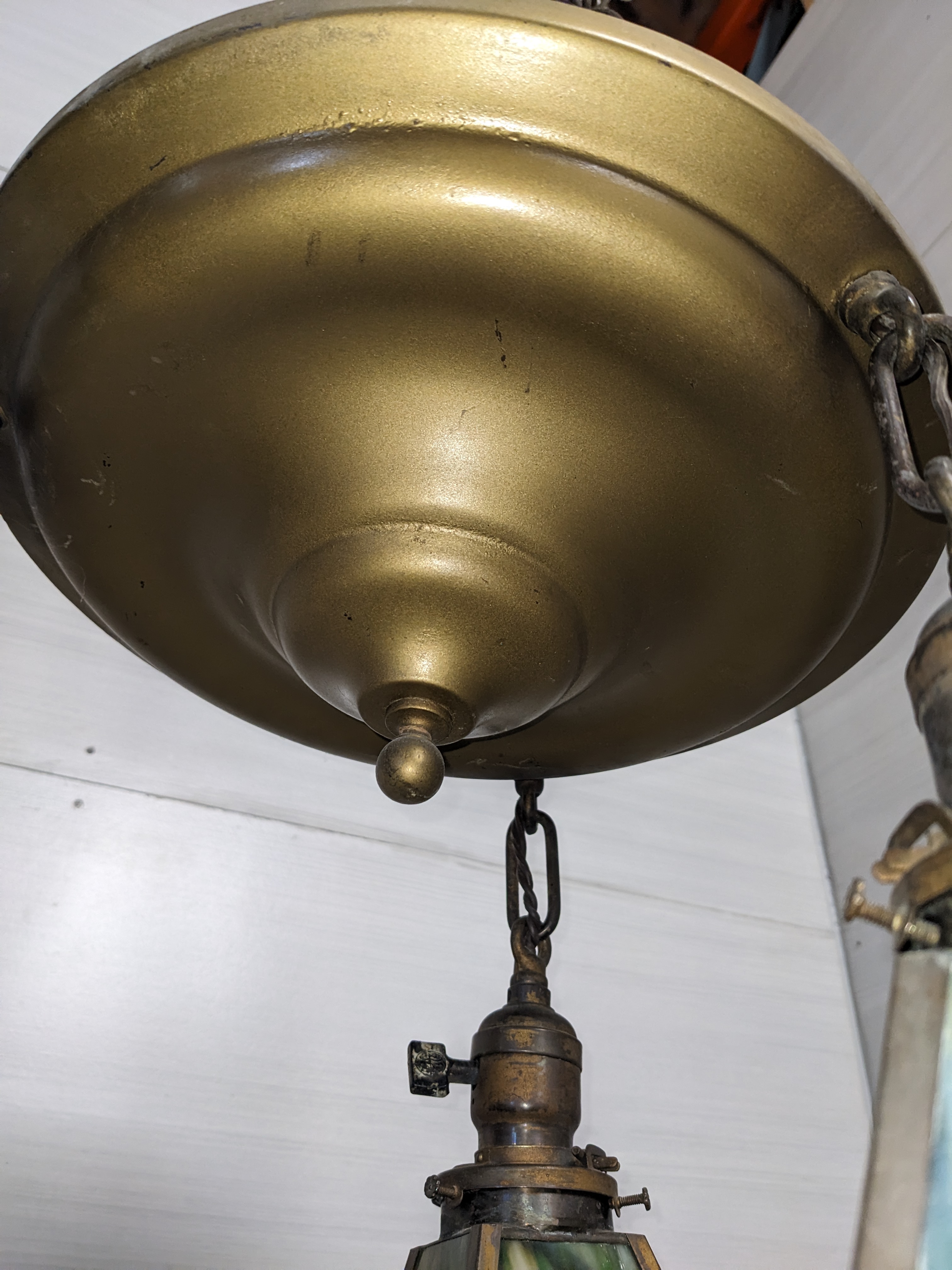 This light is sold As-is. It needs some work. The wiring is updated, that's good. All 3 of the shades are cracked on 3 of the 4 sides. They aren't horrible, see photos and then decide. Still a pretty cool light.