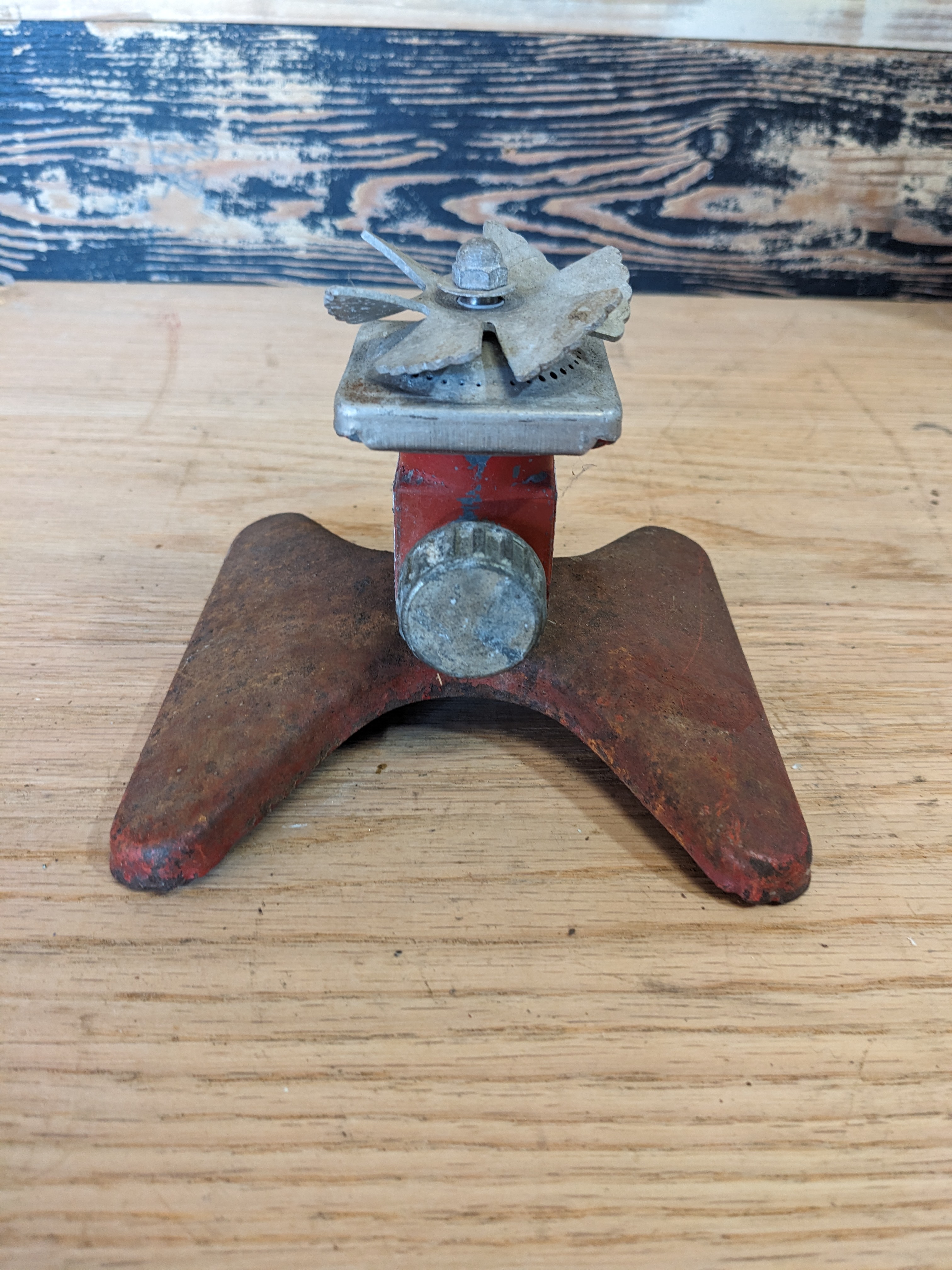 "It gets the corners". This old SquareSpray sprinkler can help any yard grow big and strong. Some surface corrosion but everything works and spins with ease.
