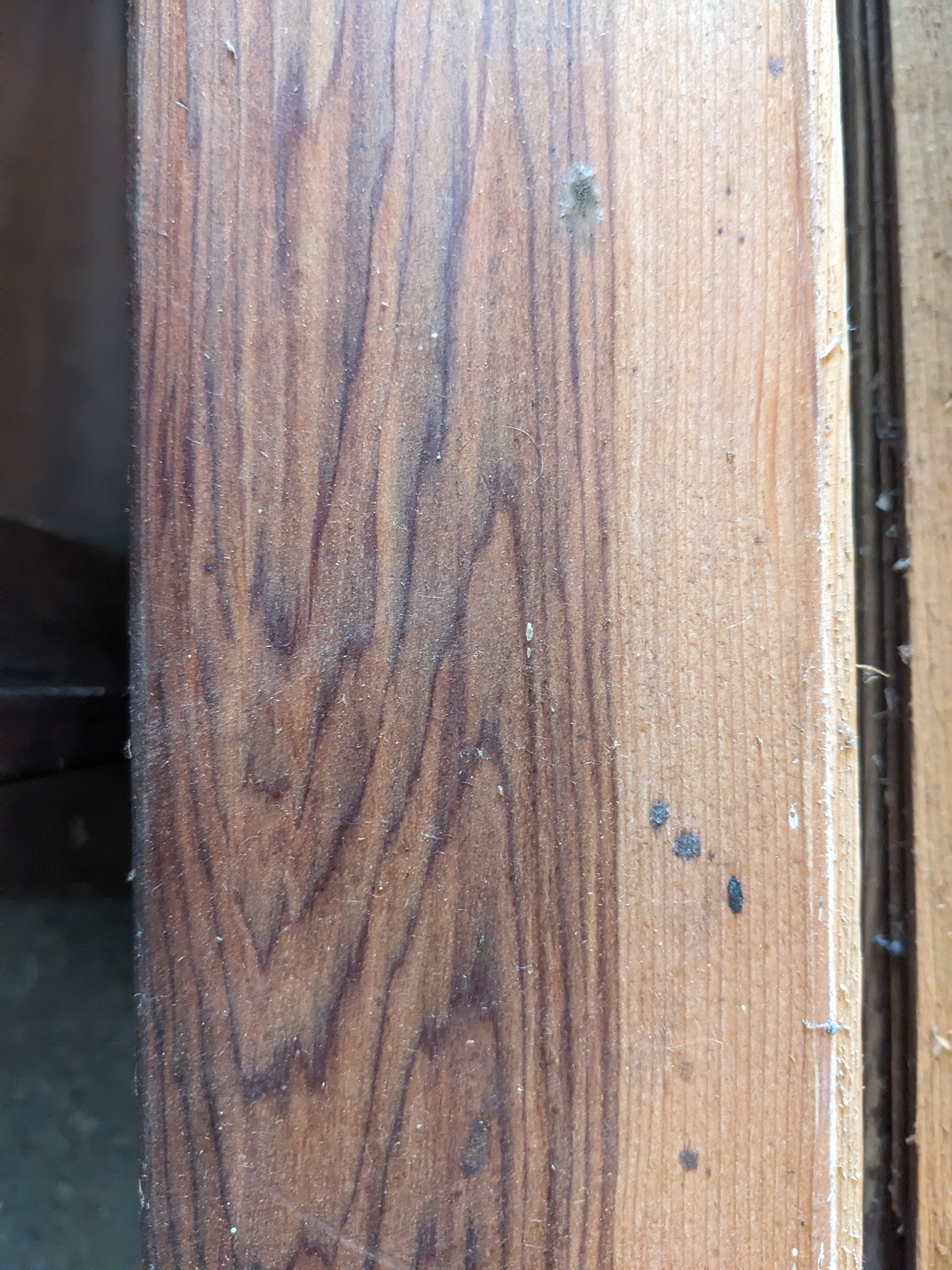 Tongue and groove boards. Beautiful cedar grain under some old dust and cobwebs. Rough saw on one side and smooth and sanded on the other.