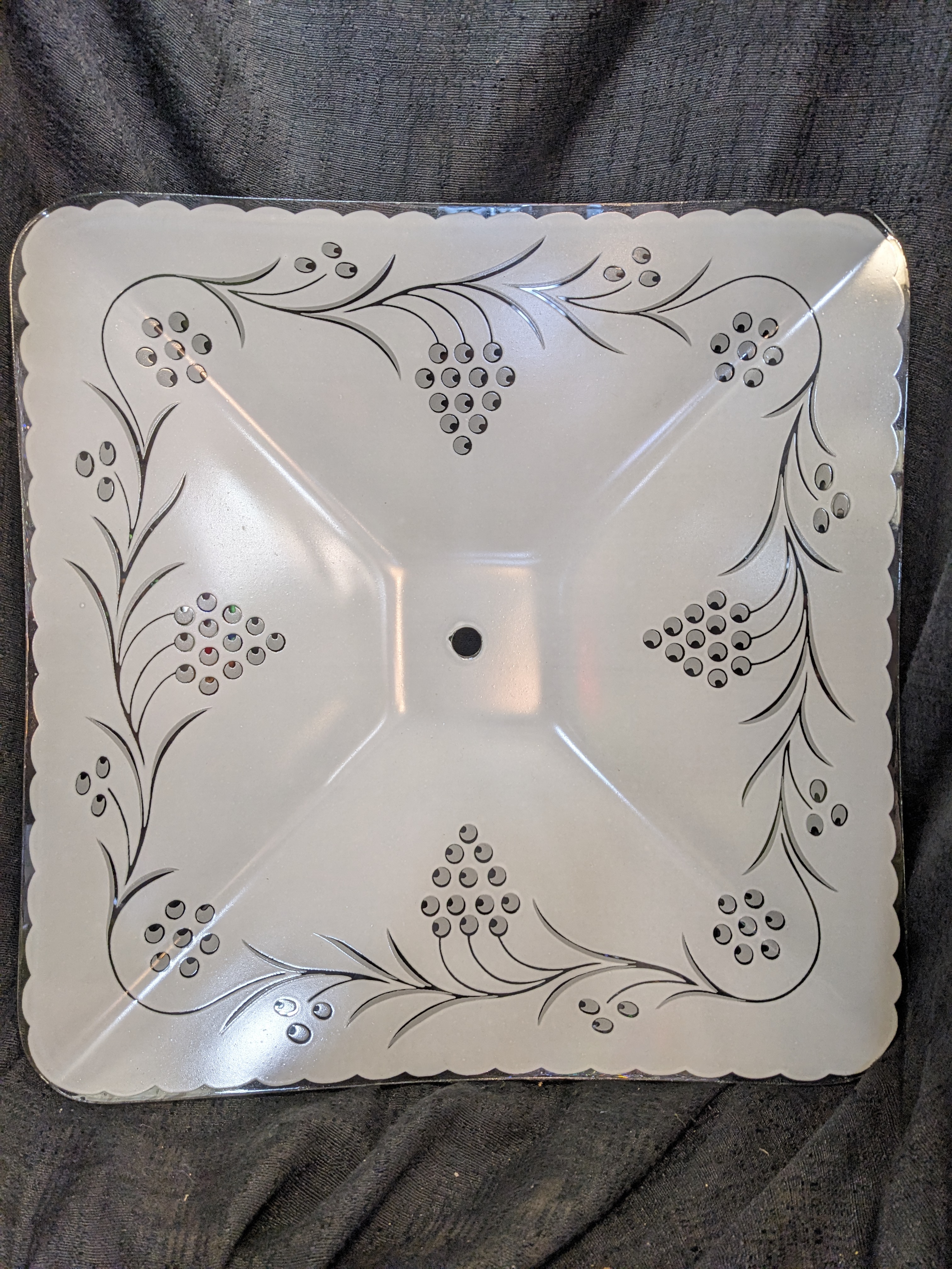 This retro glass shade features a grape motif. Measures 13.5 x 13.5