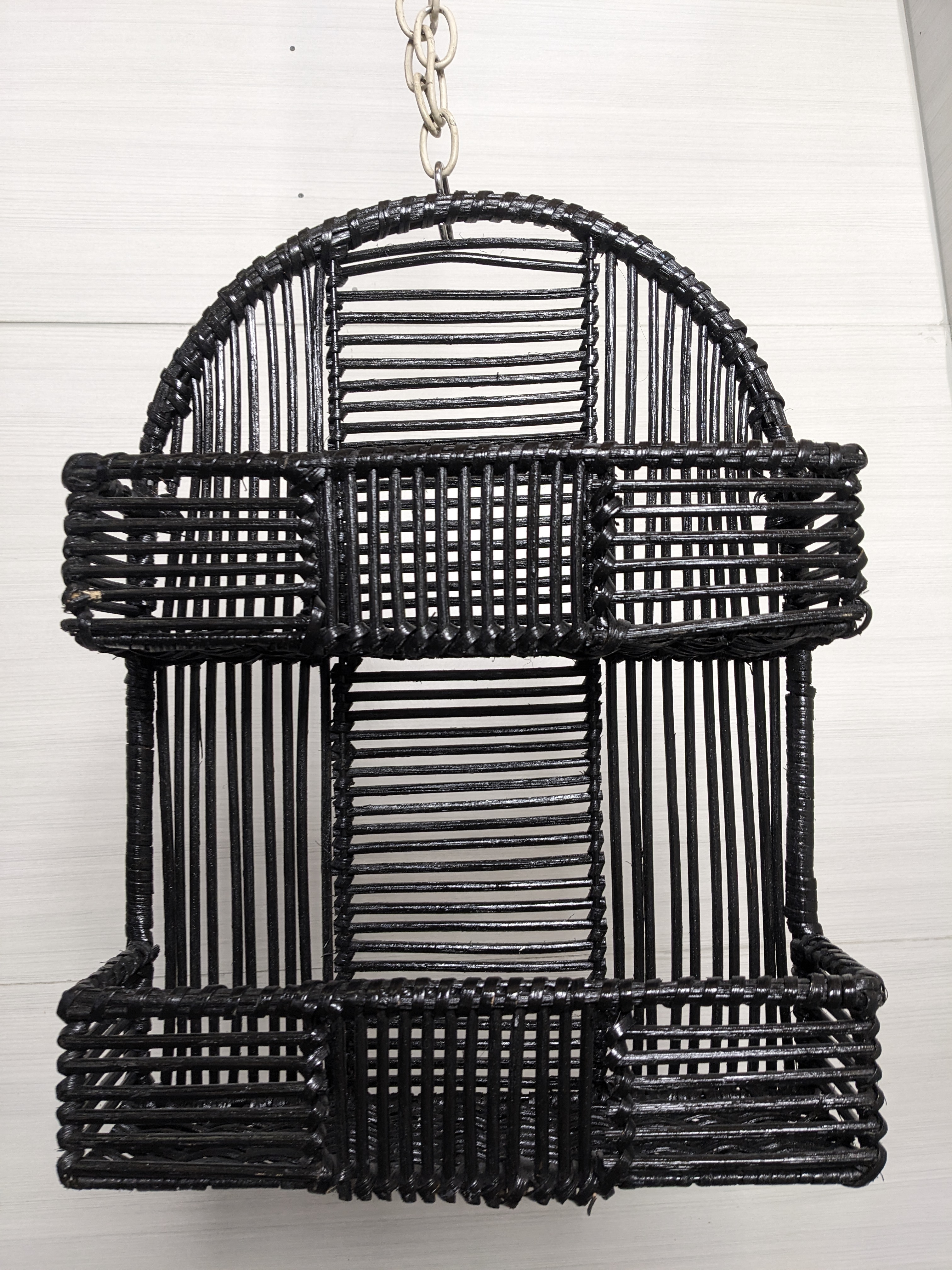 This wicker shelf is painted black and measures 13 x 19 x 5.