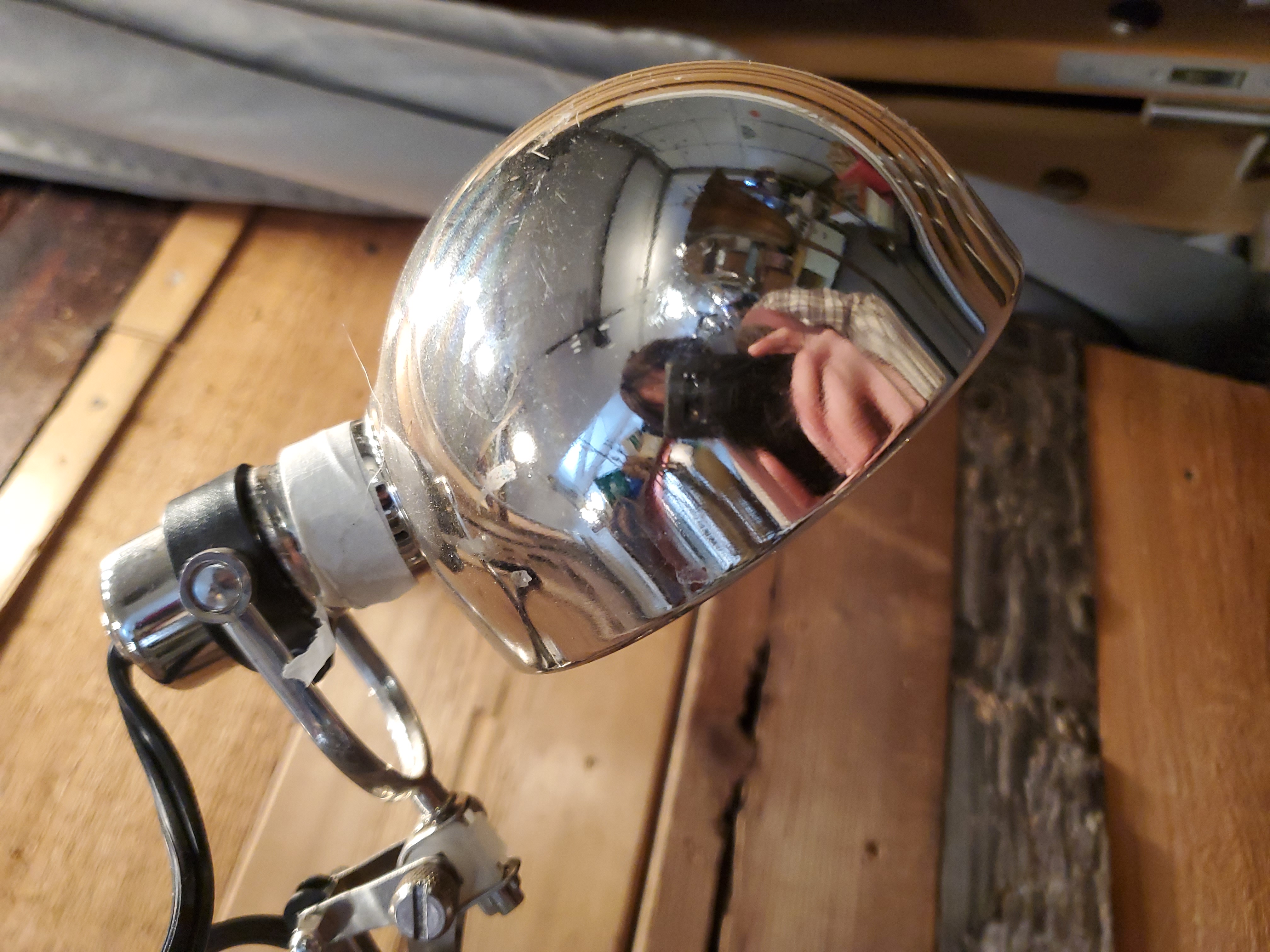 This desk lamp is in pretty good condition. The top is a little loose and may need repair but it is otherwise functioning. It is a great desk lamp for the college student in your life.