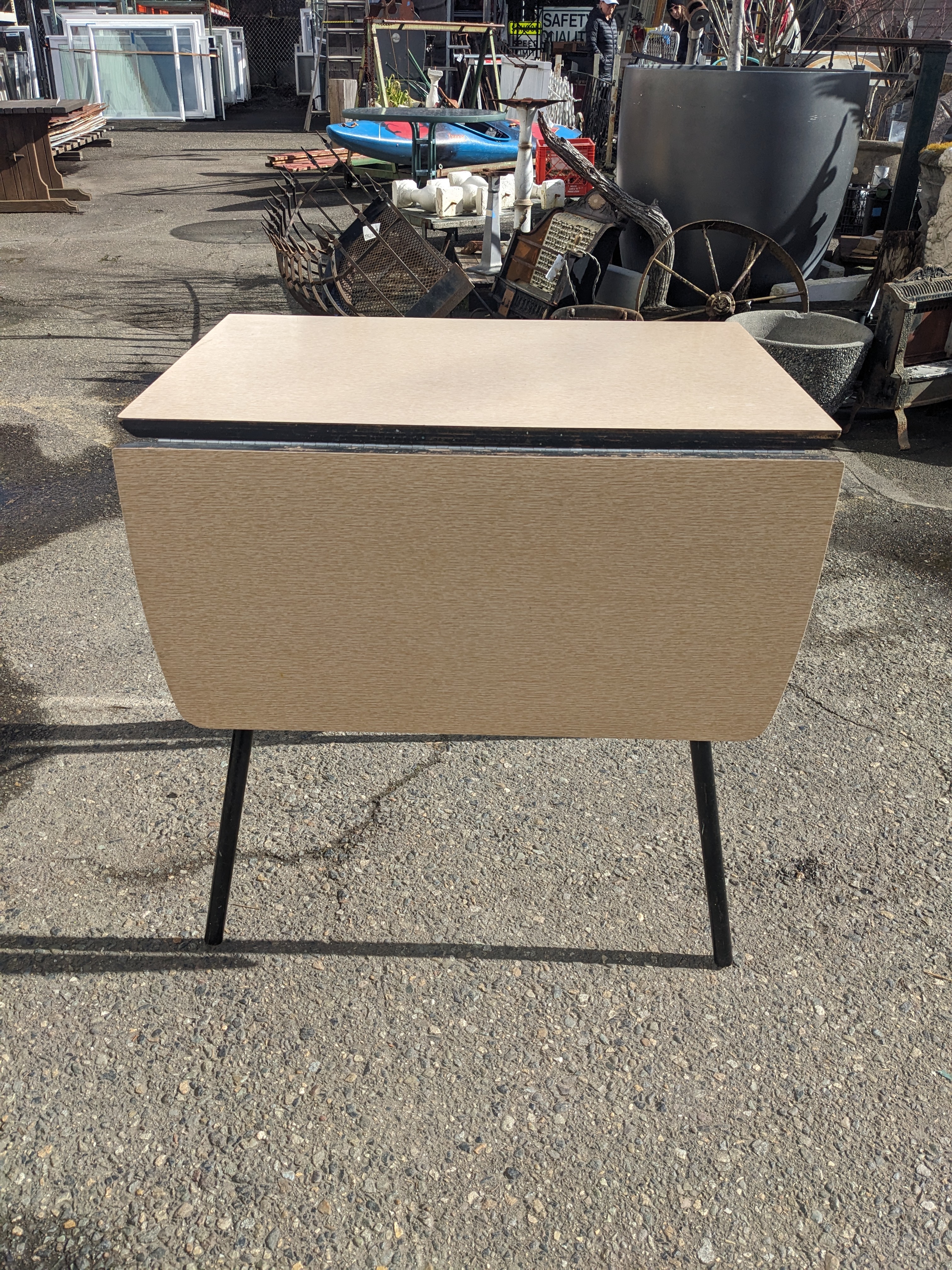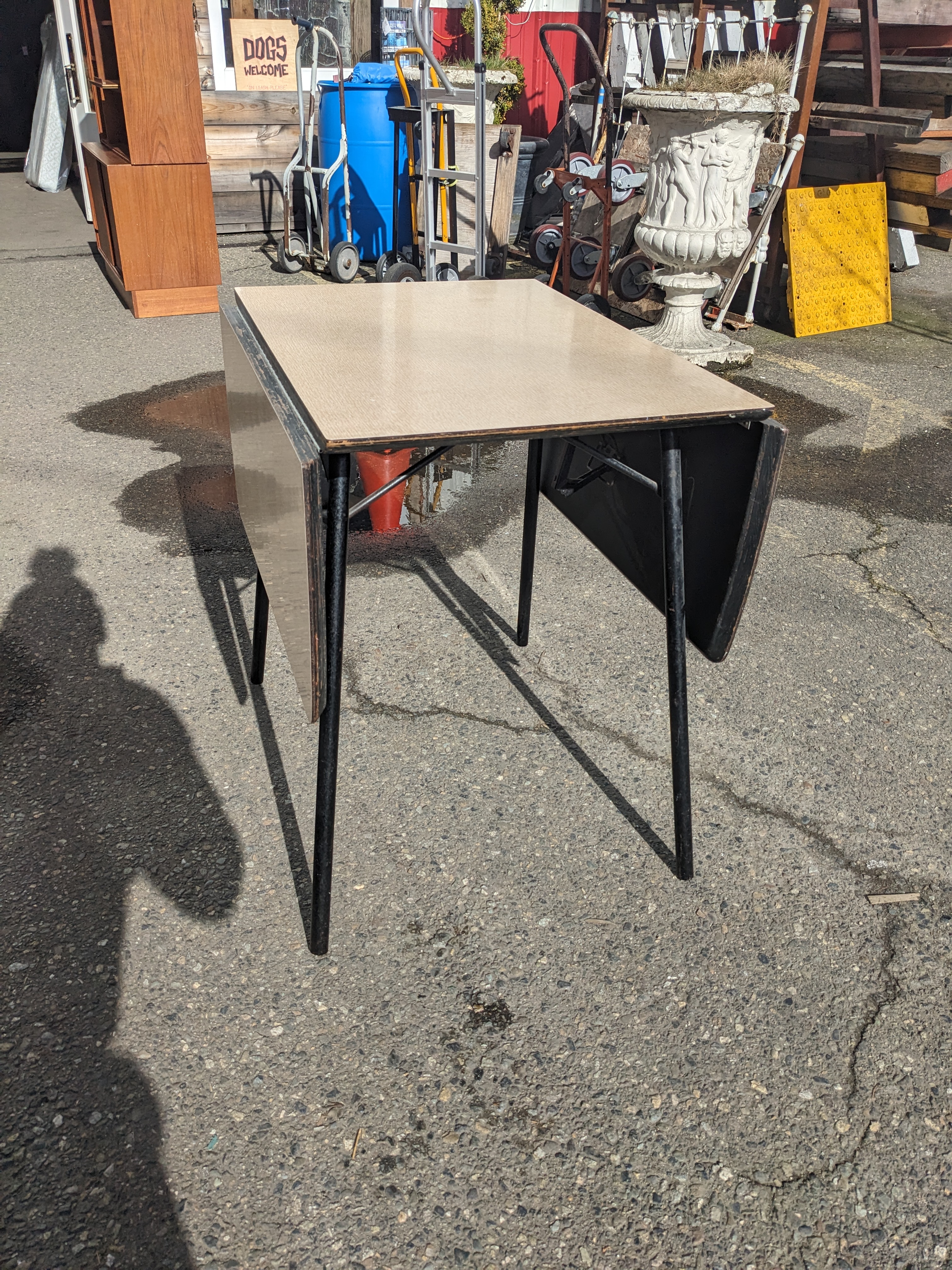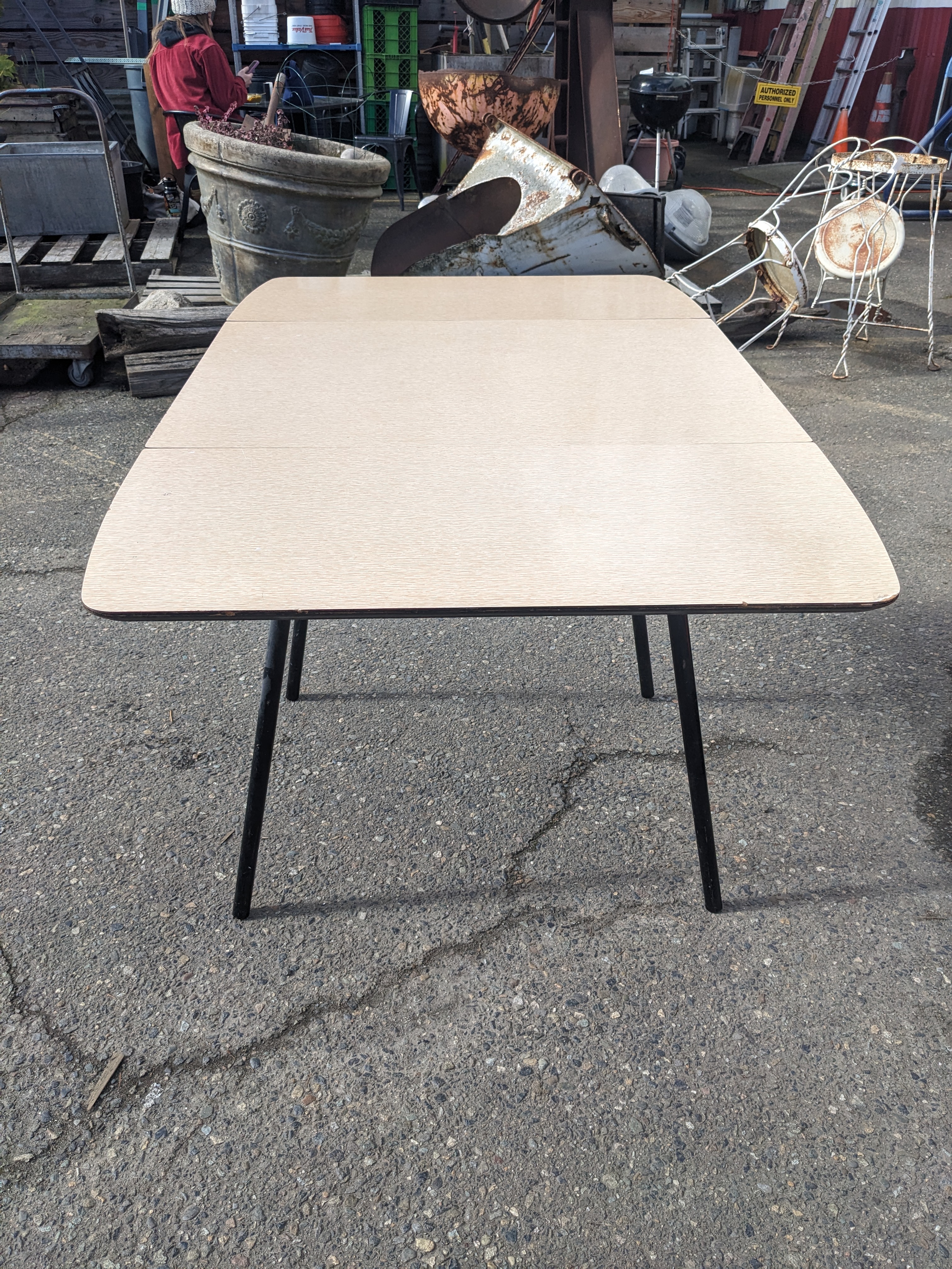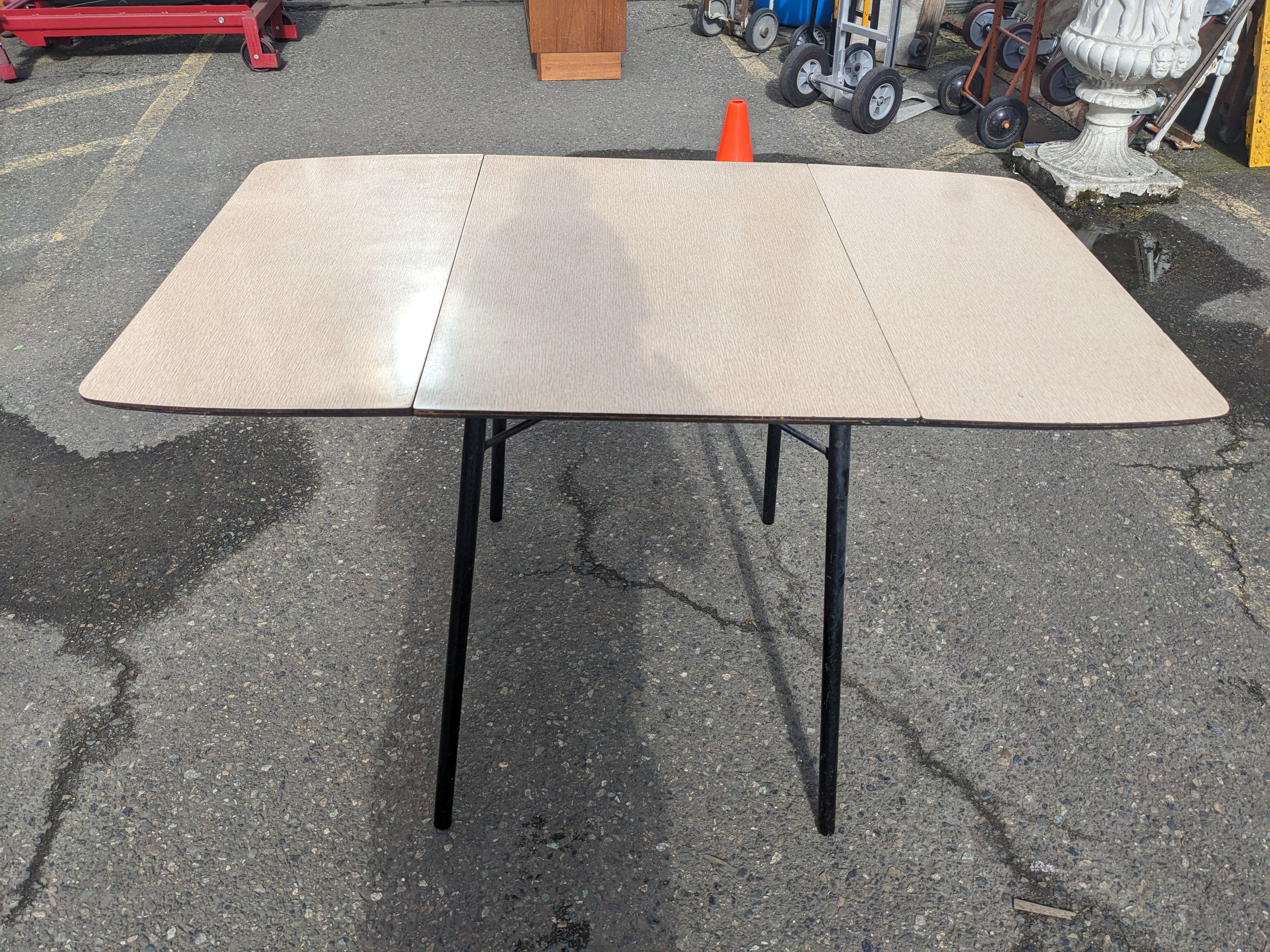 Versatile and vintage. This old folding formica table can be a great dinning table or a wonderful crafting table. The folding extensions allow for a variety of activities.