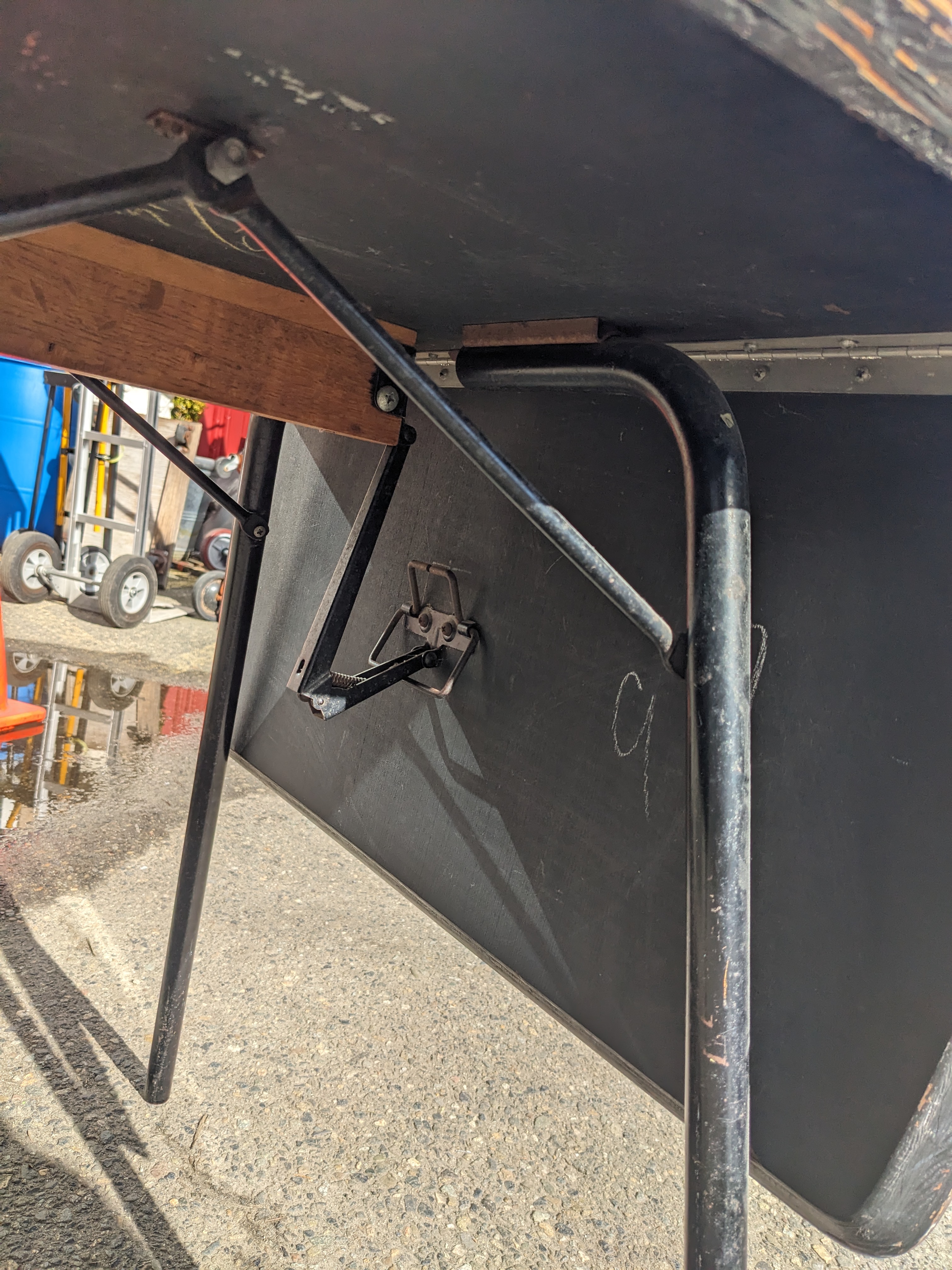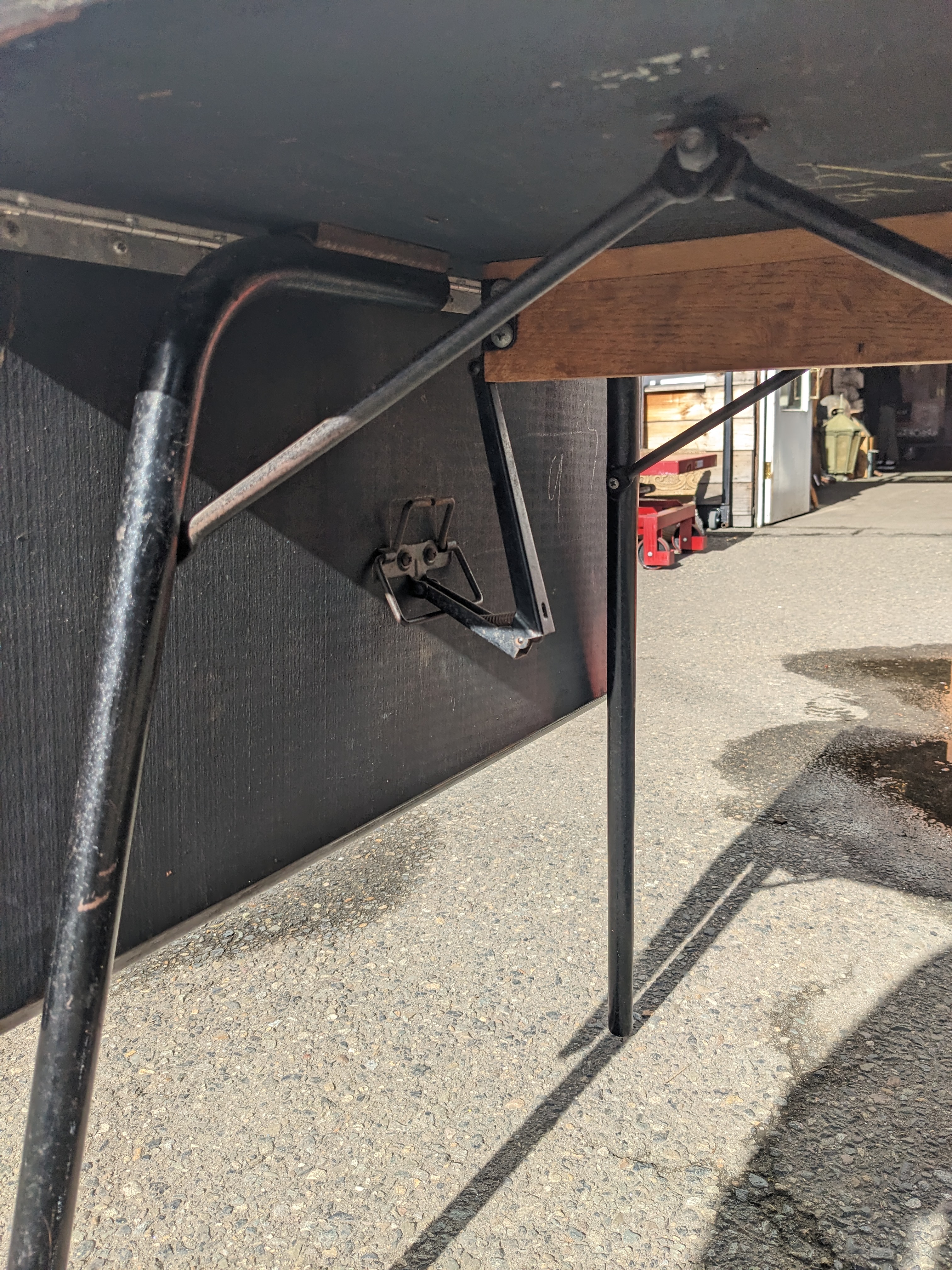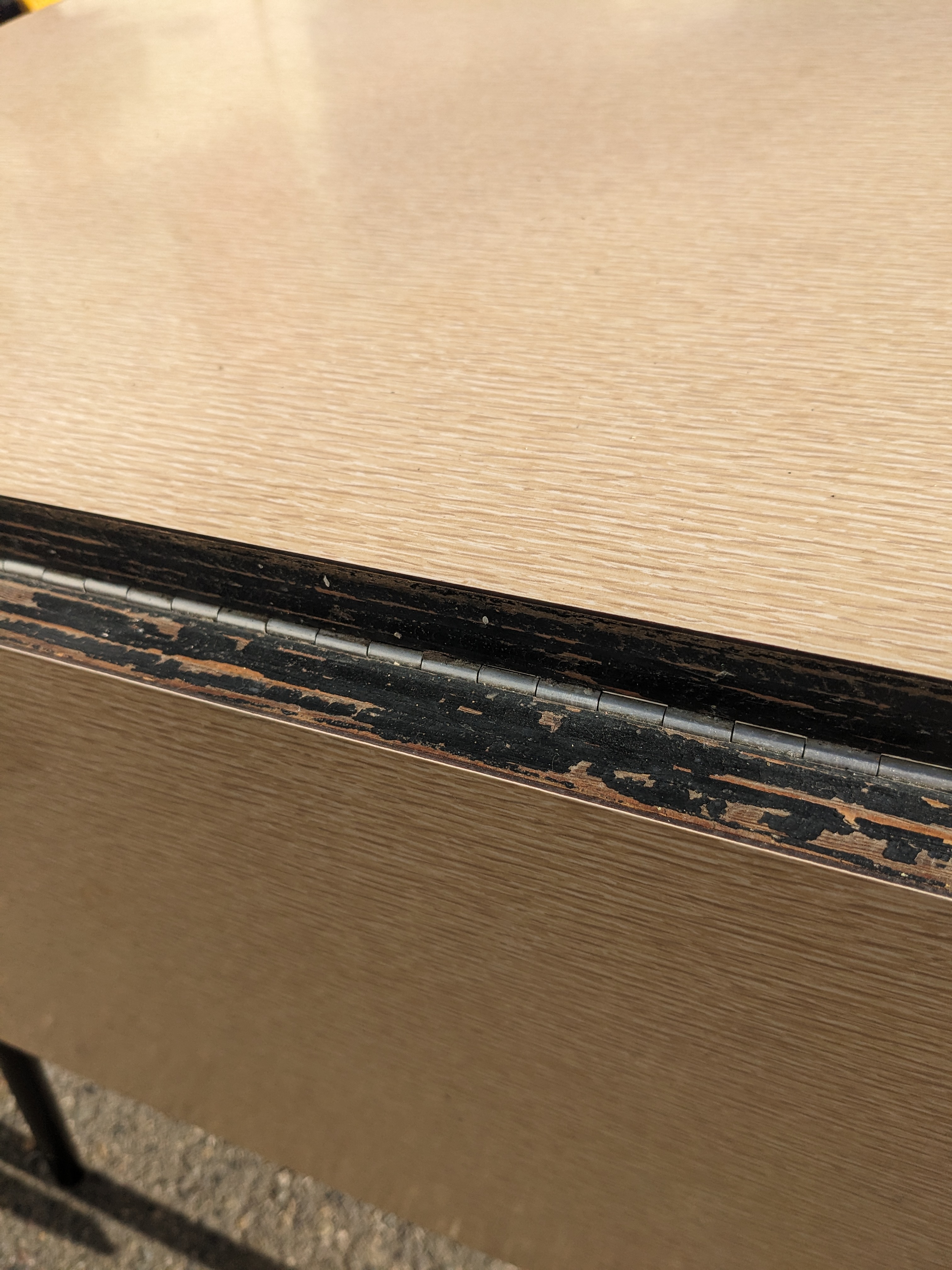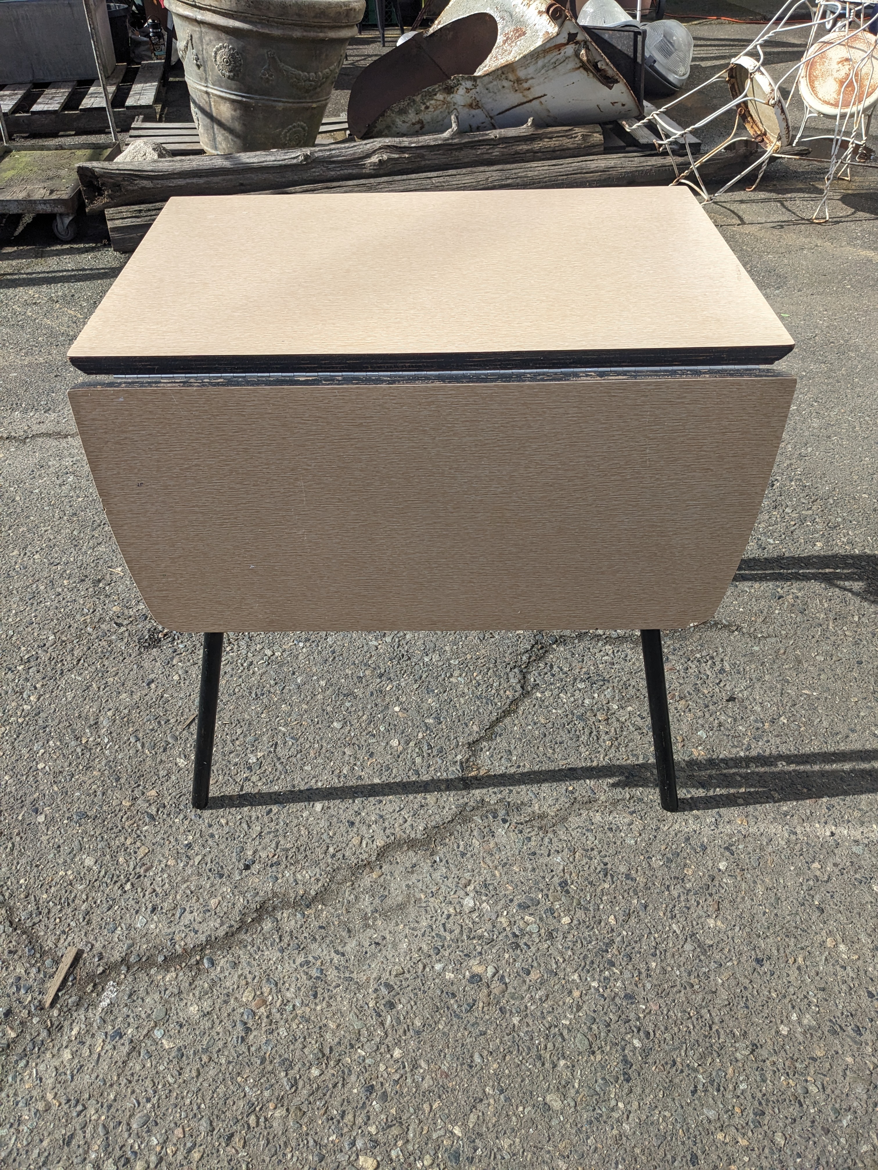 Versatile and vintage. This old folding formica table can be a great dinning table or a wonderful crafting table. The folding extensions allow for a variety of activities.
