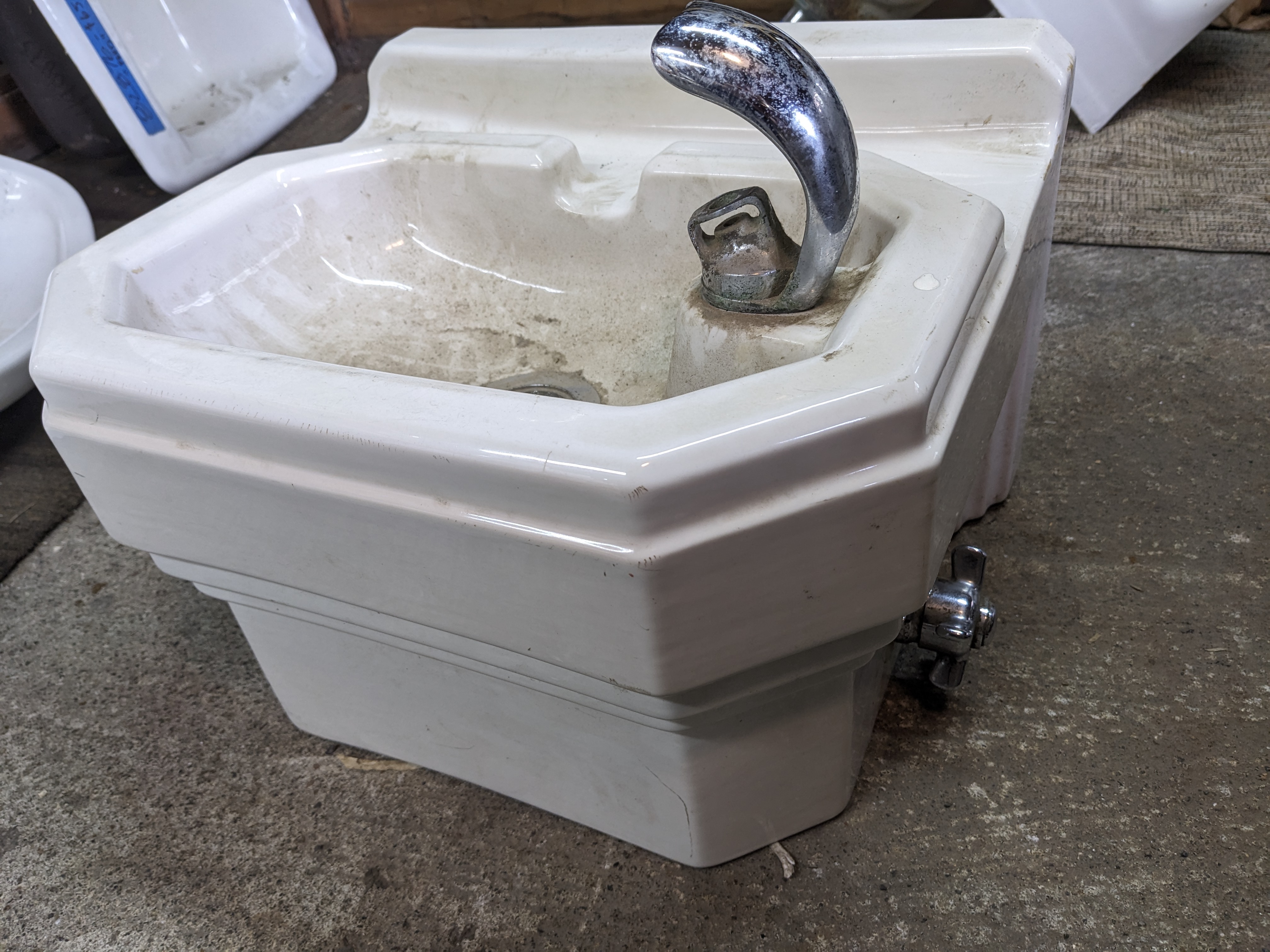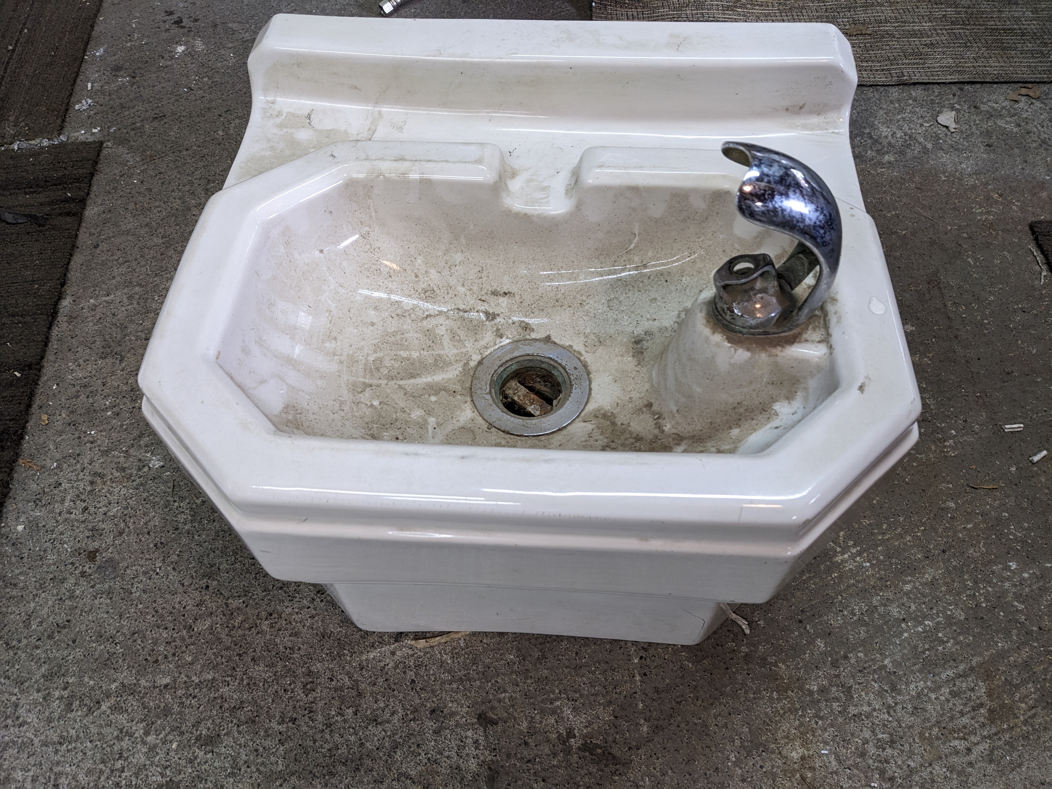This sink is very solid and doesn't have any major scrapes or chips . This item does need a deep cleaning