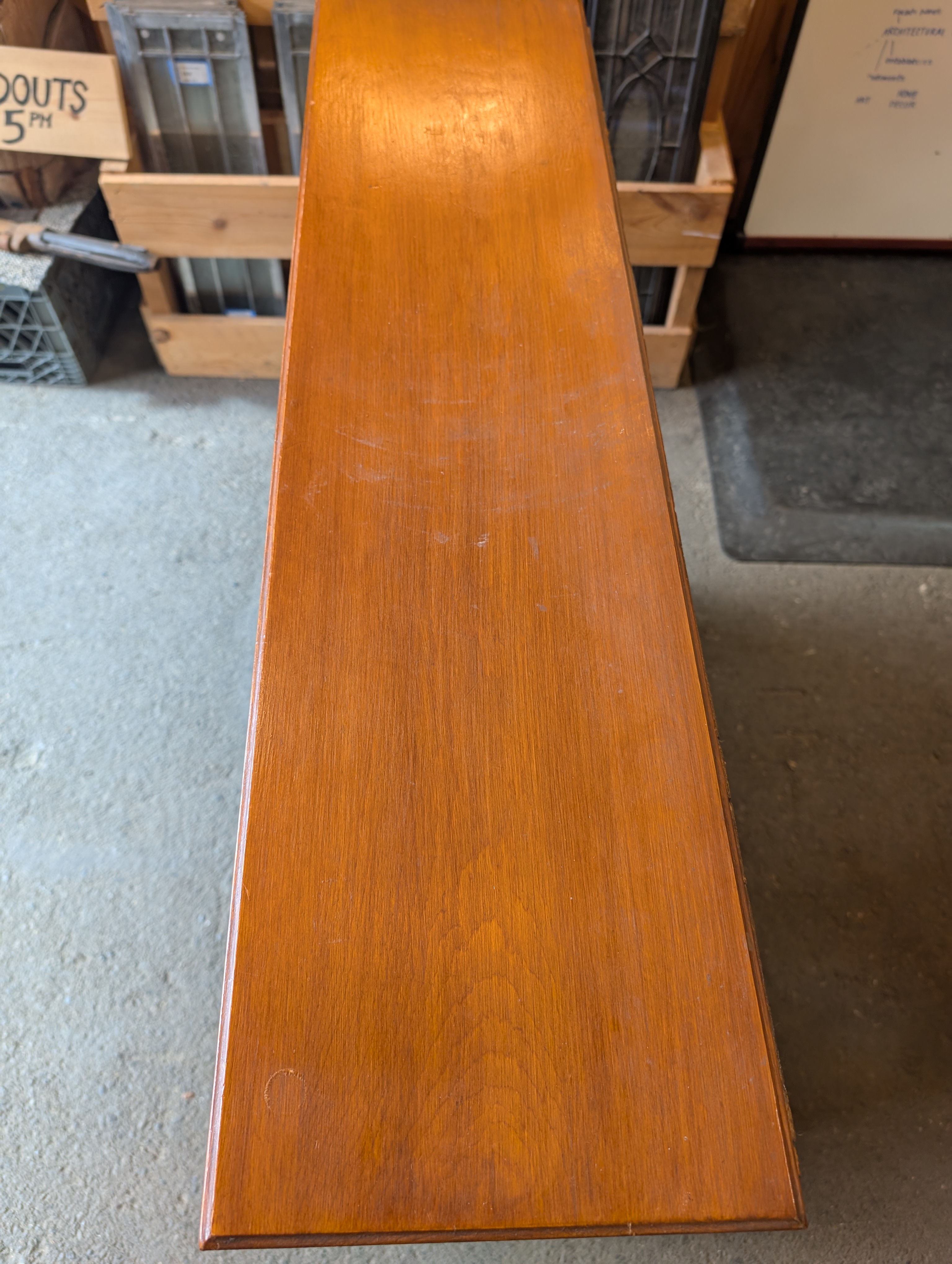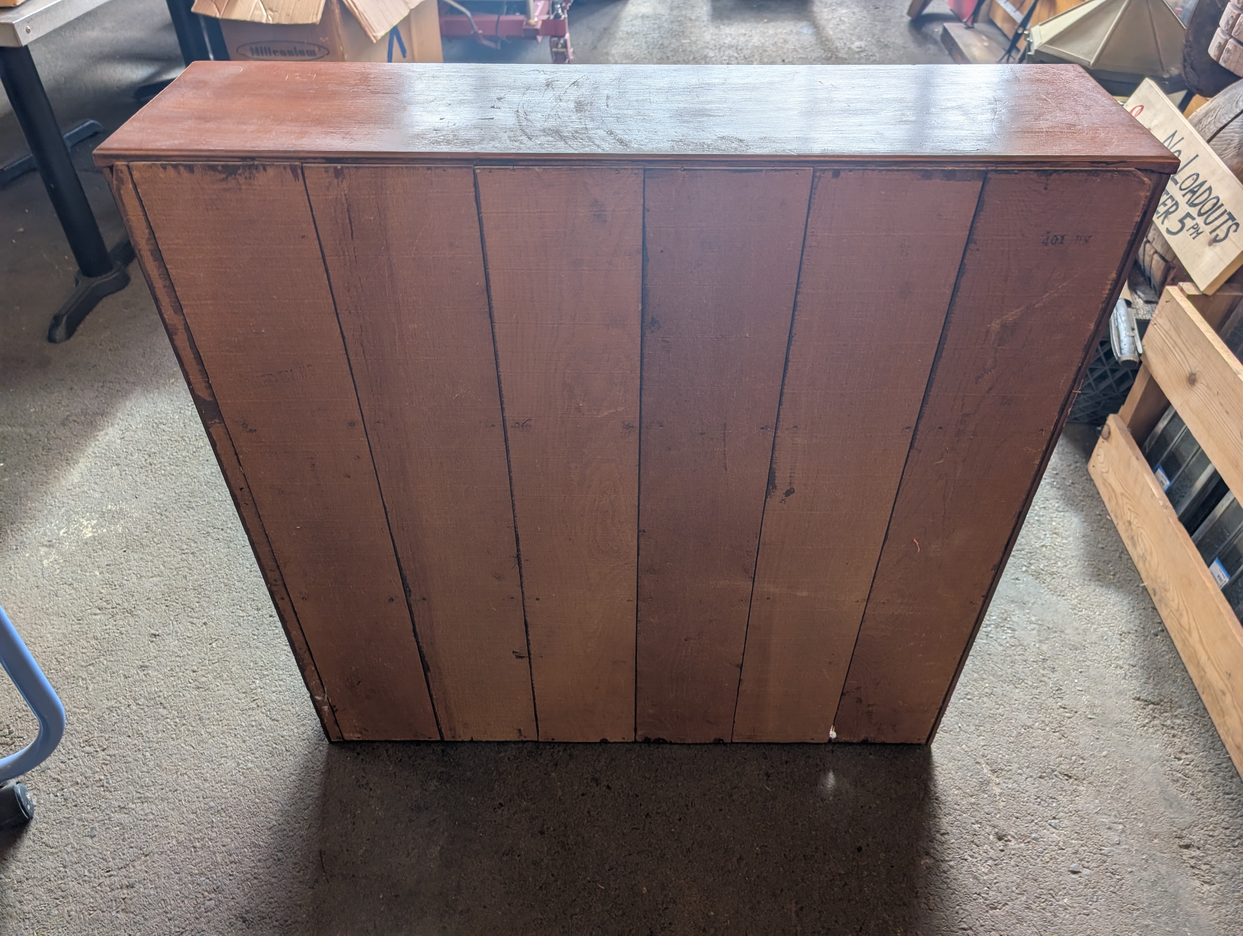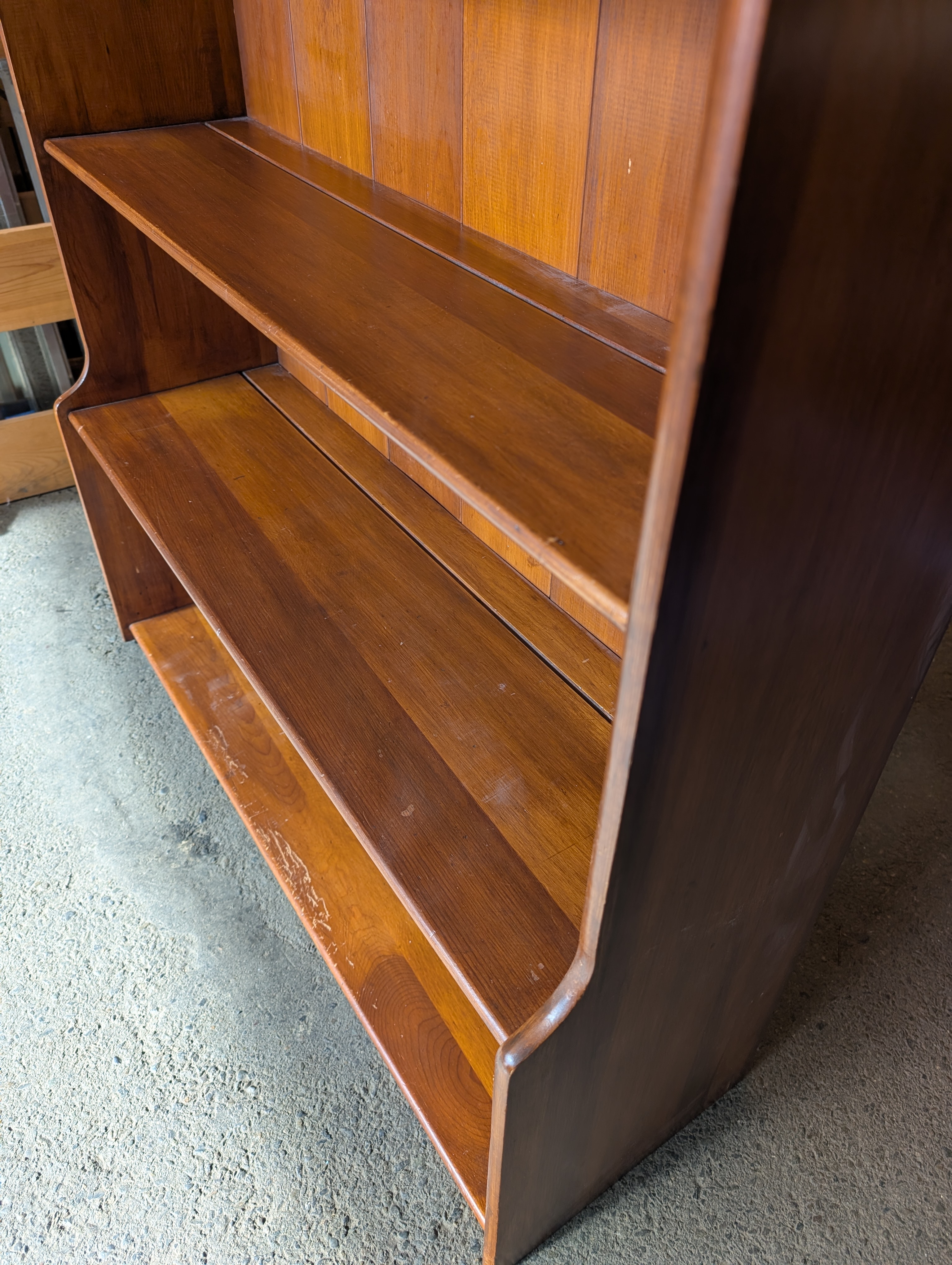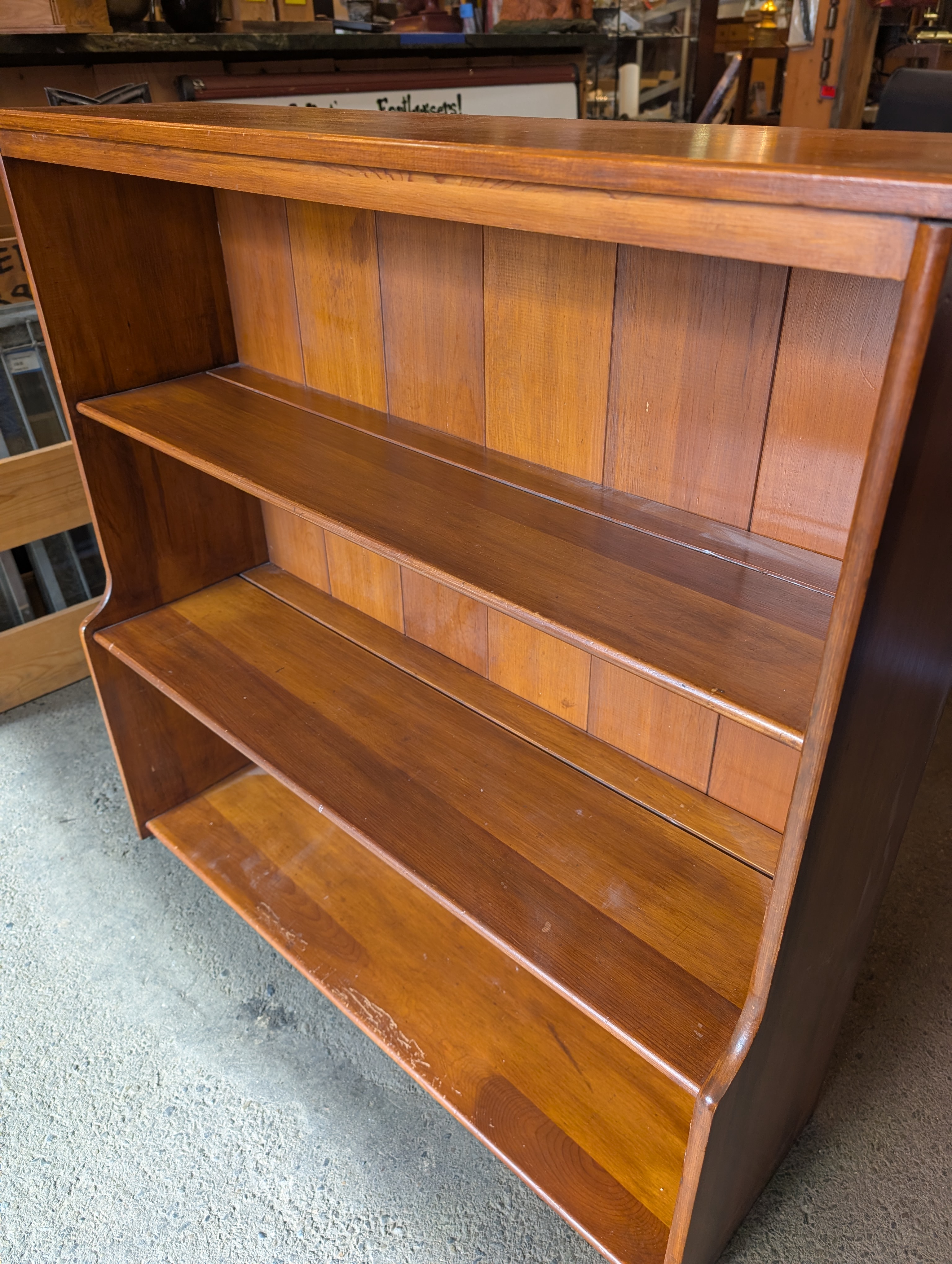 Nice sturdy wood bookshelf. Has some nicks and scratches throughout but it's a great utilitarian bookshelf!