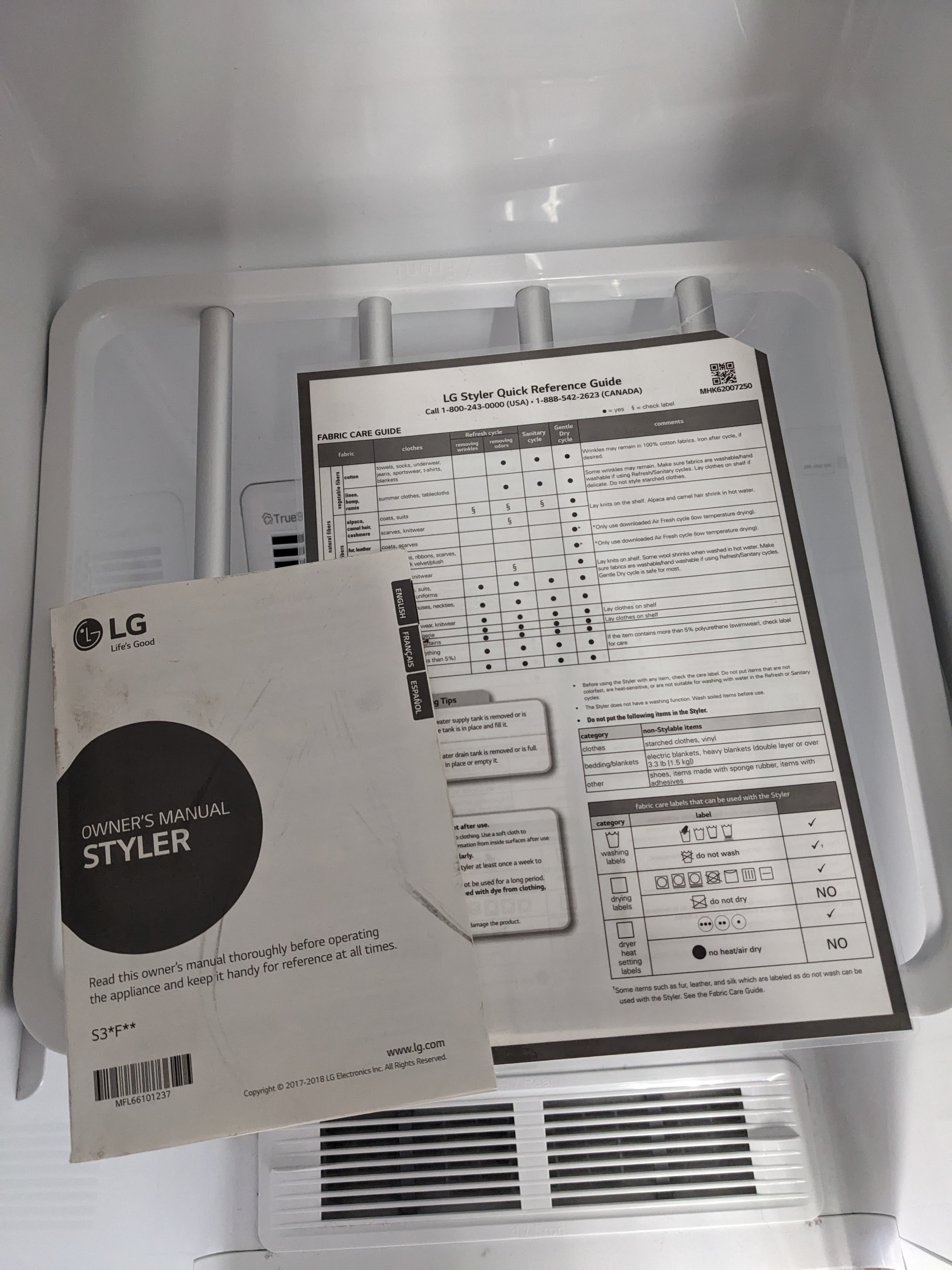 Find more information on functionality of this piece here: https://www.homedepot.com/p/LG-Styler-SMART-Steam-Closet-in-White-with-TrueSteam-Technology-and-Moving-Hangers-S3WFBN/307473339?g_store=&source=shoppingads&locale=en-US&fp=ggl&pla&utm_source=google&utm_medium=vantage&utm_campaign=120807&utm_content=123762&mtc=SHOPPING-RM-RMP-GGL-D29A-029_008_LAUNDRY-NA-LG-NA-PMAX-NA-NA-FR26A222C667-120807-NBR-6785-NA-VNT-FY26_LG_D29A_OAM_AON_SEM_BAU_Opportunity_LDY&cm_mmc=SHOPPING-RM-RMP-GGL-D29A-029_008_LAUNDRY-NA-LG-NA-PMAX-NA-NA-FR26A222C667-120807-NBR-6785-NA-VNT-FY26_LG_D29A_OAM_AON_SEM_BAU_Opportunity_LDY-23528755114--&gclsrc=aw.ds&gad_source=1&gad_campaignid=23524095098&gbraid=0AAAAAolLu99_cwR_CjD0Kr35yR_KG-iVs&gclid=CjwKCAiA2PrMBhA4EiwAwpHyC9zhJvS34Dn87szXCcIlbJVwQiVdEPtTTzt3_4PxnSbEi1NwZqSm8BoCZTsQAvD_BwE#see-more-details