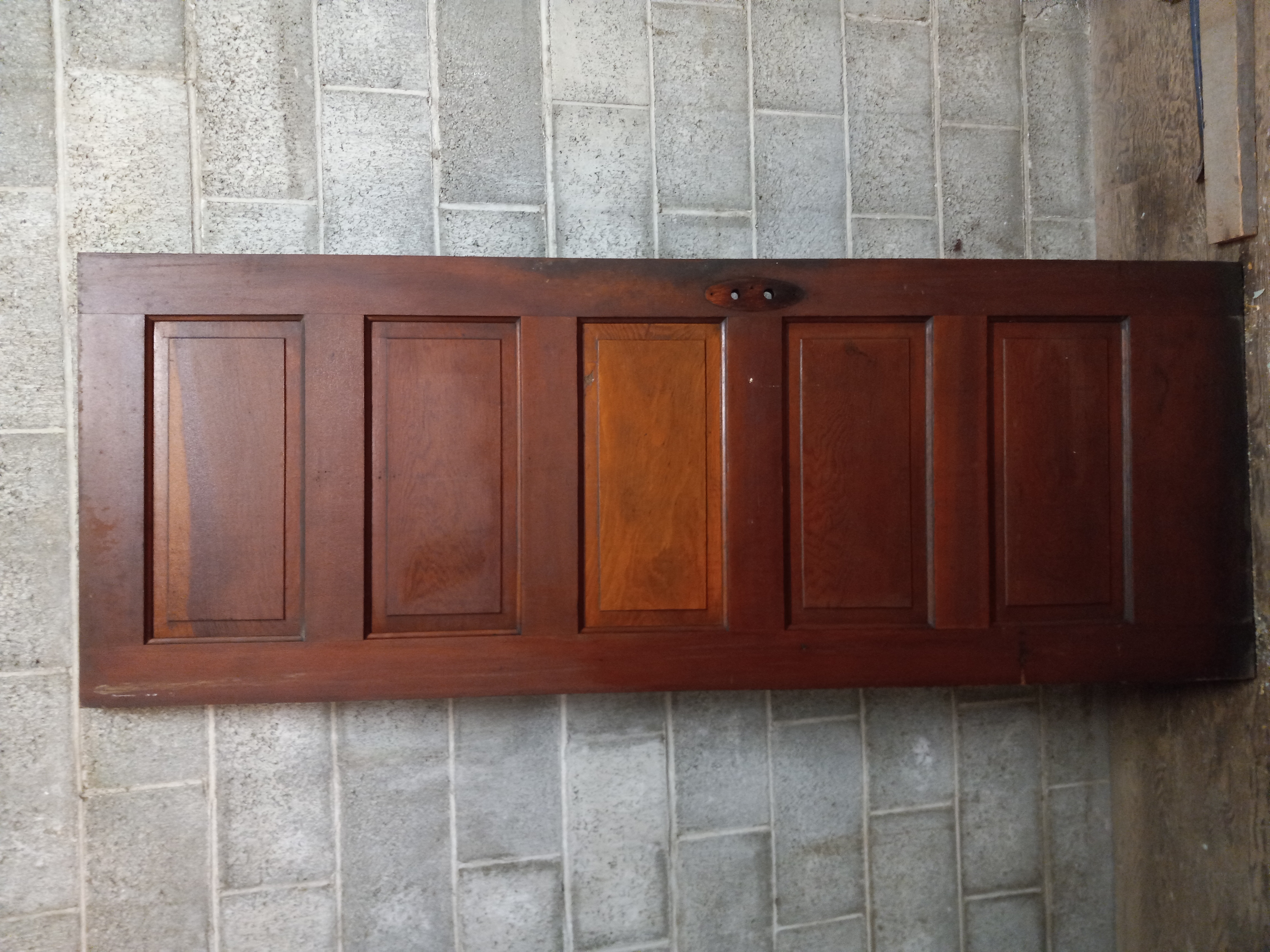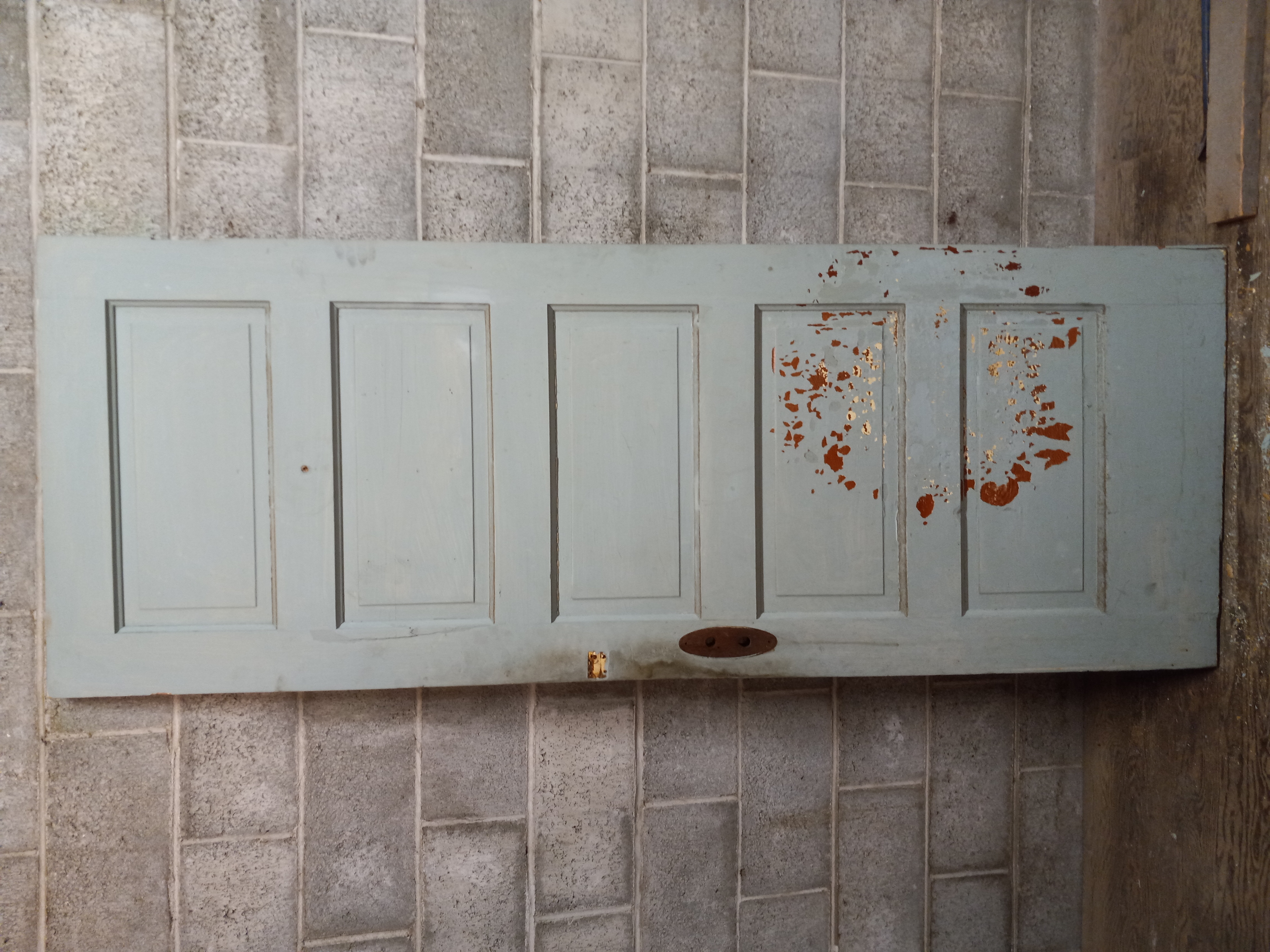 Antique 5 panel half painted door. Paint chipping, could use a scrubbing.