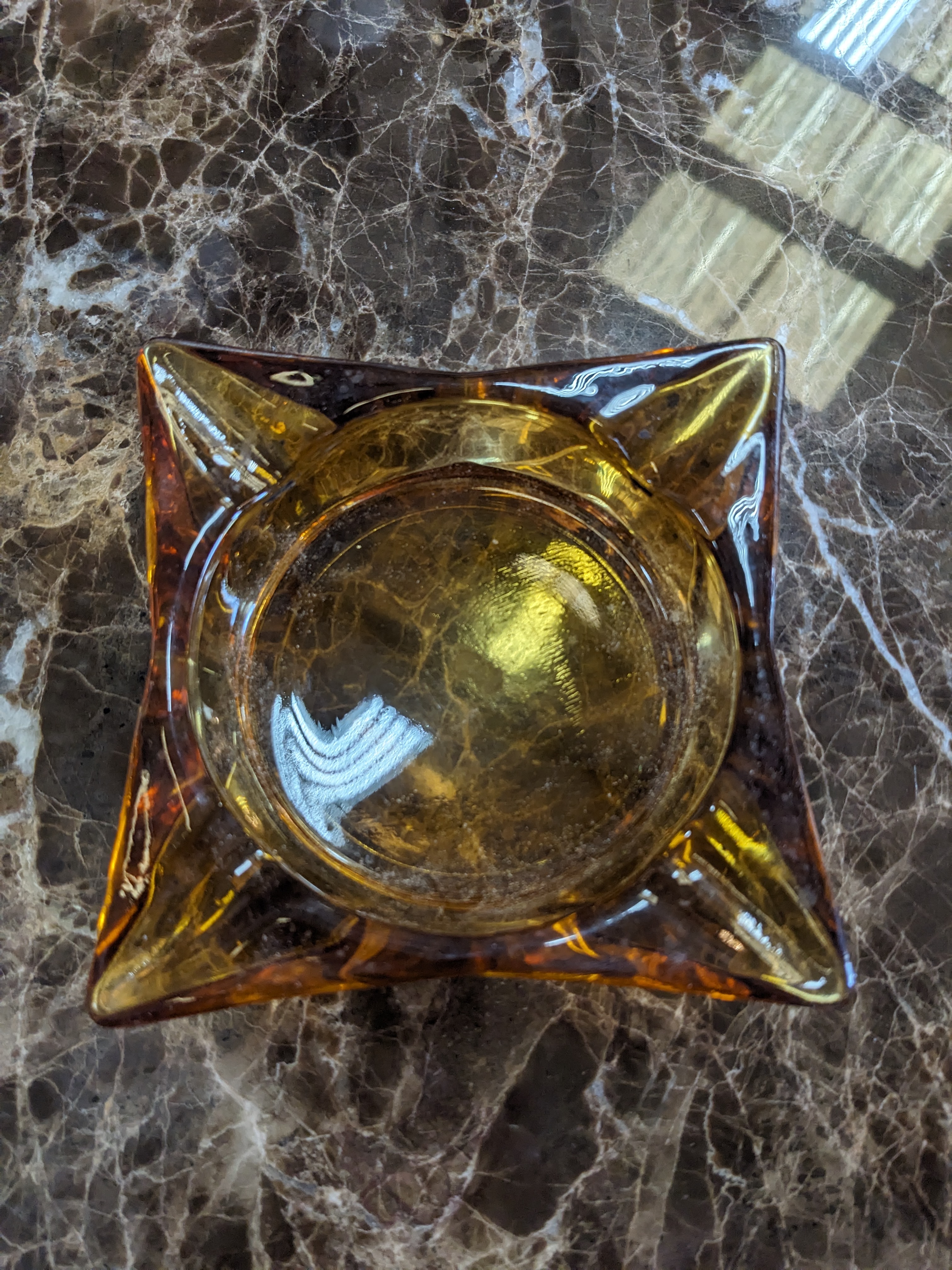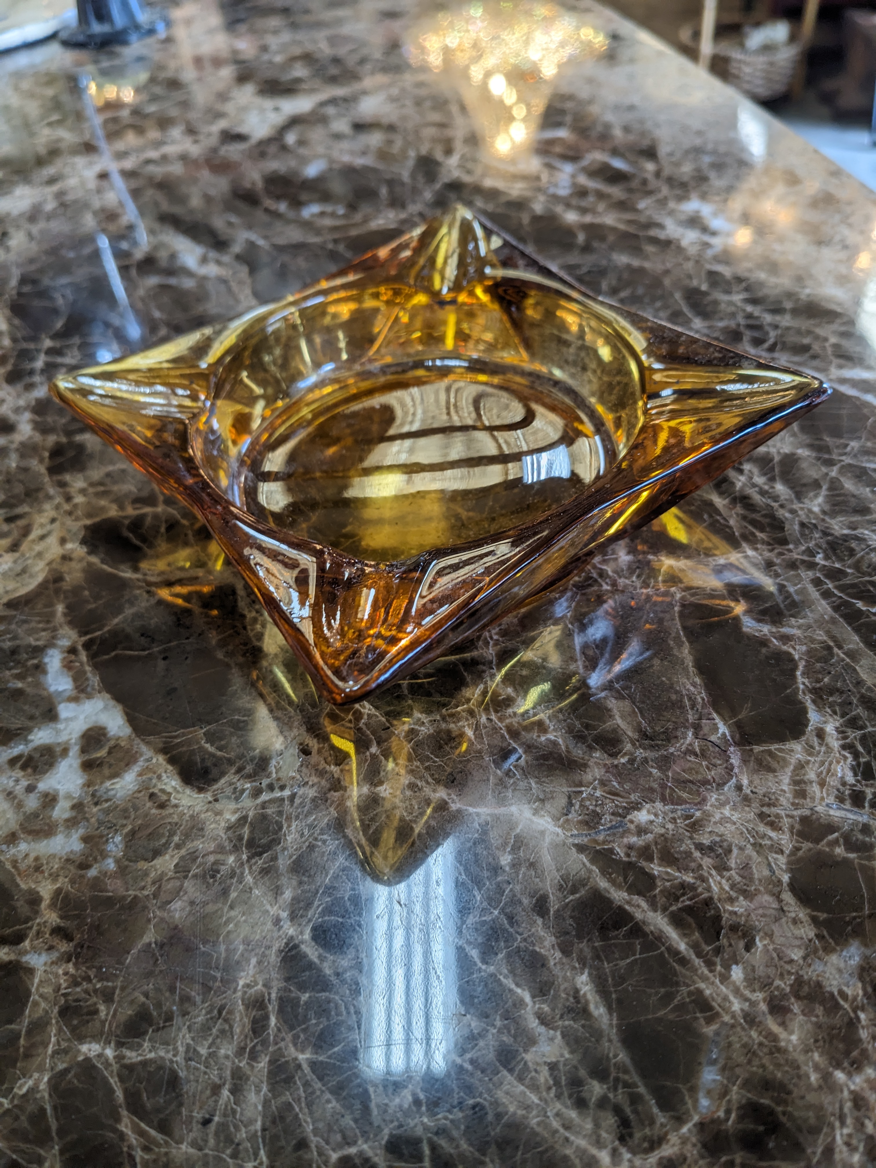 A cute and classy ashtray, with a lovely amber color it is sure to bring some style to your space. In good condition, no chips or breaking.
