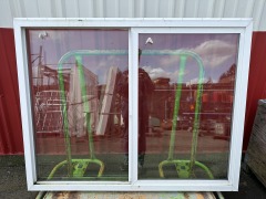 Operable sliding window with screen. Please note that the screen is slightly warped on one side