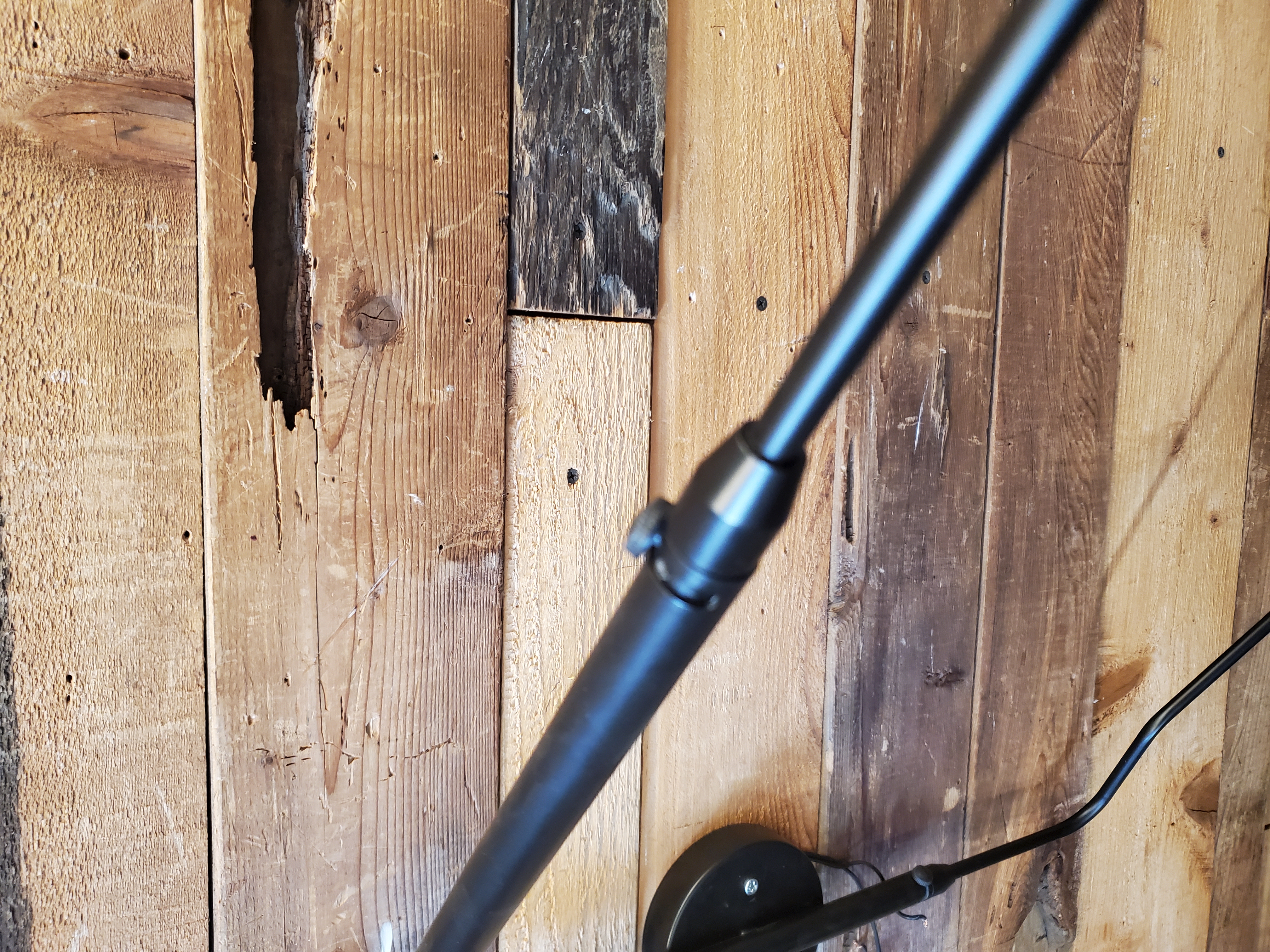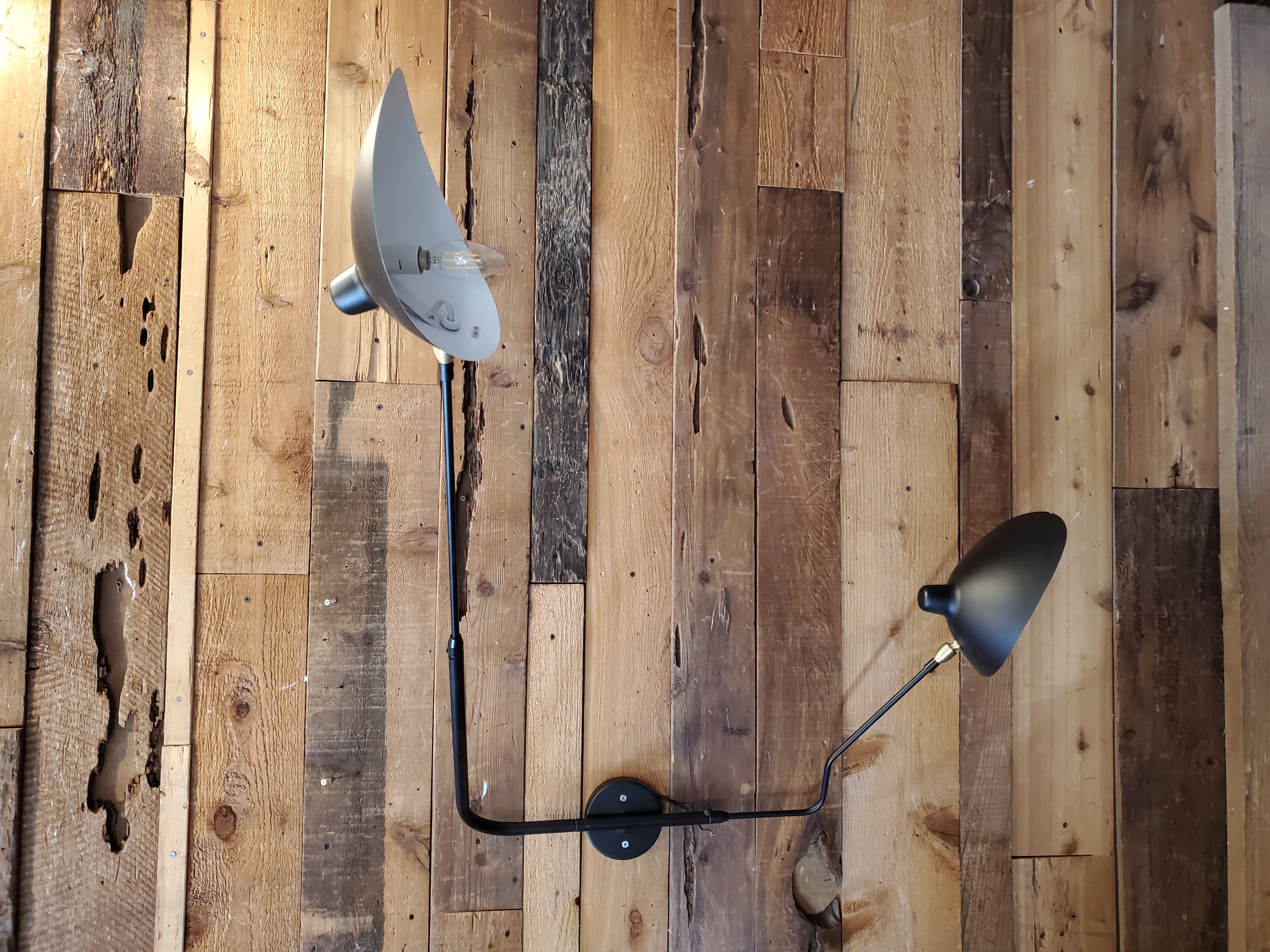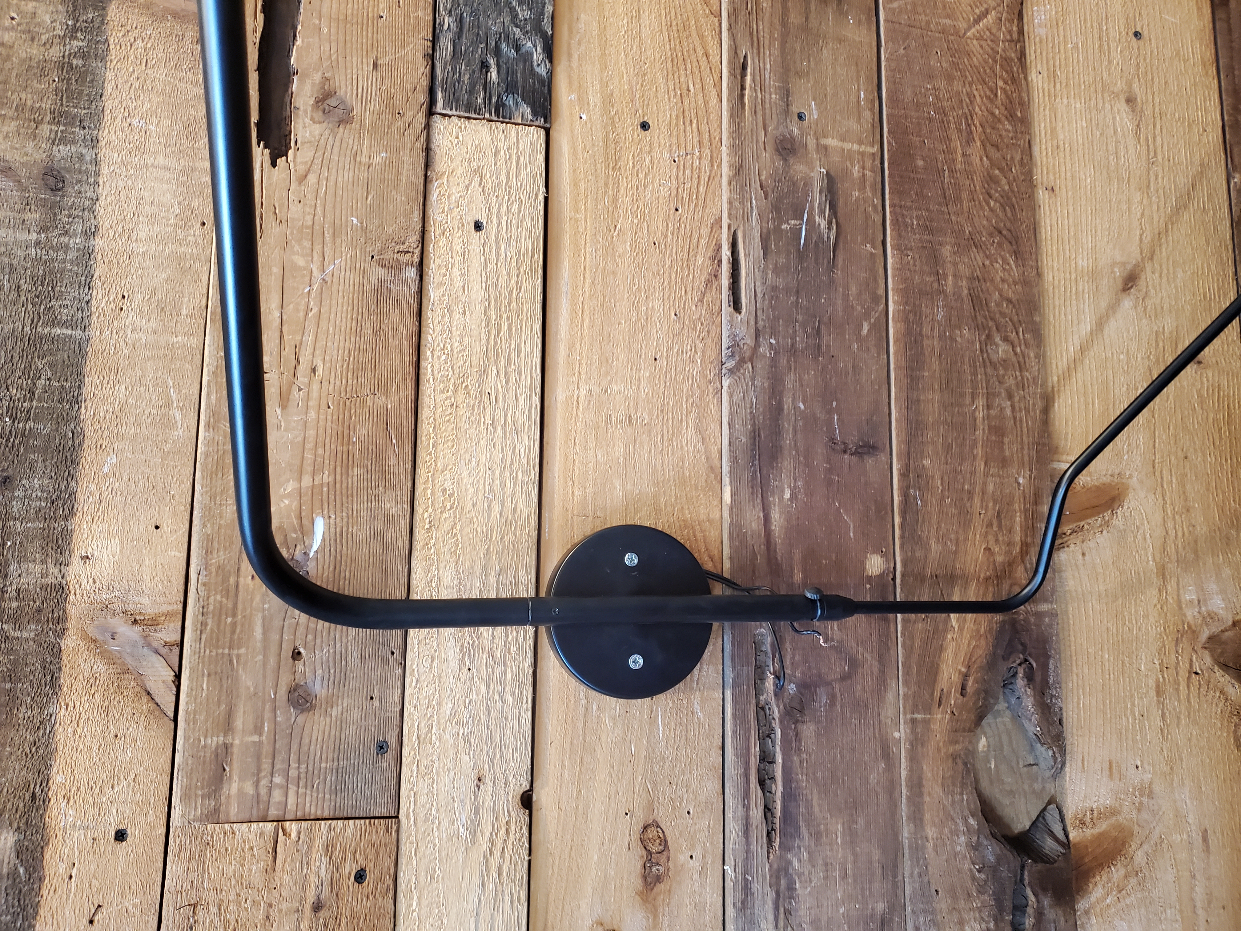 Super cool fixture with candelabra sockets on funky spotlight shades that can point in many different directions.