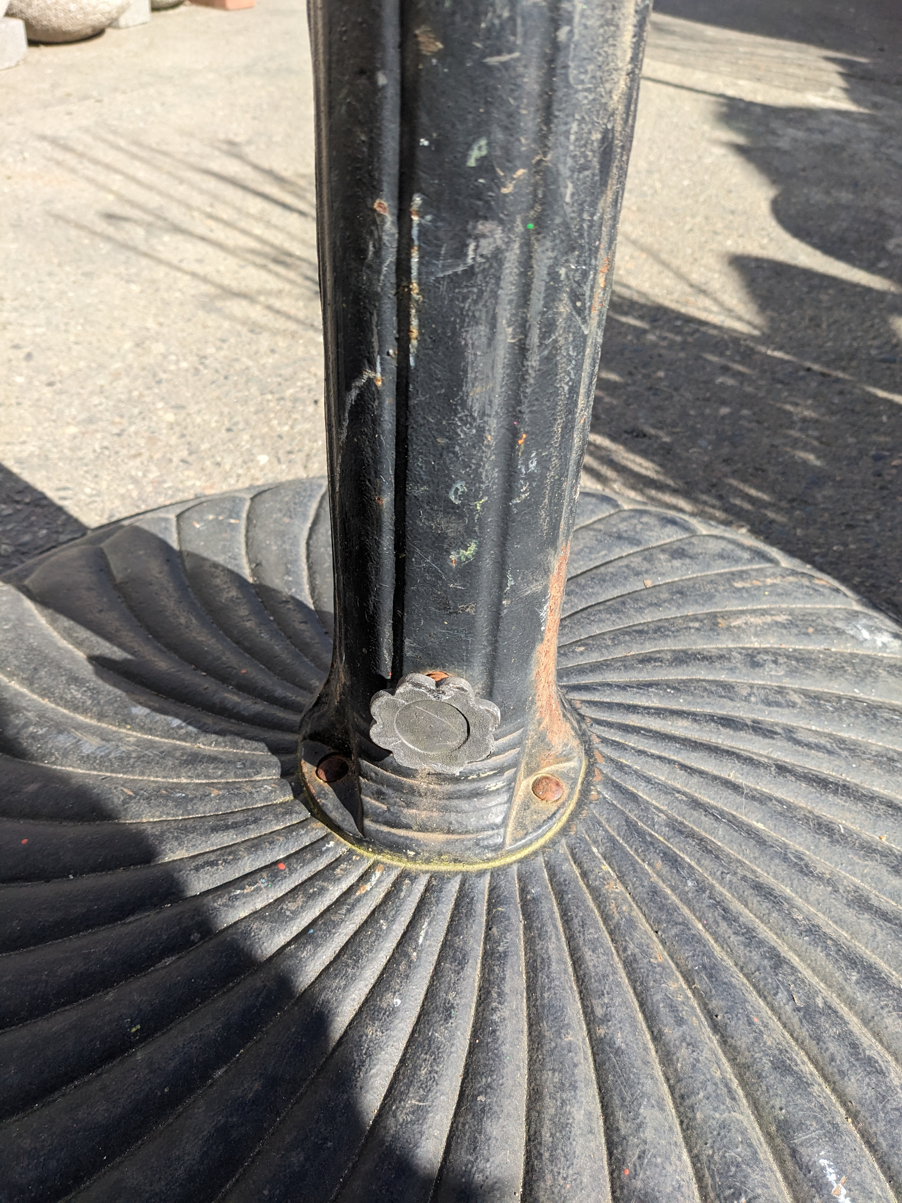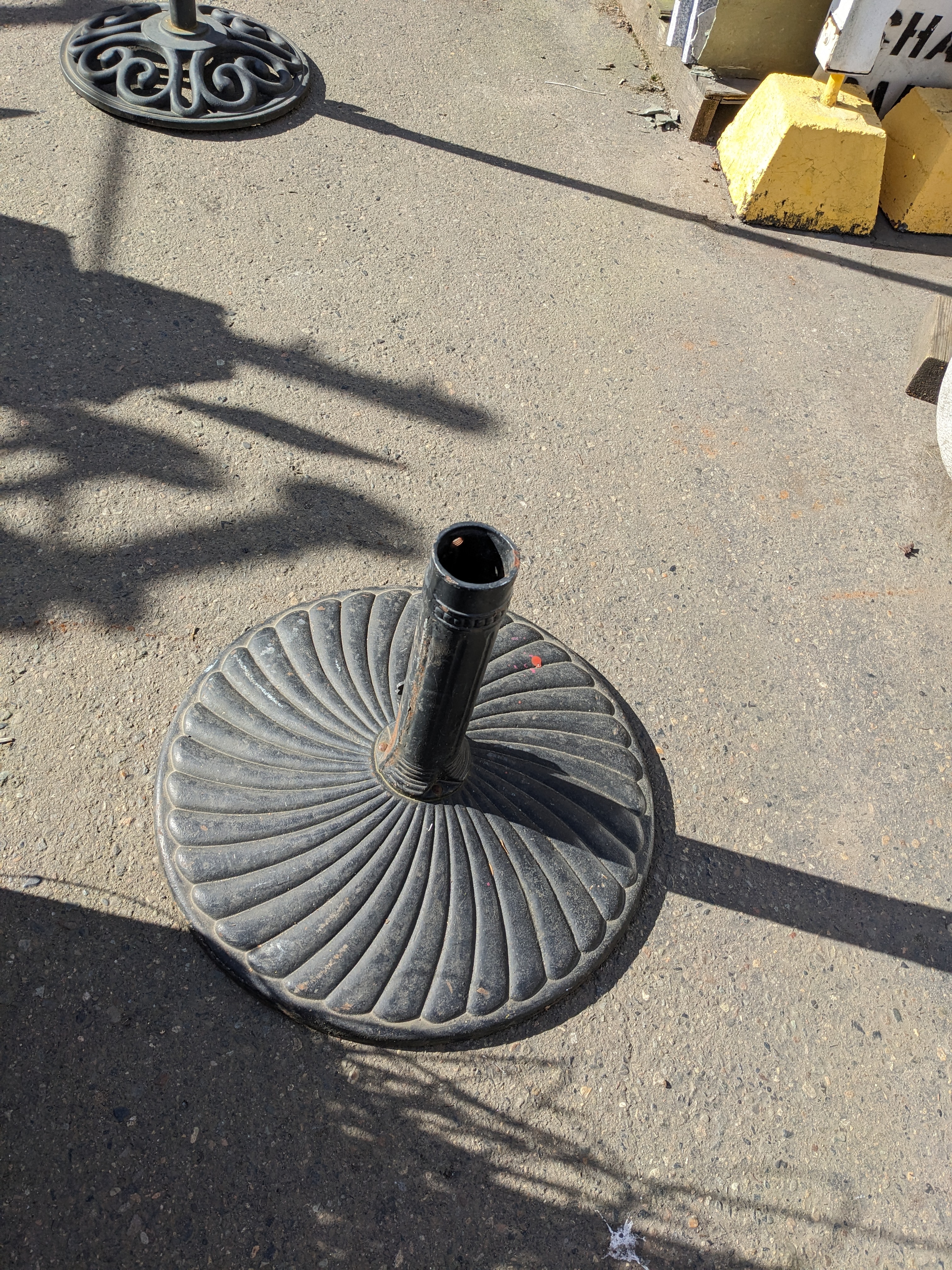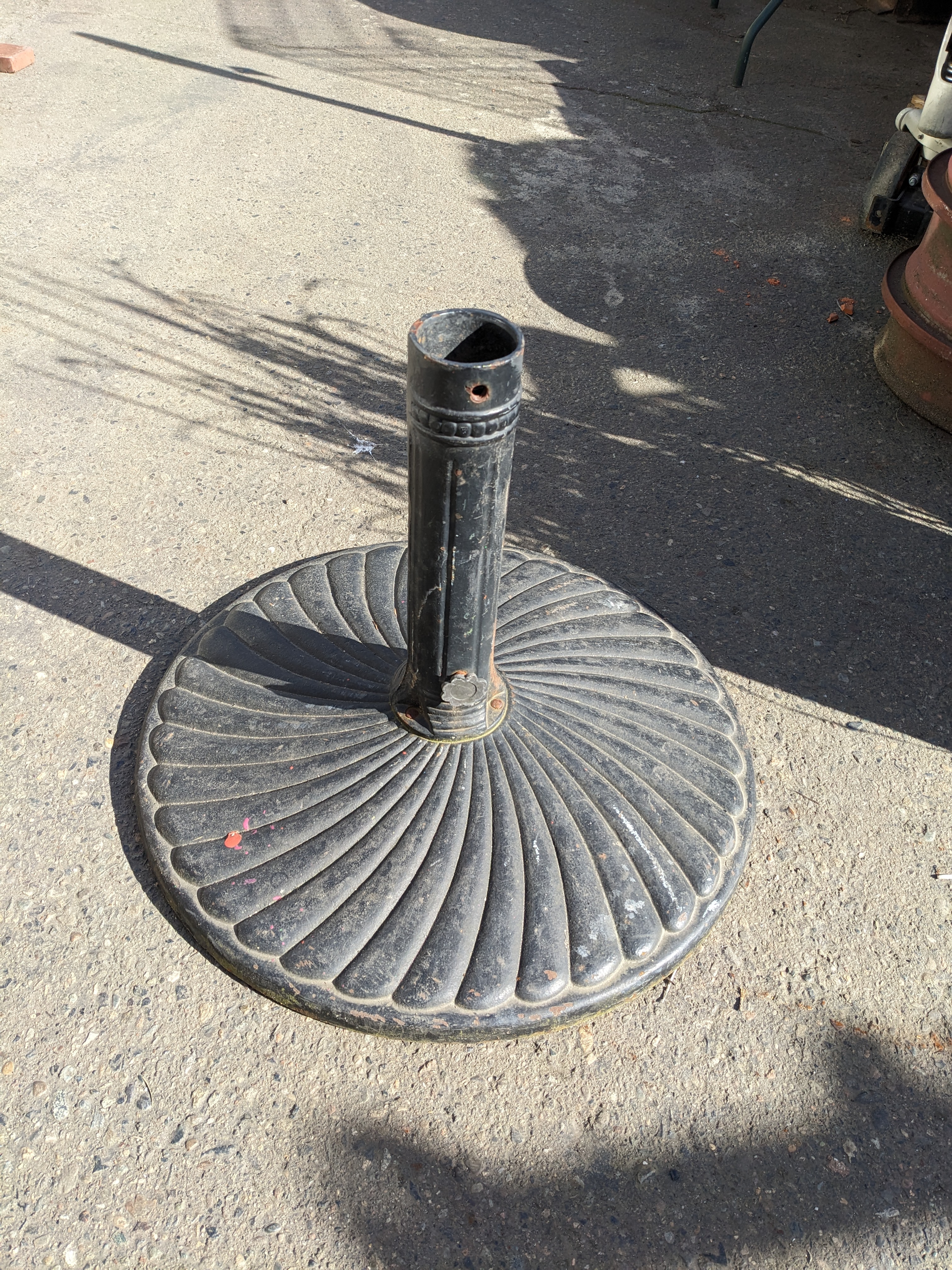Heavy duty umbrella stand, heavy enough to withstand rain and wind. With a decorative base it's not only functional but has style as well.
