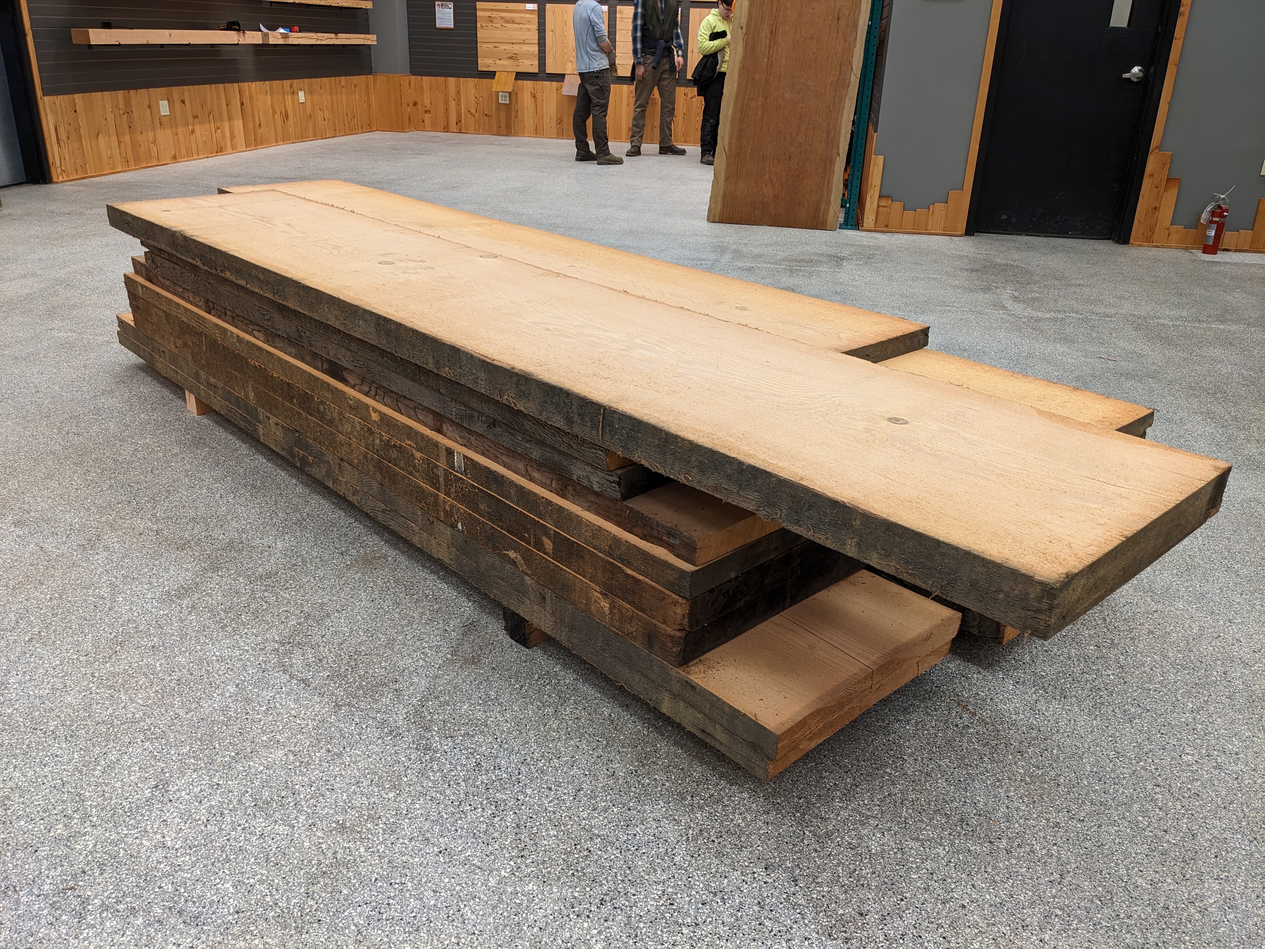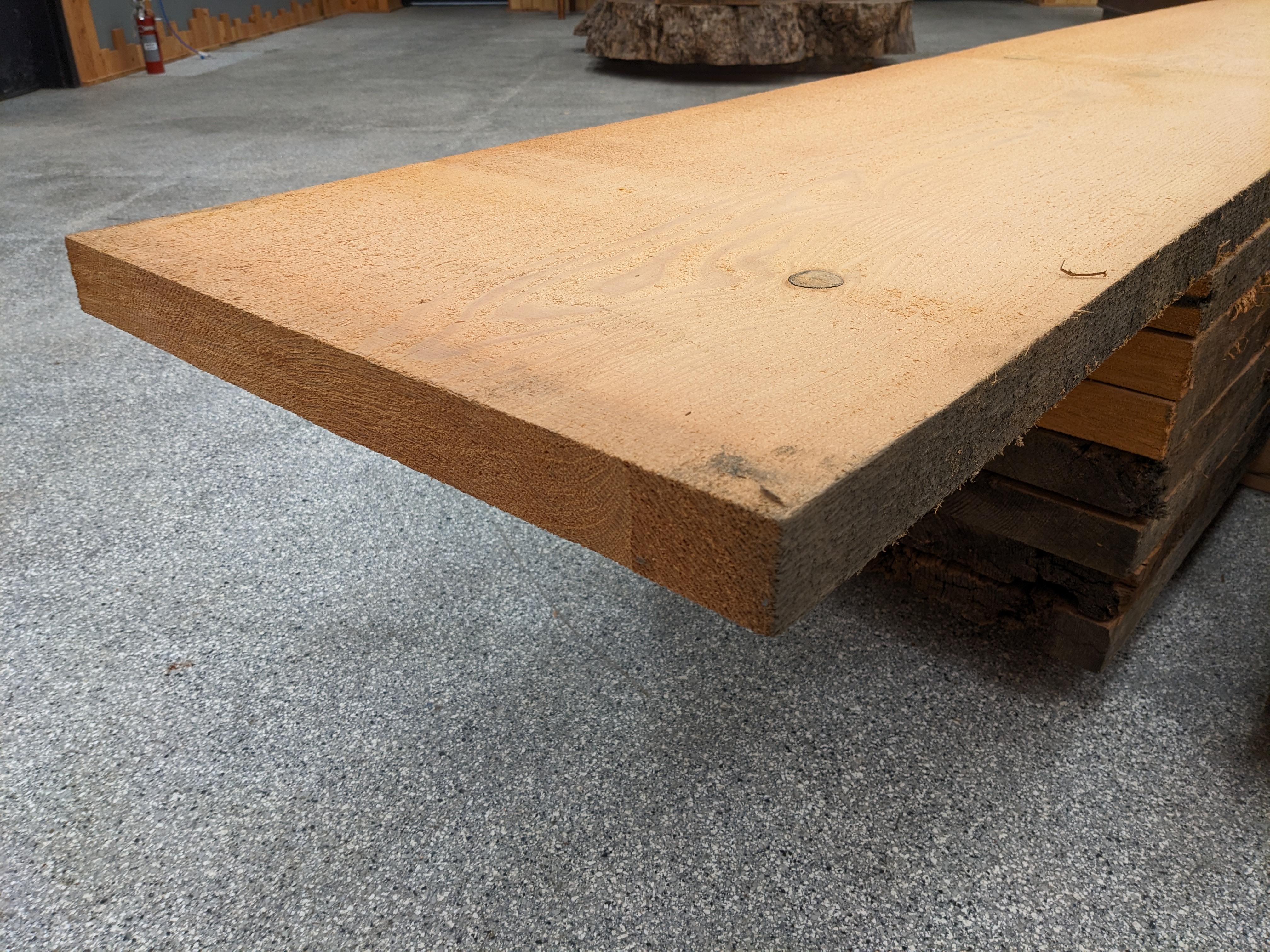 A big chunk of beautiful rough sawn old growth fir. These beefy boards were processed at our salvage lumber warehouse to maintain the patina while removing any splinters and rough spots. They may contain imperfections such as nail holes or knots, but we admire that kind of character.