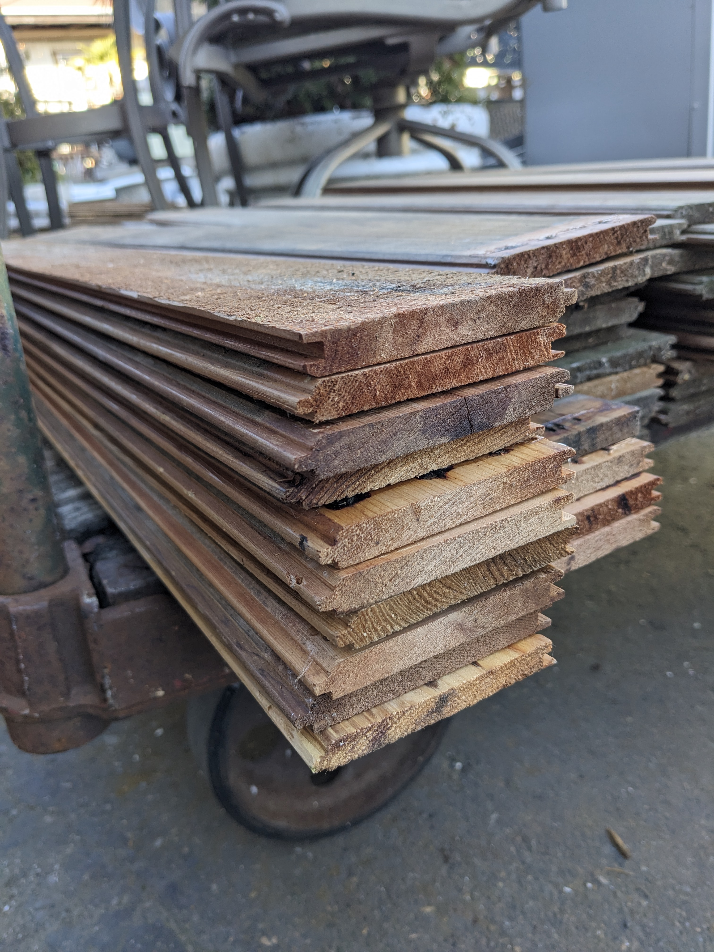 This salvaged tongue and groove cedar interior wall cladding is de-nailed and ready for install in your interior space or sauna!