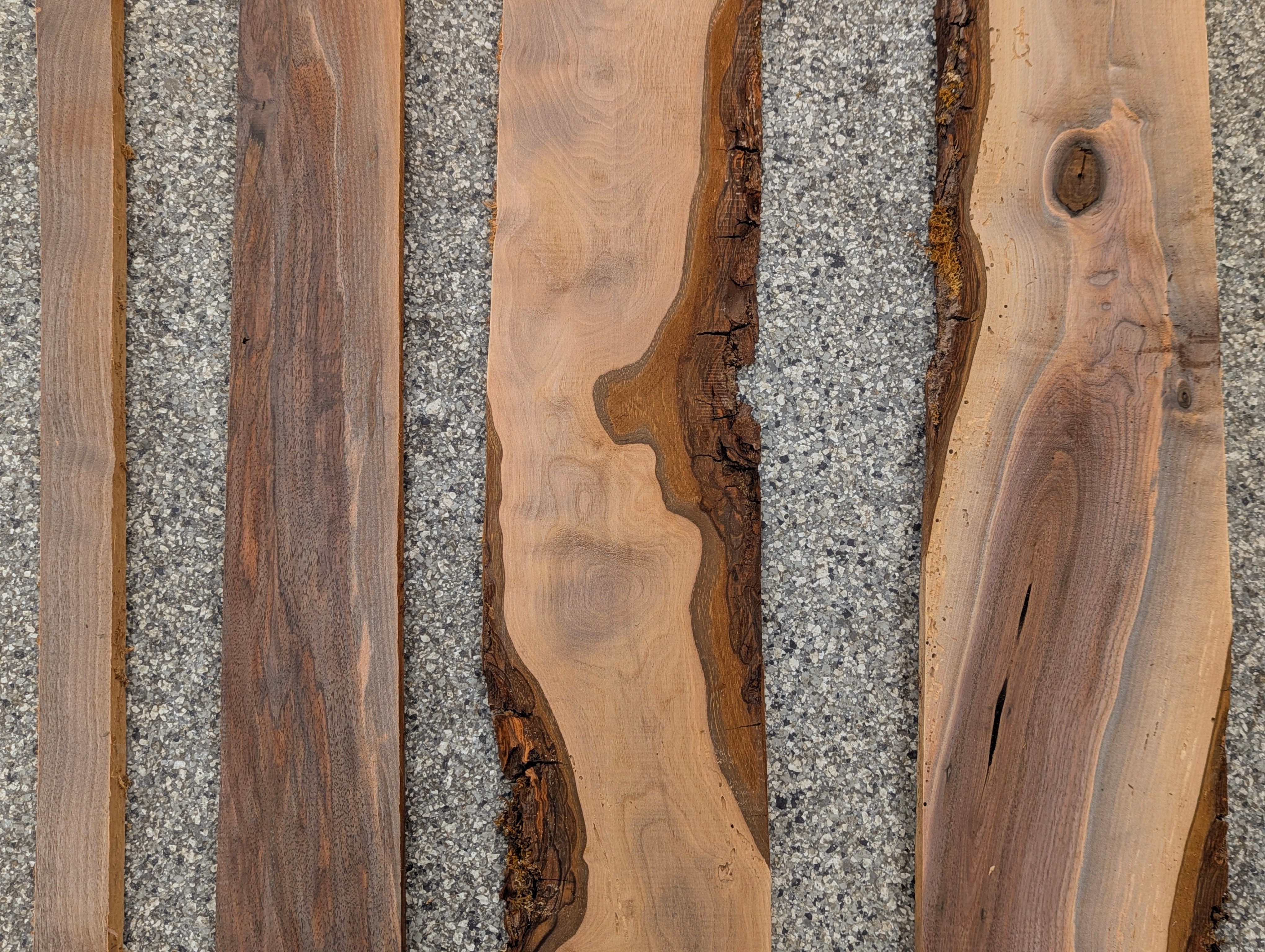These black Walnut slabs have been air dried for decades then milled and surfaced at our Earthwise Salvage Lumber Warehouse. Pieces may contain imperfections. These images are purely representative and may not represent the current condition.