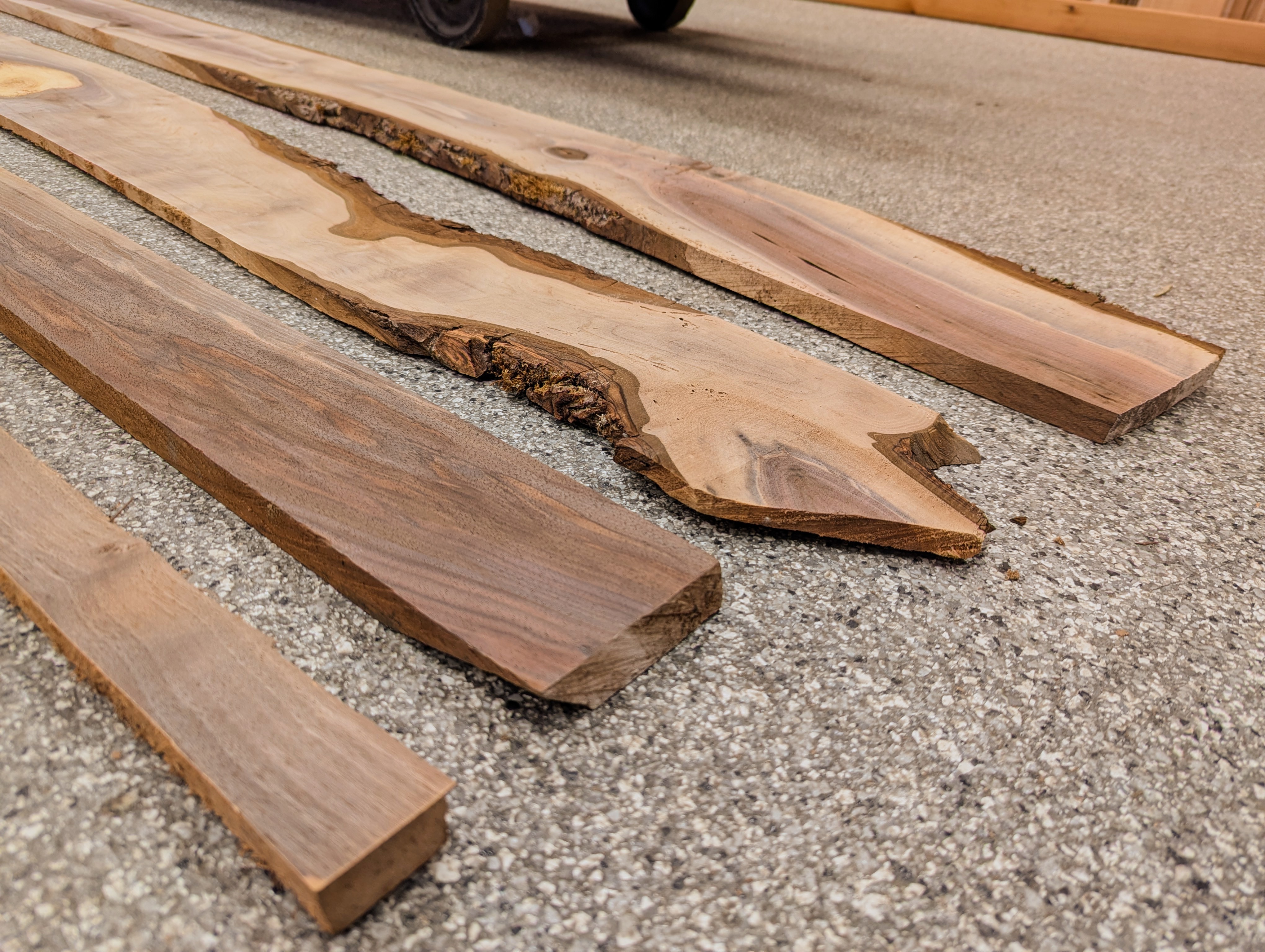These black Walnut slabs have been air dried for decades then milled and surfaced at our Earthwise Salvage Lumber Warehouse. Pieces may contain imperfections. These images are purely representative and may not represent the current condition.