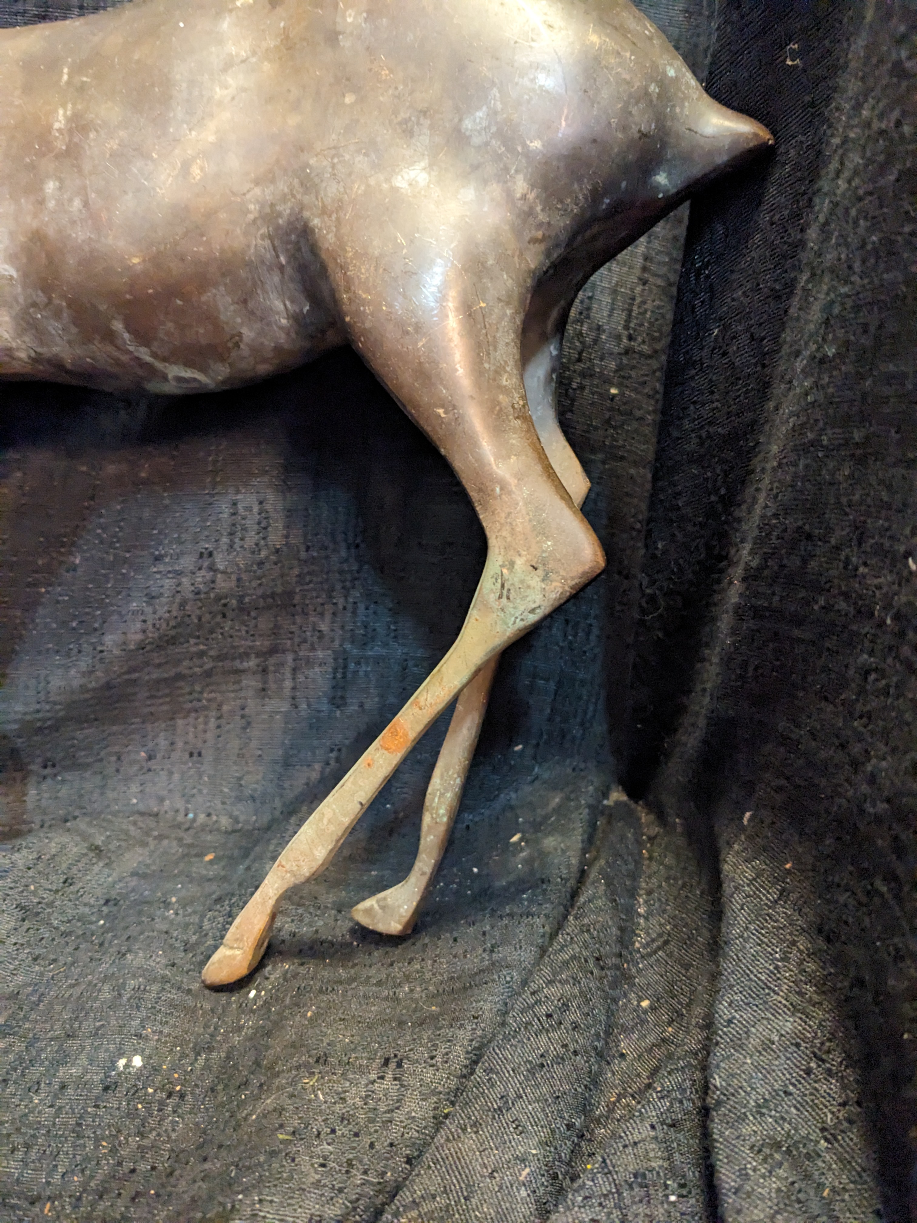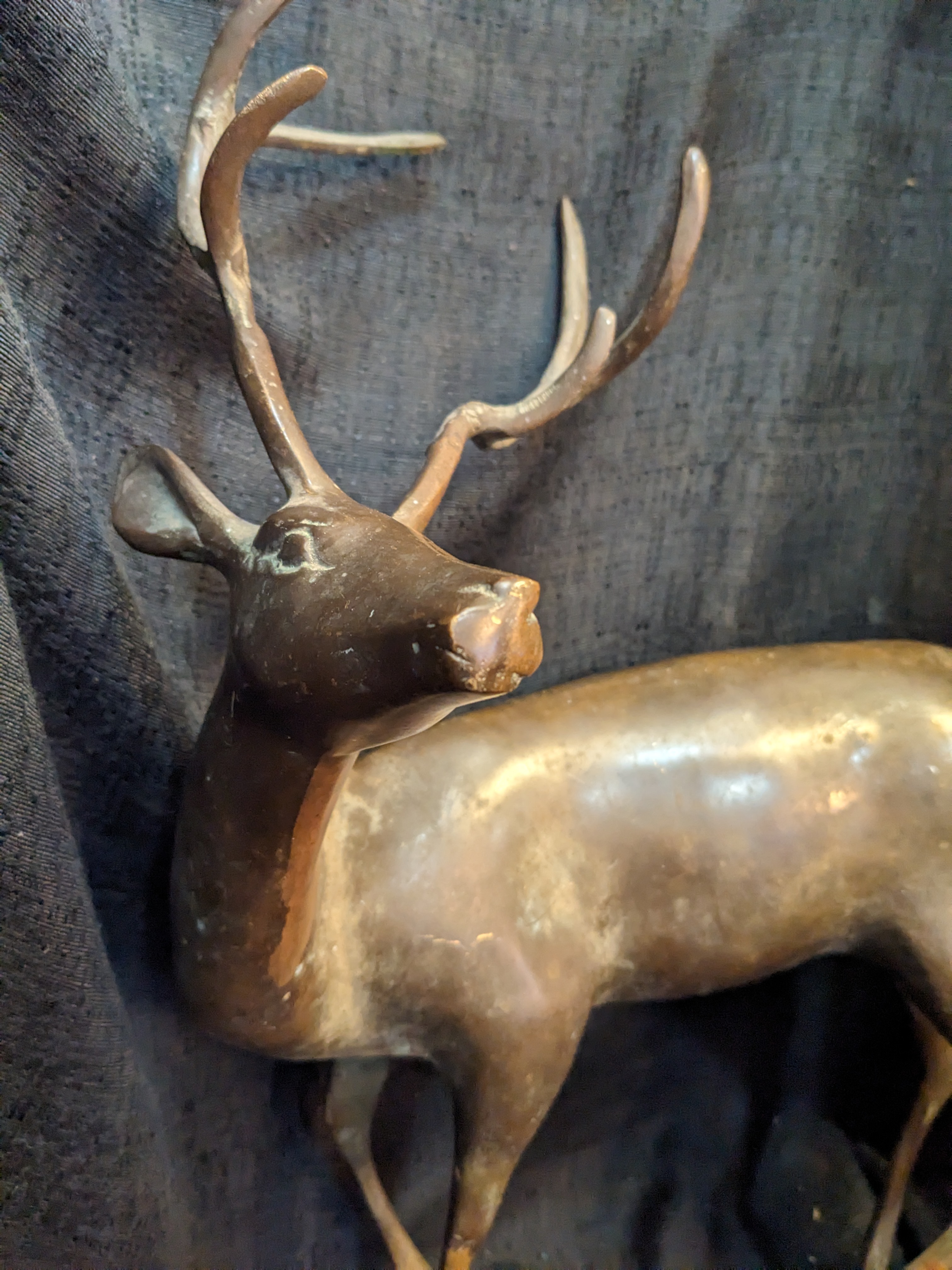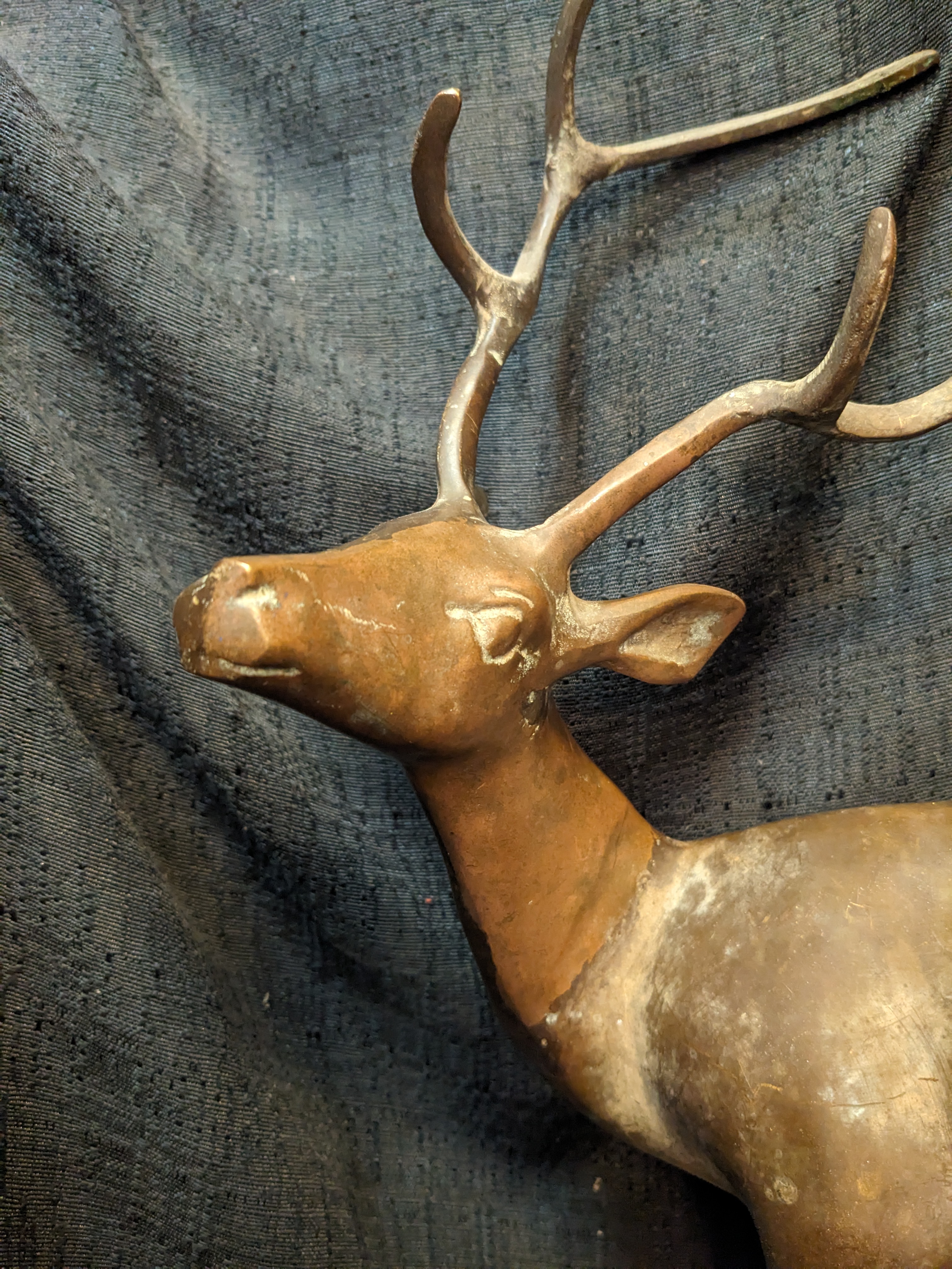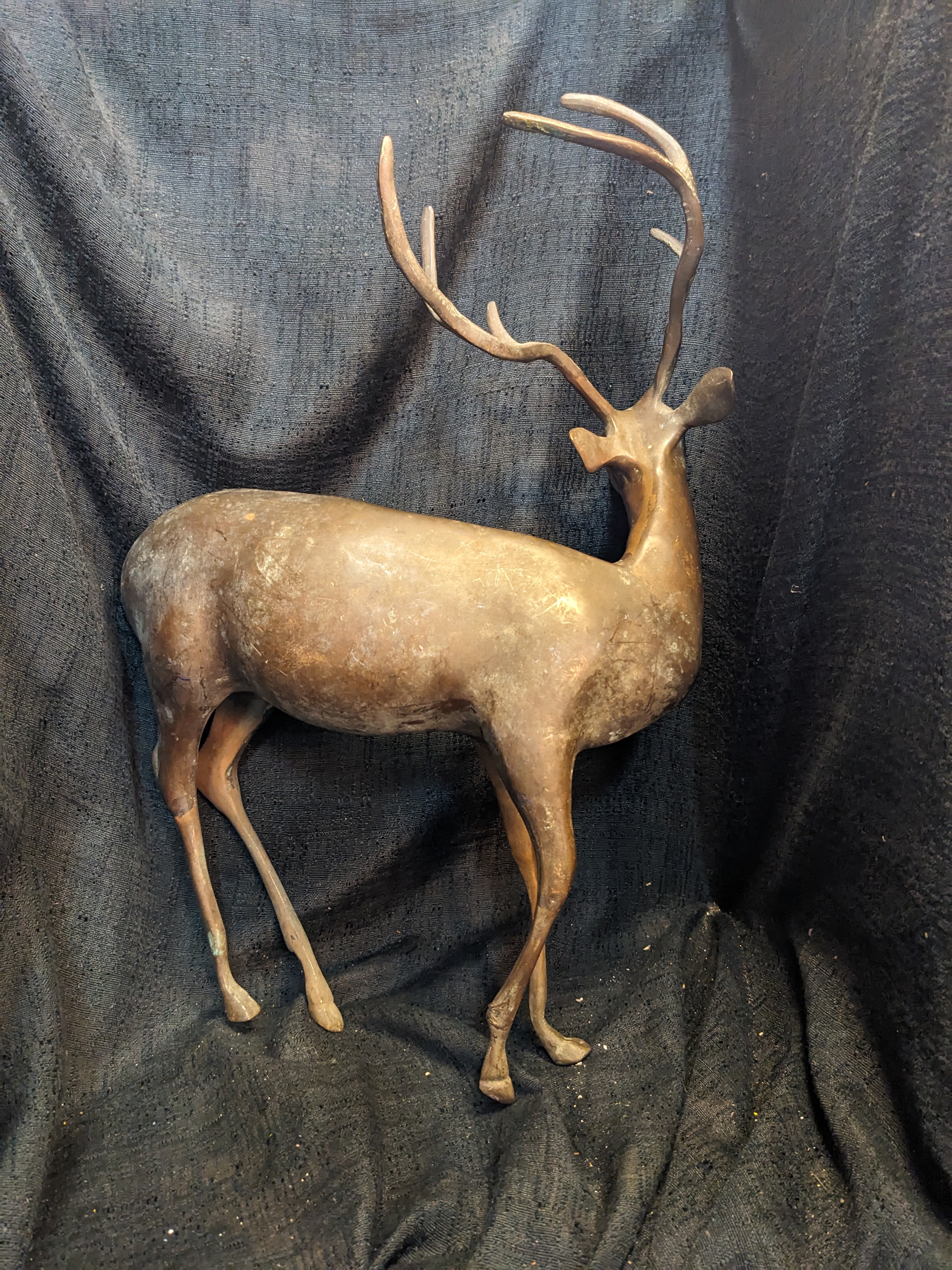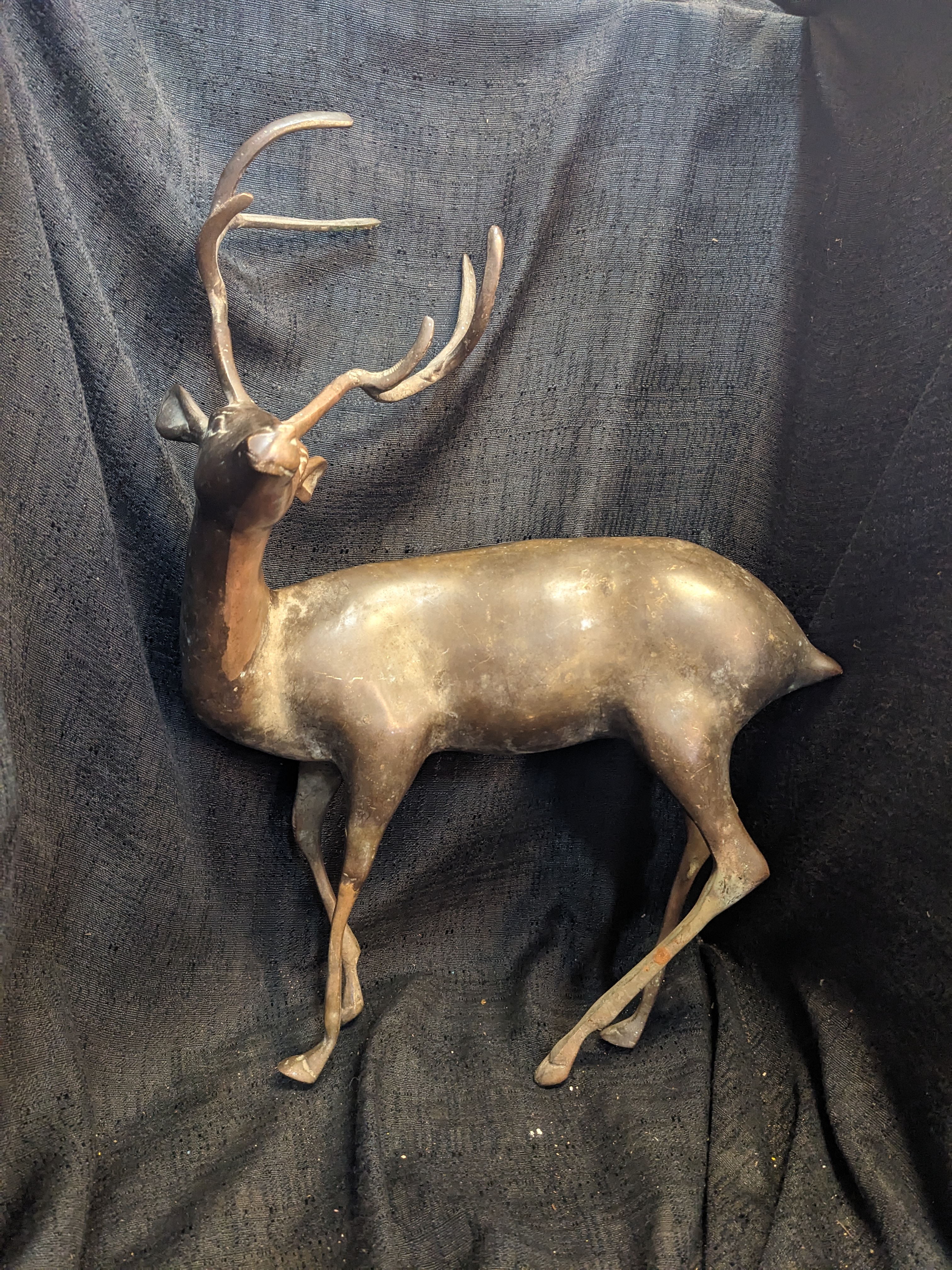 This exquisite stag is ready to take his place in your home! Made completely out of brass, this fella is sturdy and dense. He is gorgeous and in good condition with minor signs of wear. 3 x 17.5 x 11