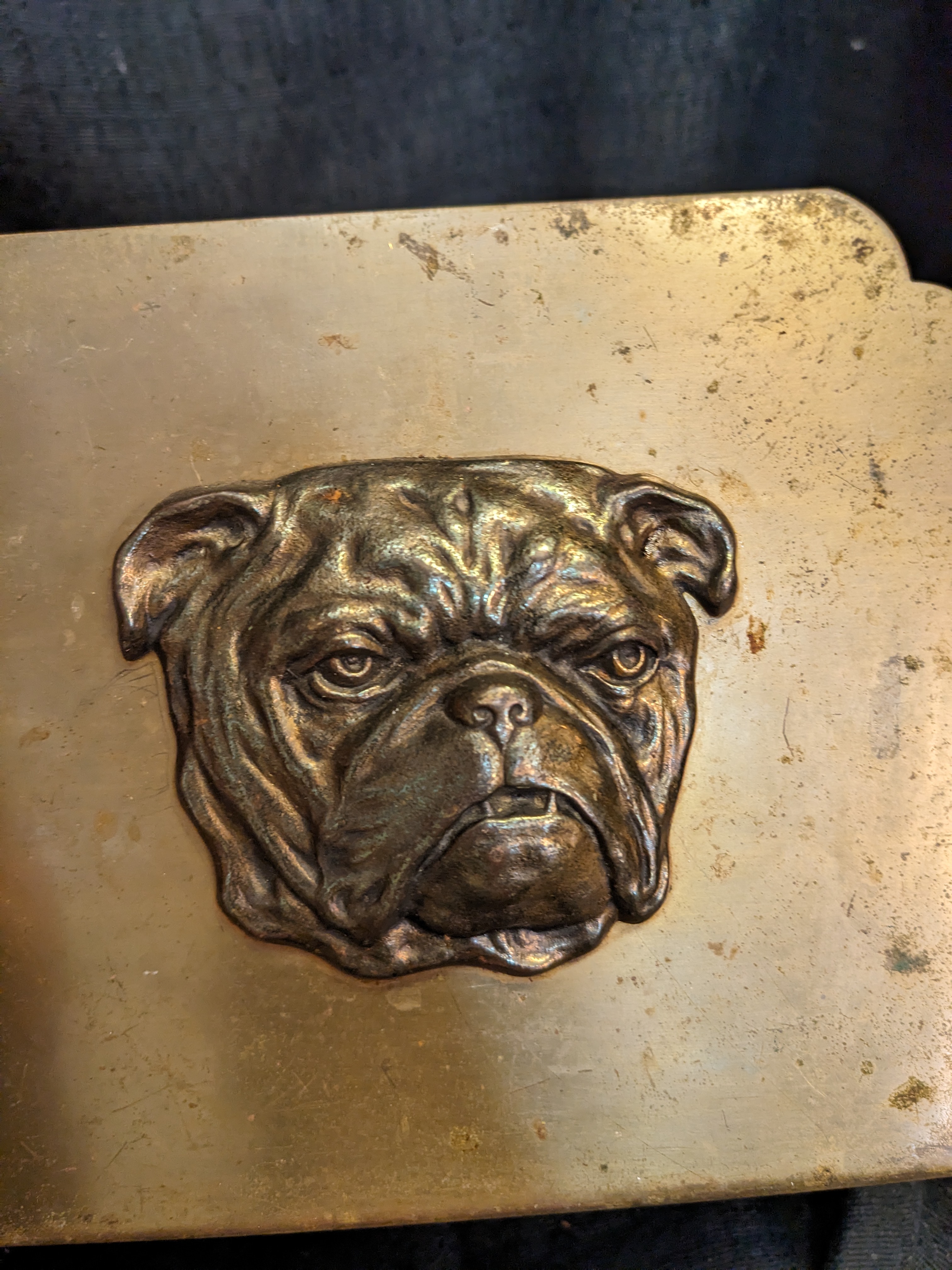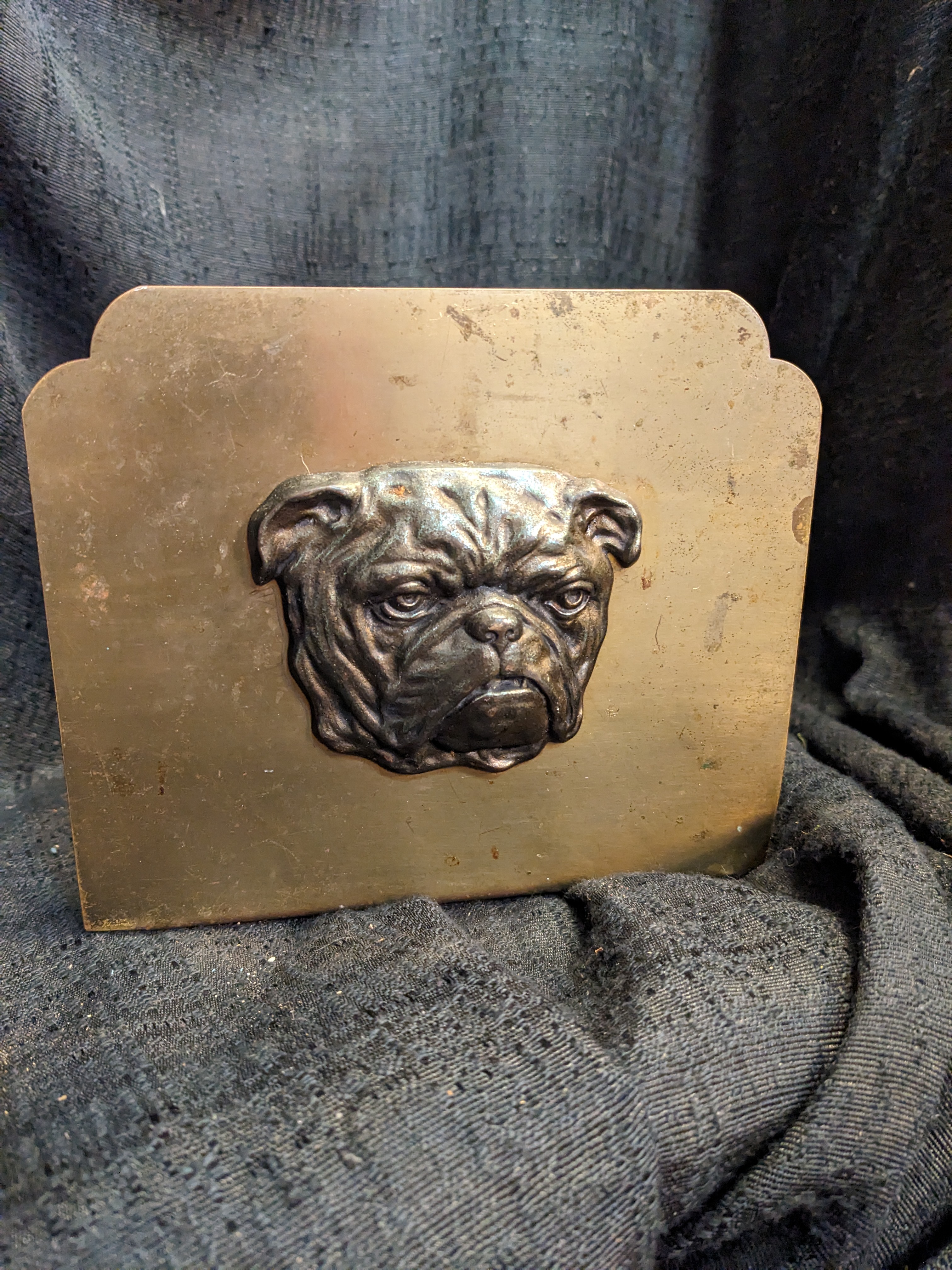 This bookend is super cute! Featuring a slightly upset looking bulldog, this would be a great and functional decoration on your shelf. It measures 6 x 5 x 5.