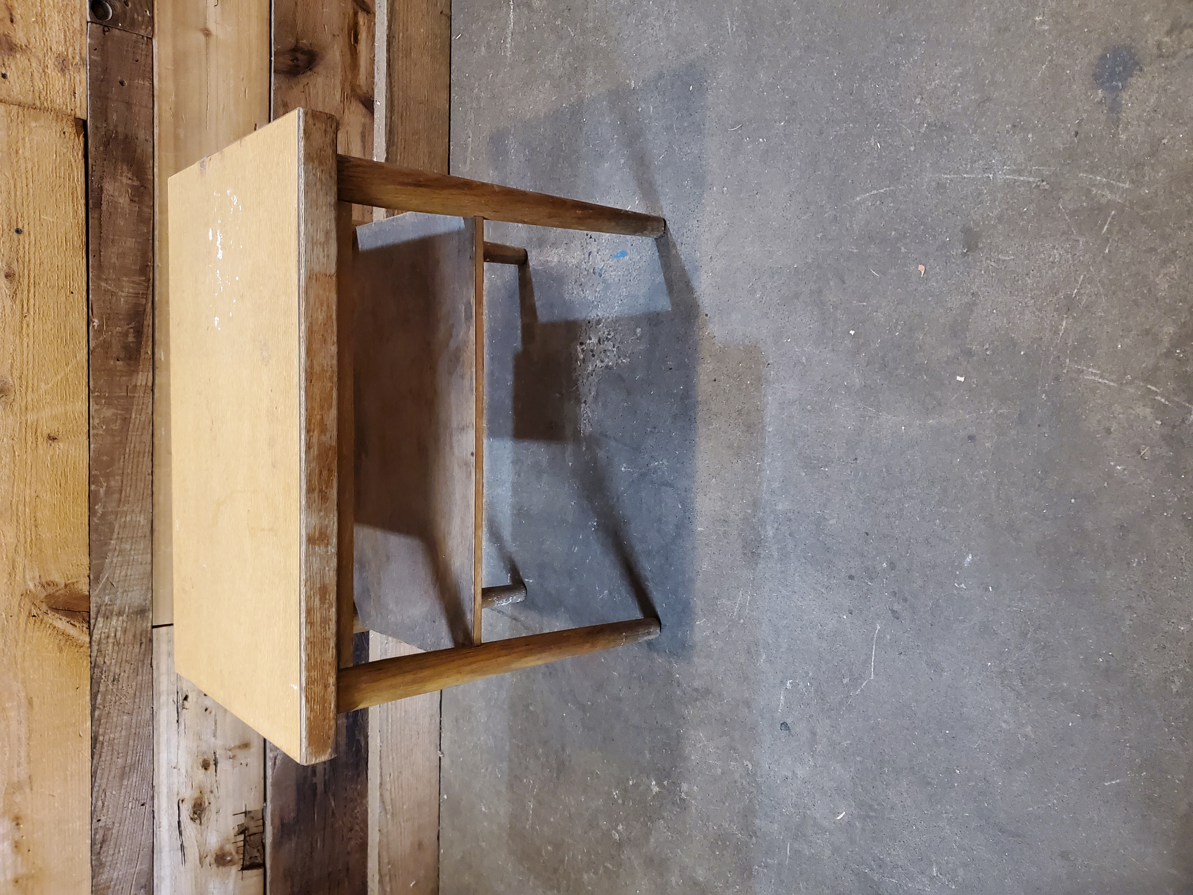 This little side table is adorable. It is on the shorter side and would be perfect for a lower couch. There is some paint on top and some chips but no structural damage.