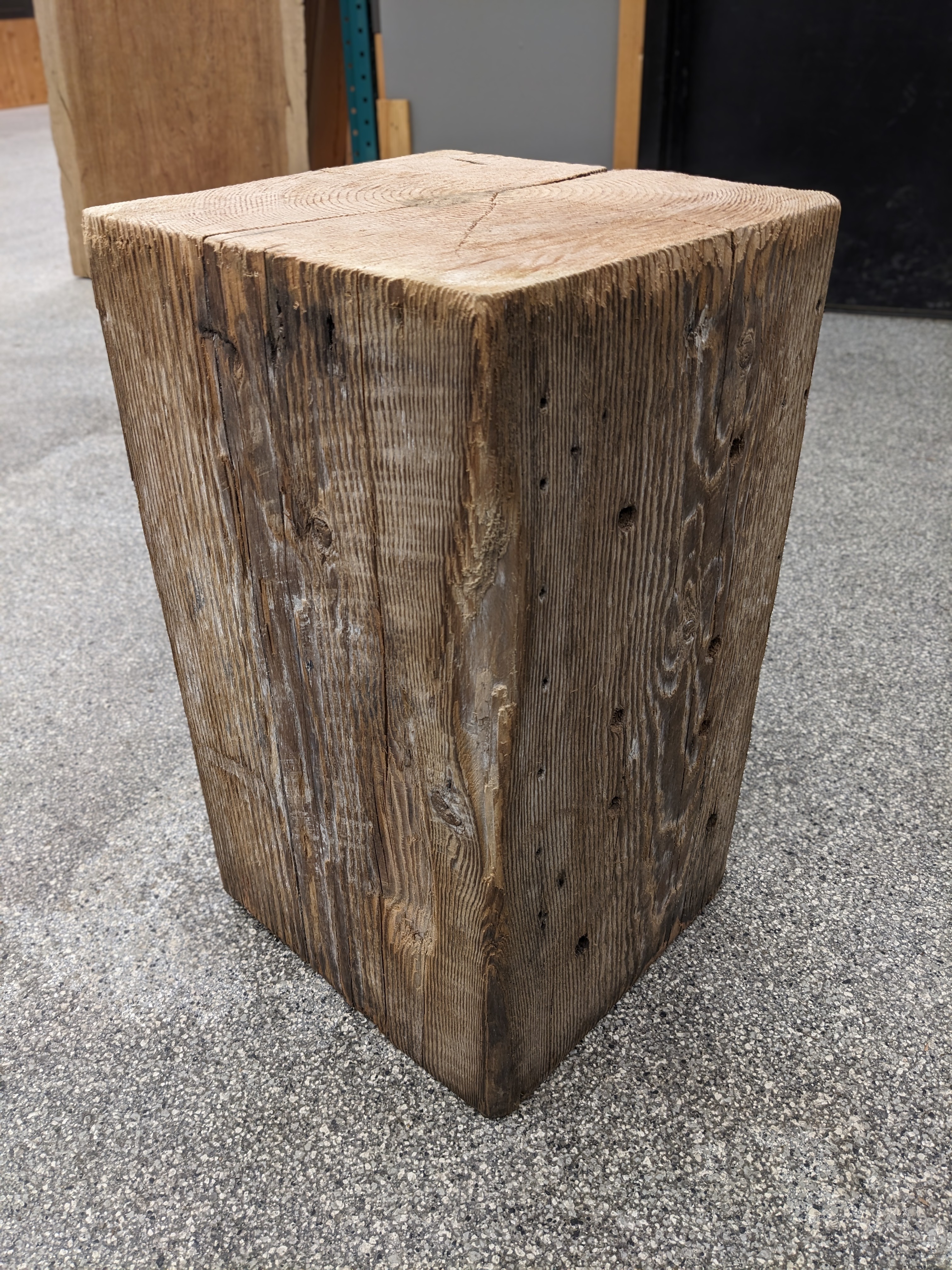 These magnificent beam chunks have been brushed to retain their history and saw mark.