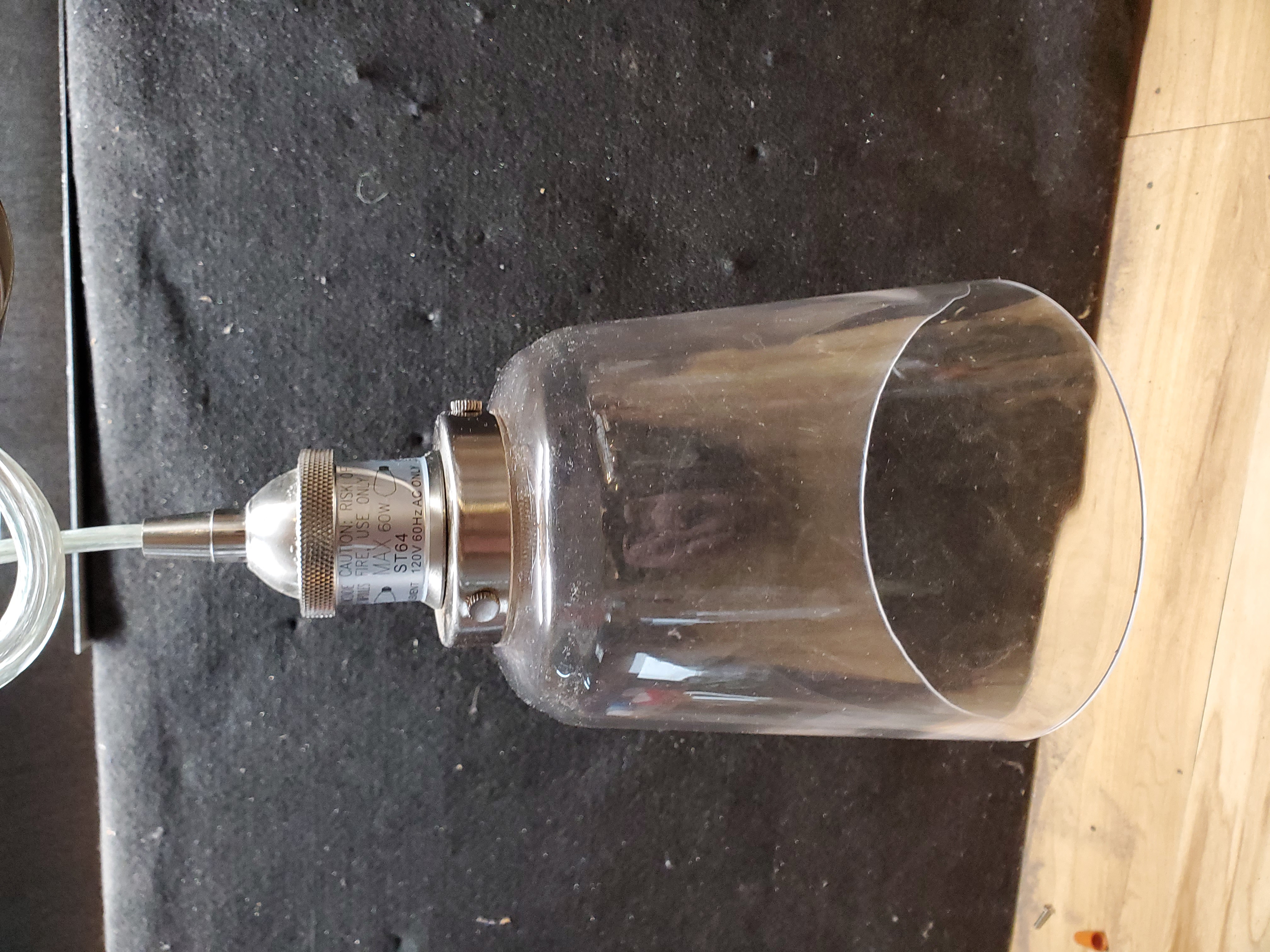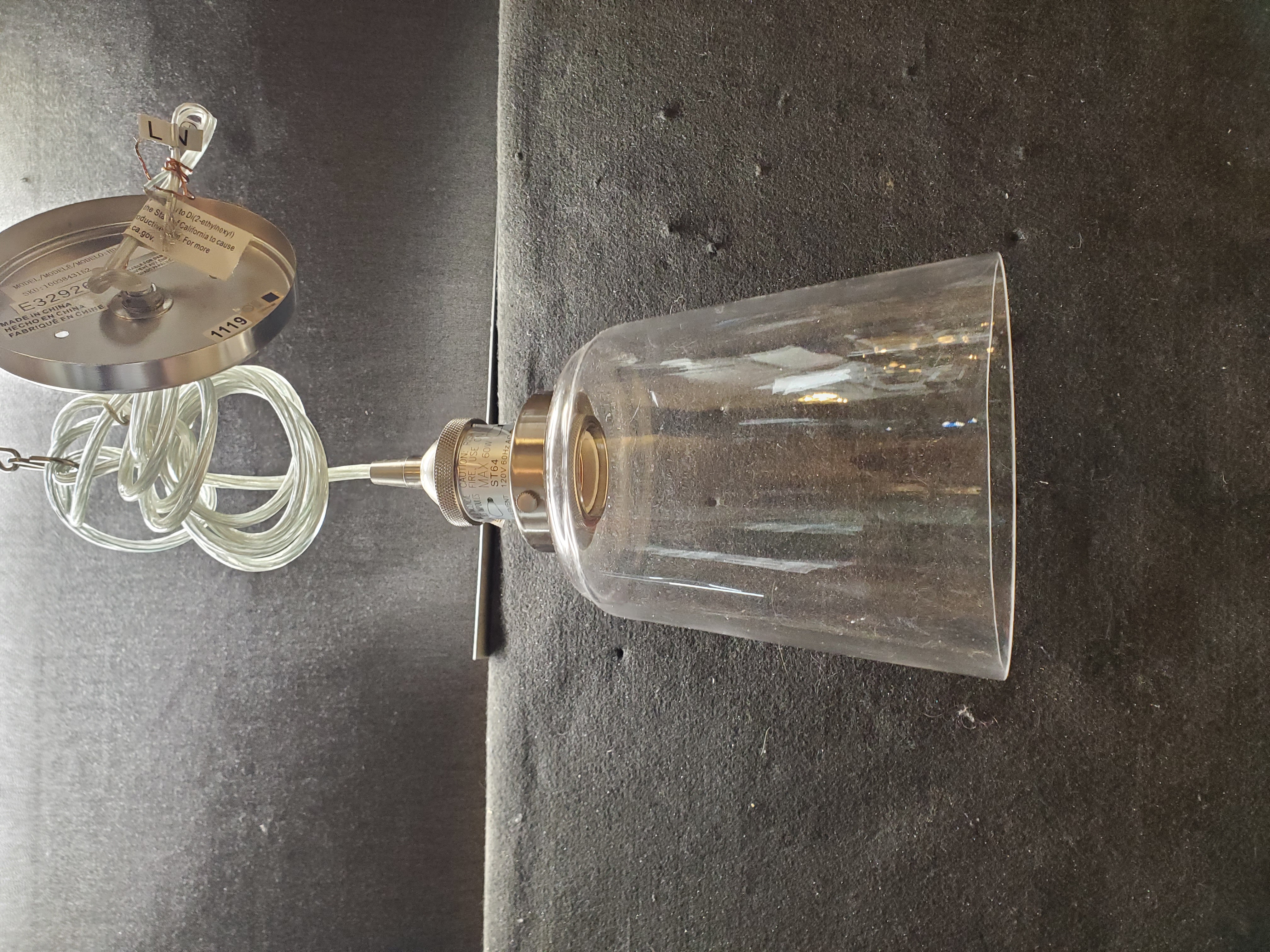 It has a clear glass shade.