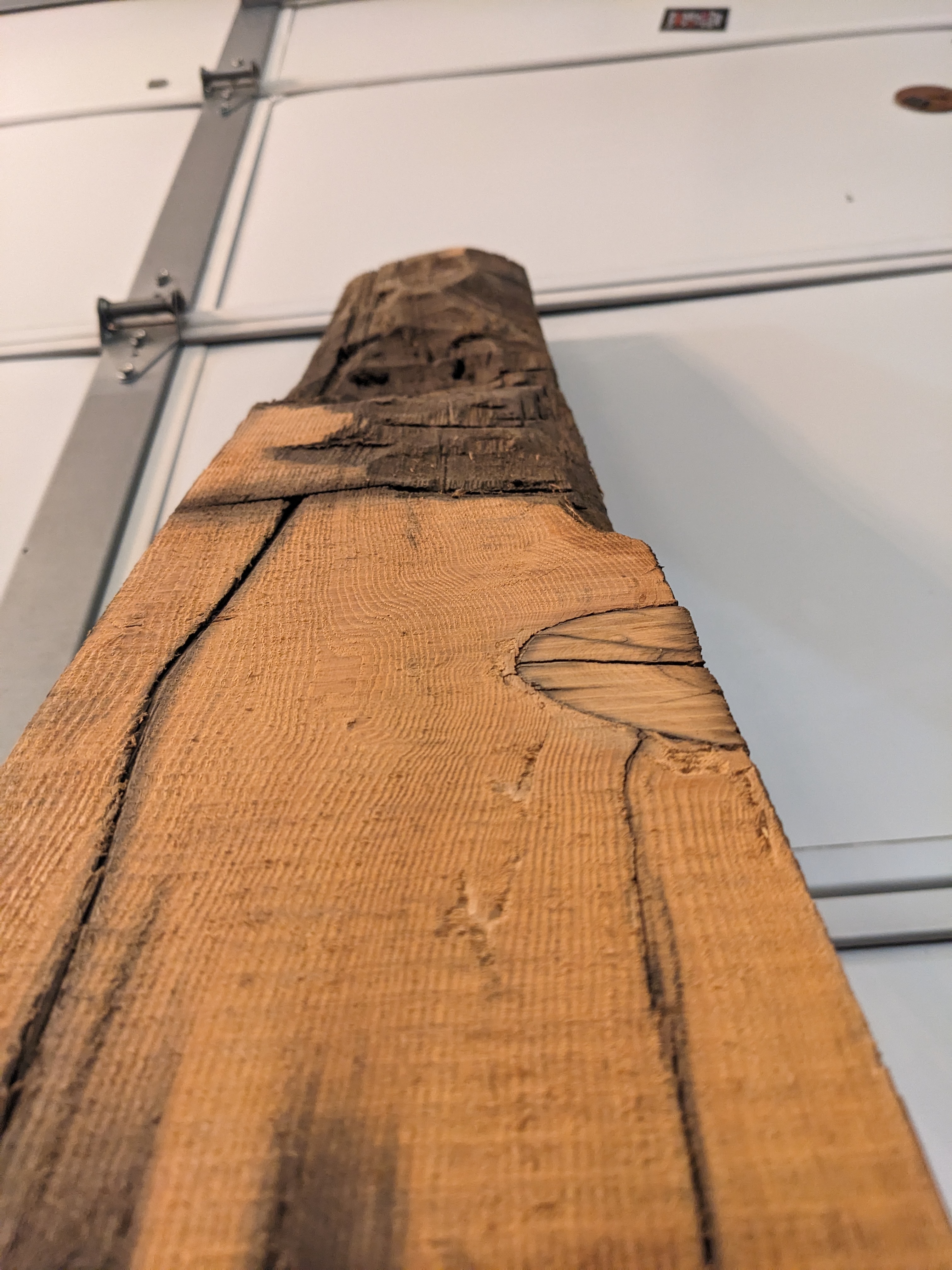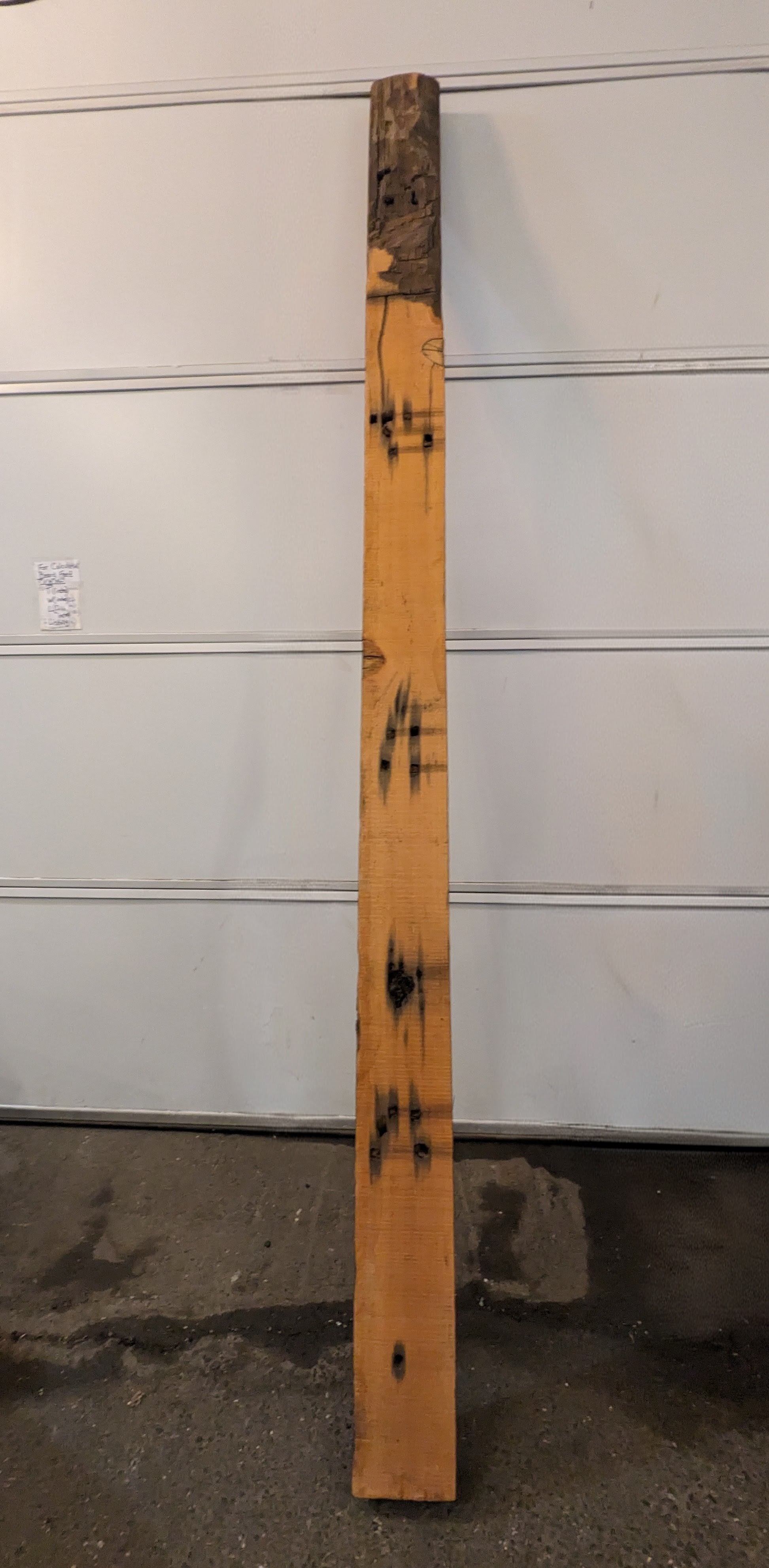 We have a lovely knotty piece of salvaged lumber with a about two feet is less thick by up to an inch and a half. This interesting piece of lumber is 2-3.5 inches Thick, 6 inches wide, and 101.5 inches long.