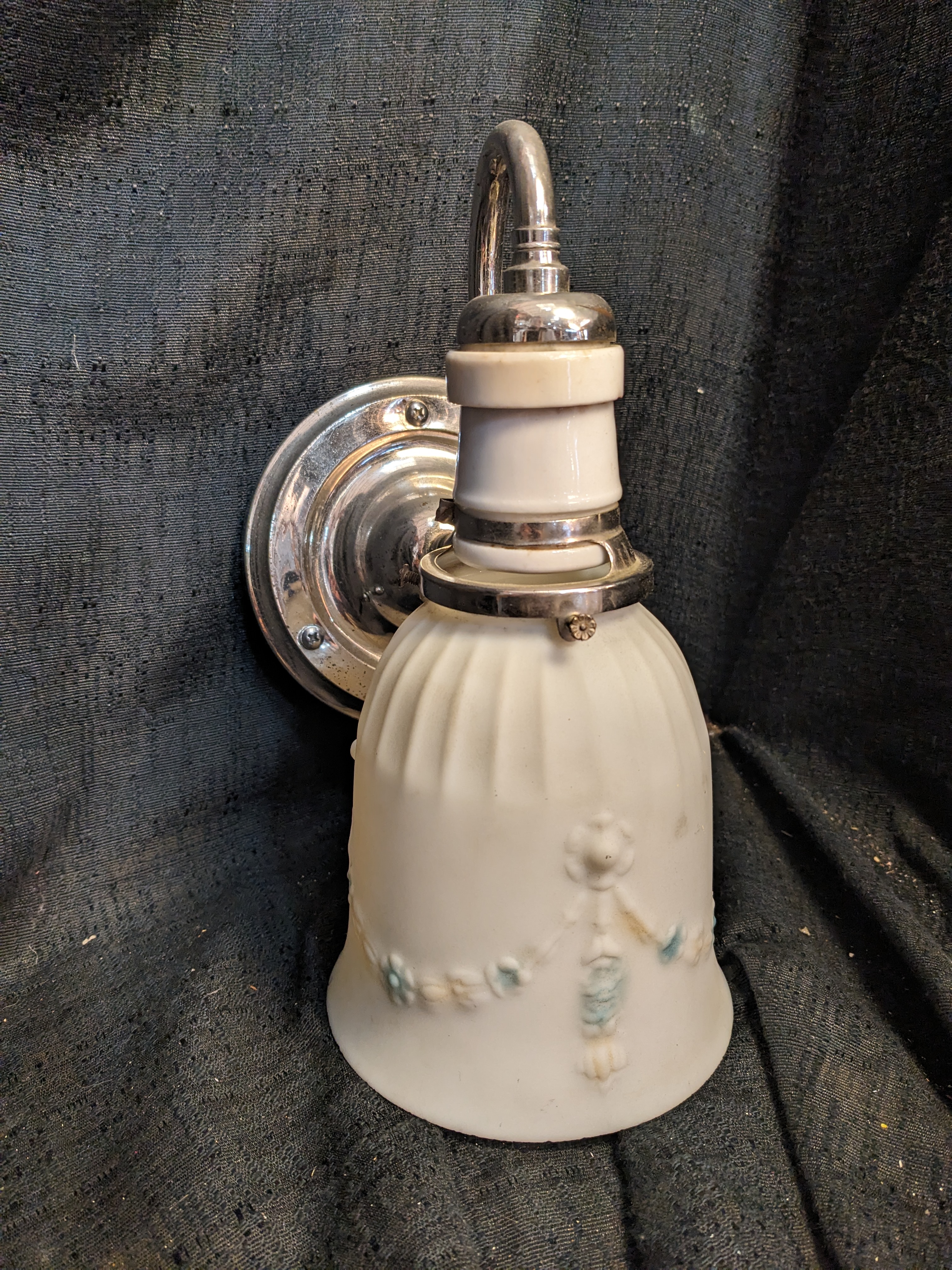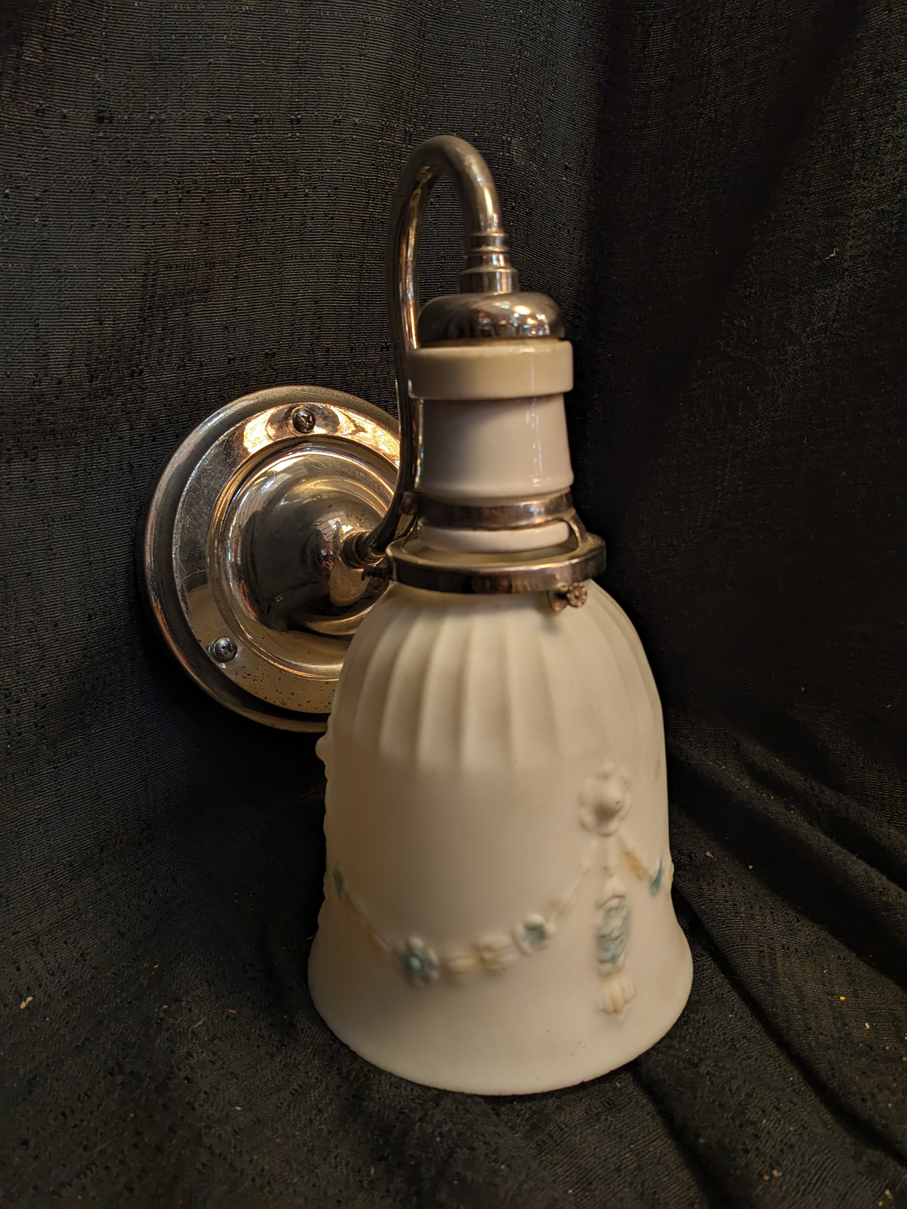 Sweet small details lay throughout this piece, such as the floral set screws holding the shade in place.