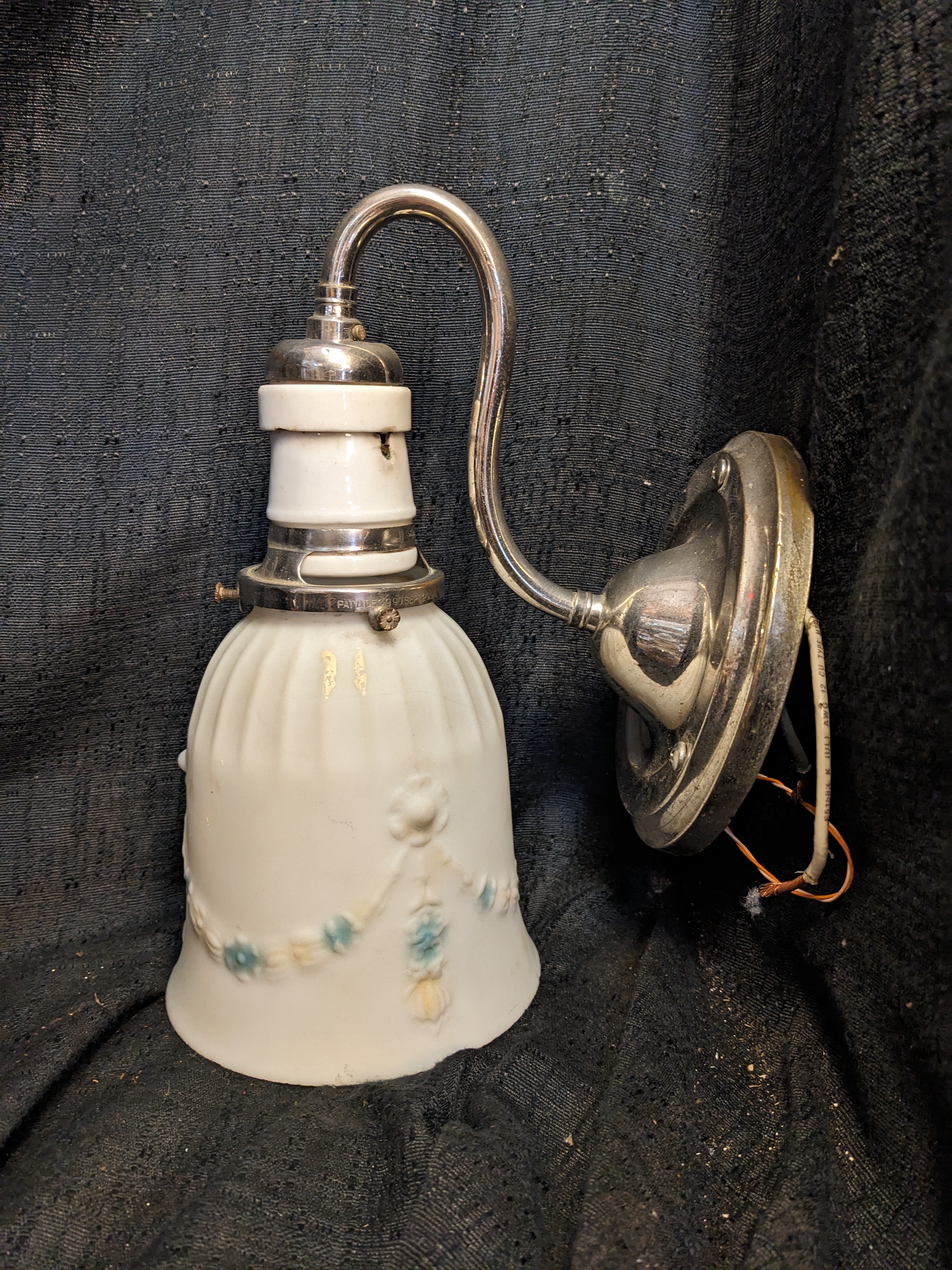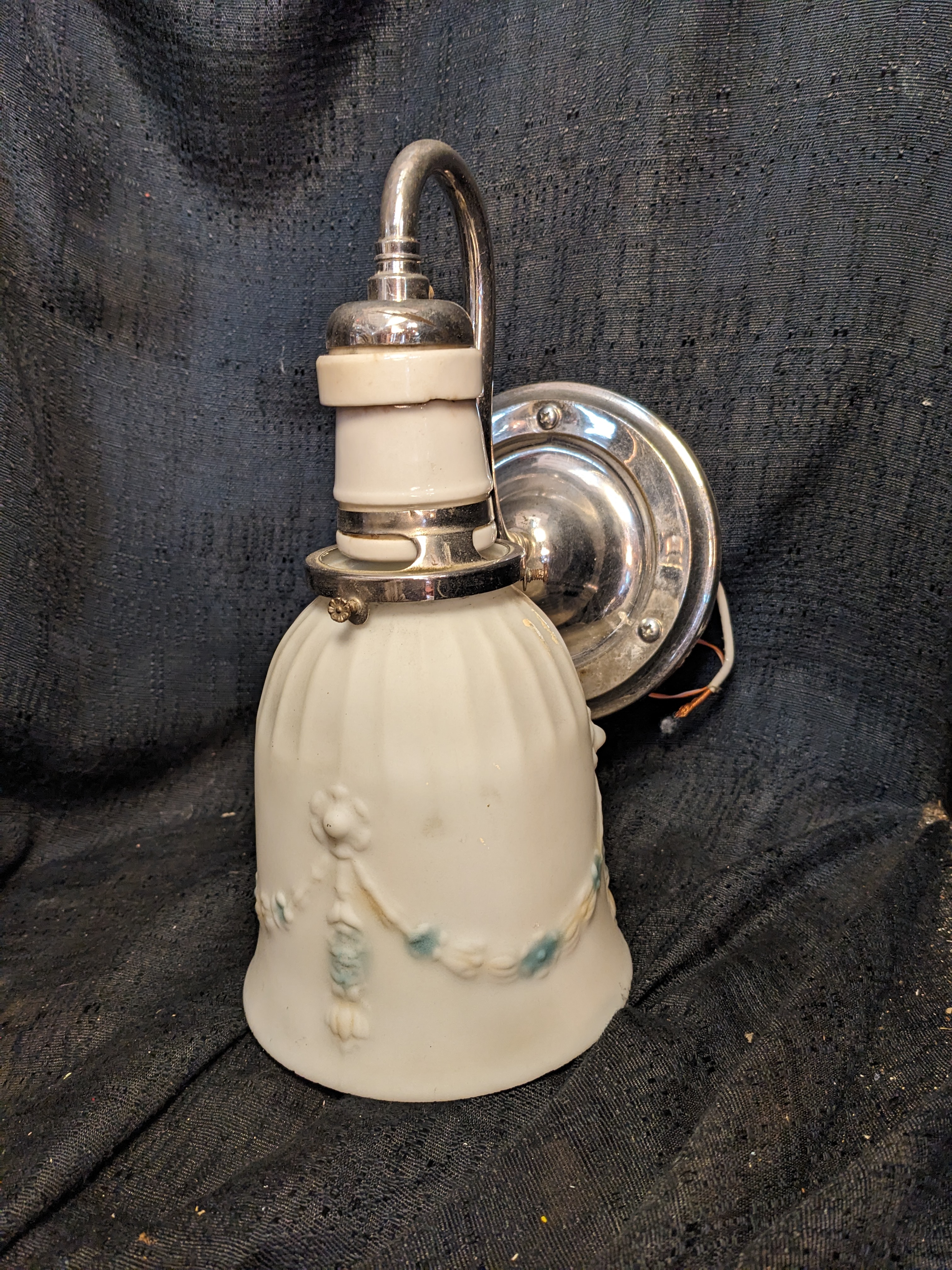 Beautiful floral & ribbon banner design - seems to be hand painted! Paint is worn, but still present.
