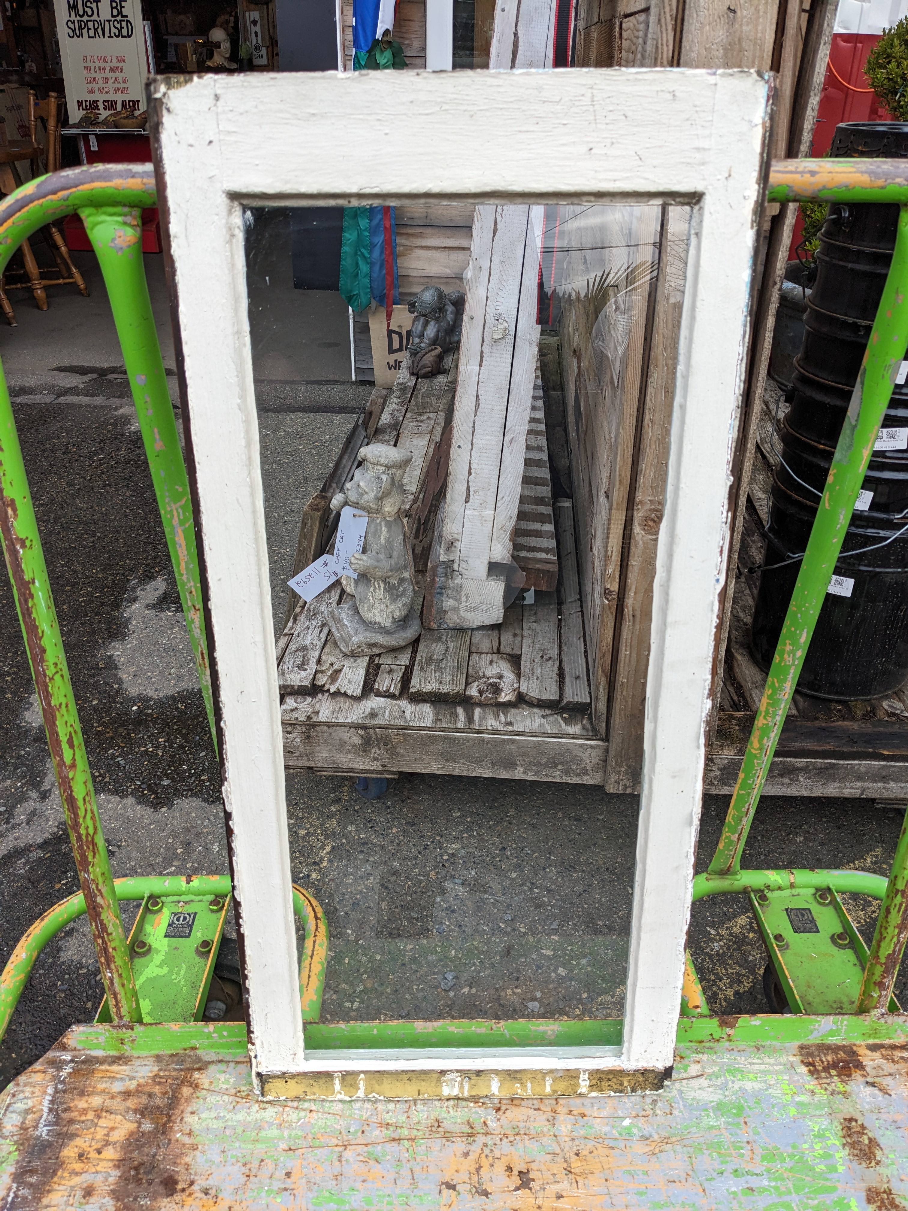 Single lite wood window. No cracks, chips or splits. Frame is old but solid. Painted on both sides.