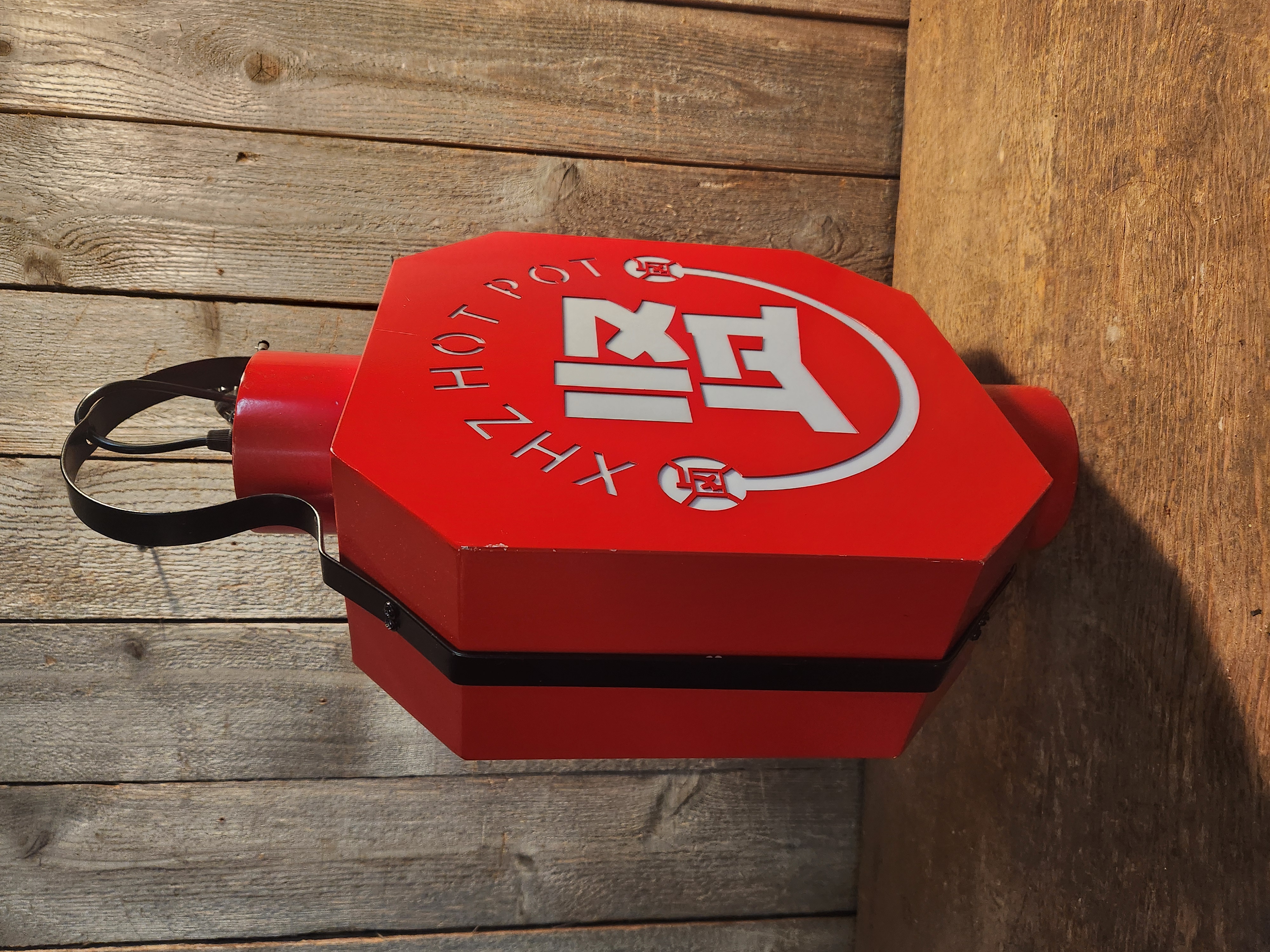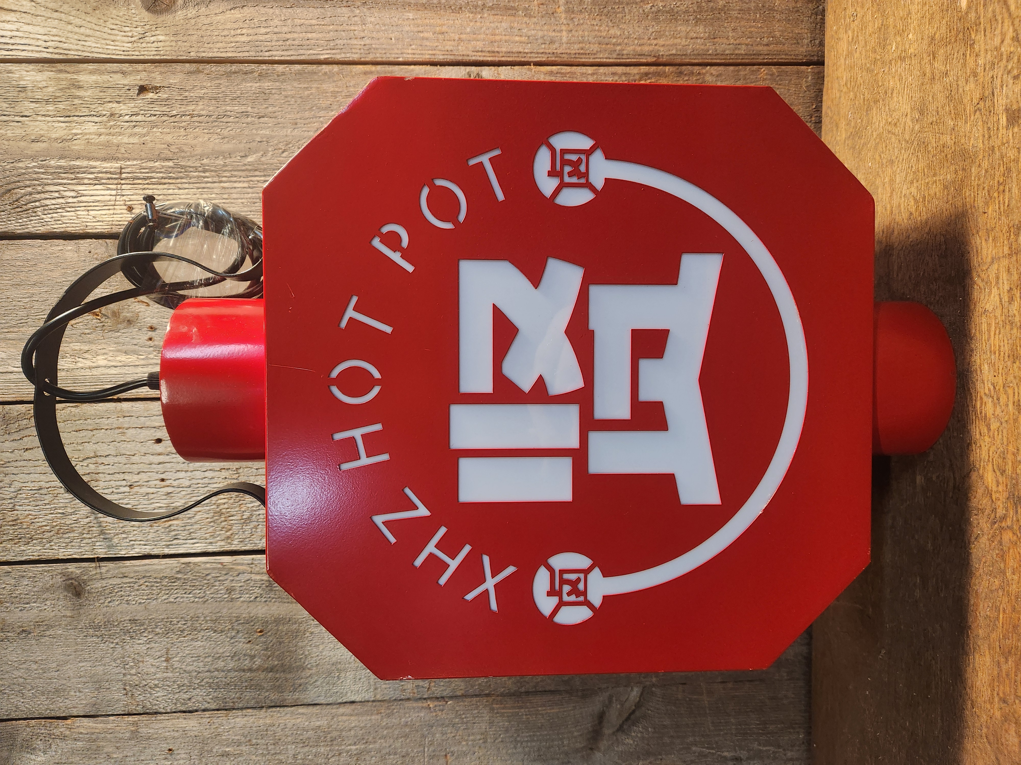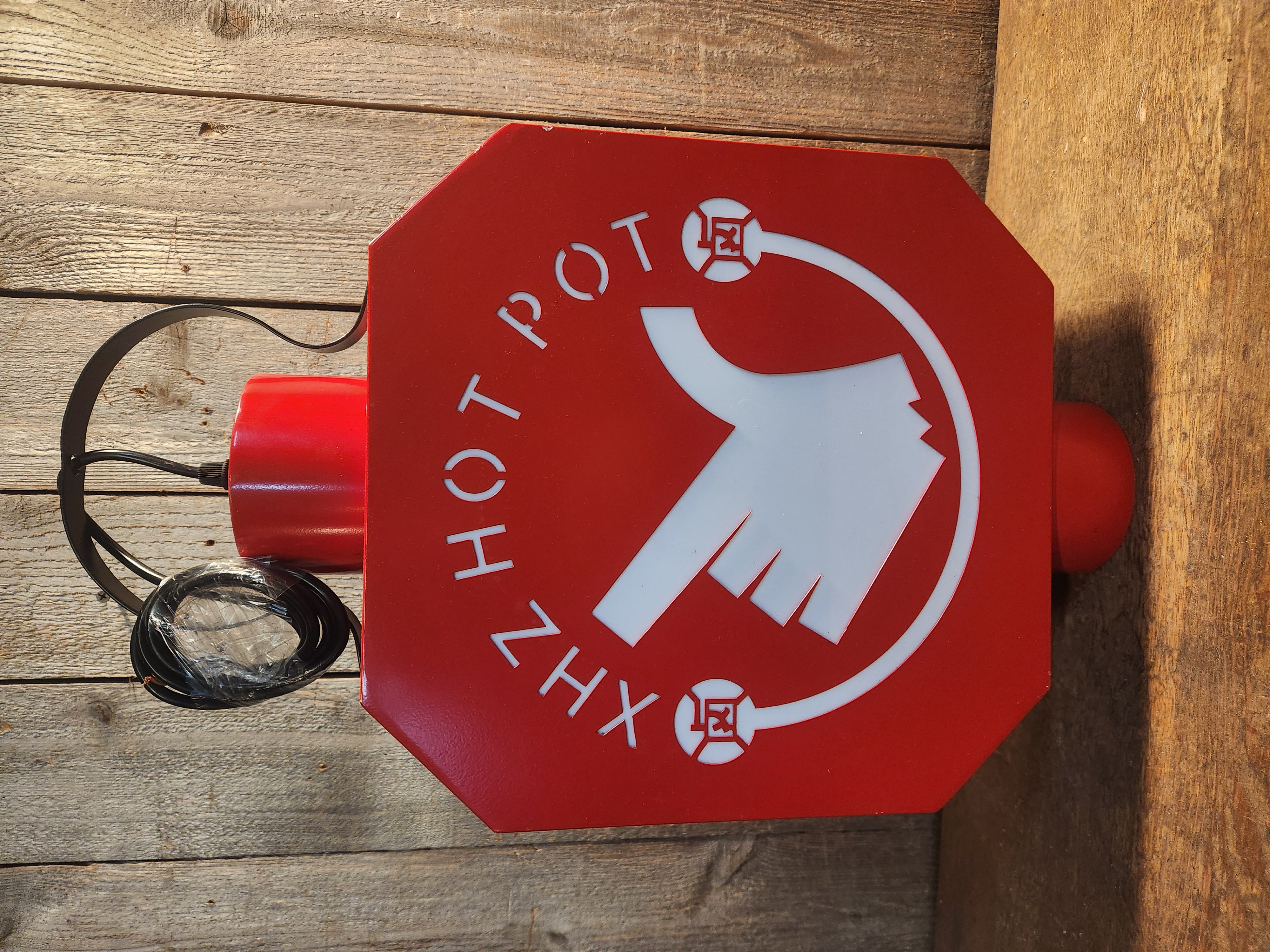 Why keep looking for a sign to get some hotpot when you can just buy one? This light up sign has been tested by us but appears in good condition. It has some small scratches in the paint, but the wiring looks great. Show people what you're really about by displaying it at home! Measures 12.5 x 21 x 5.25.