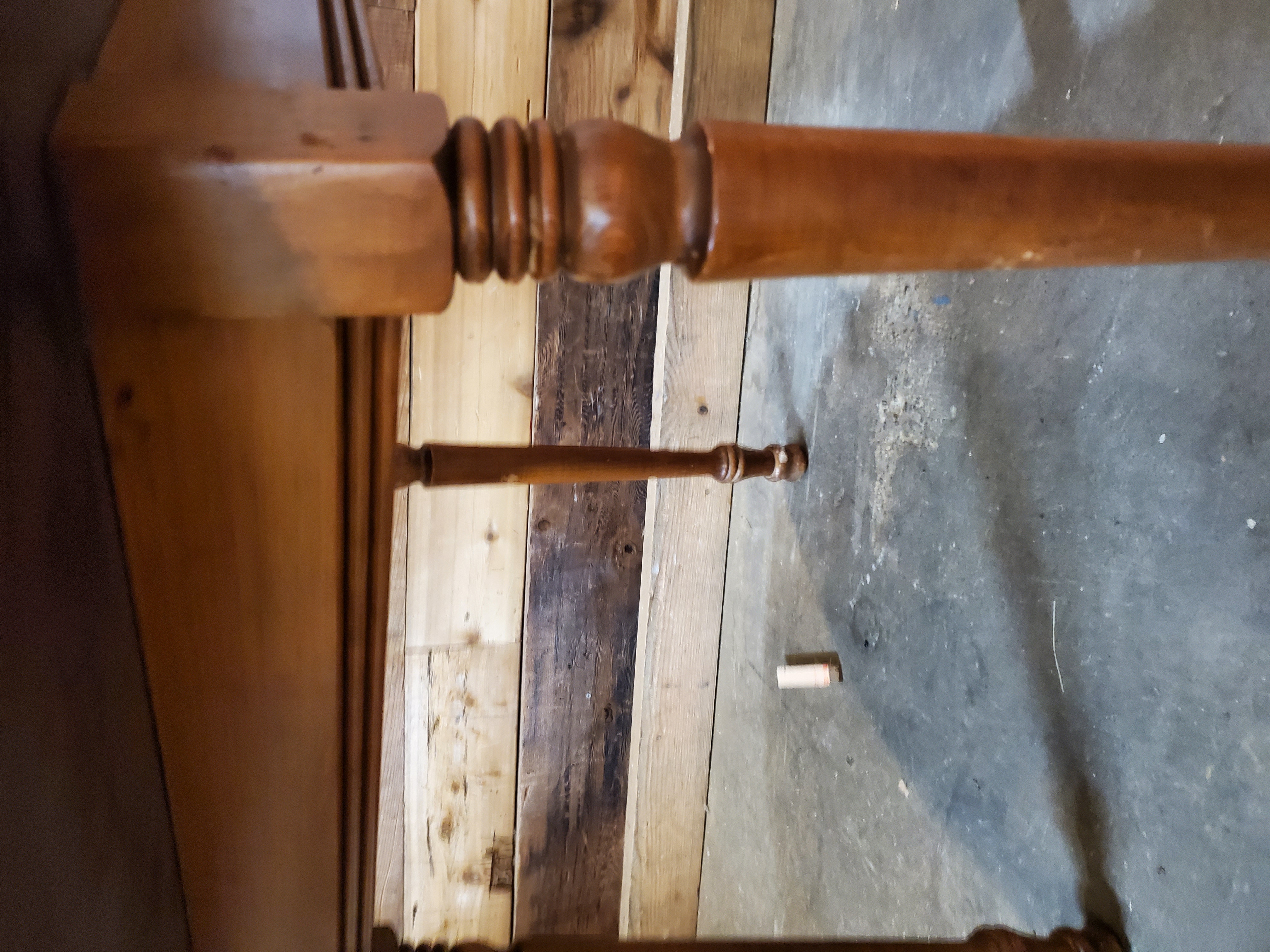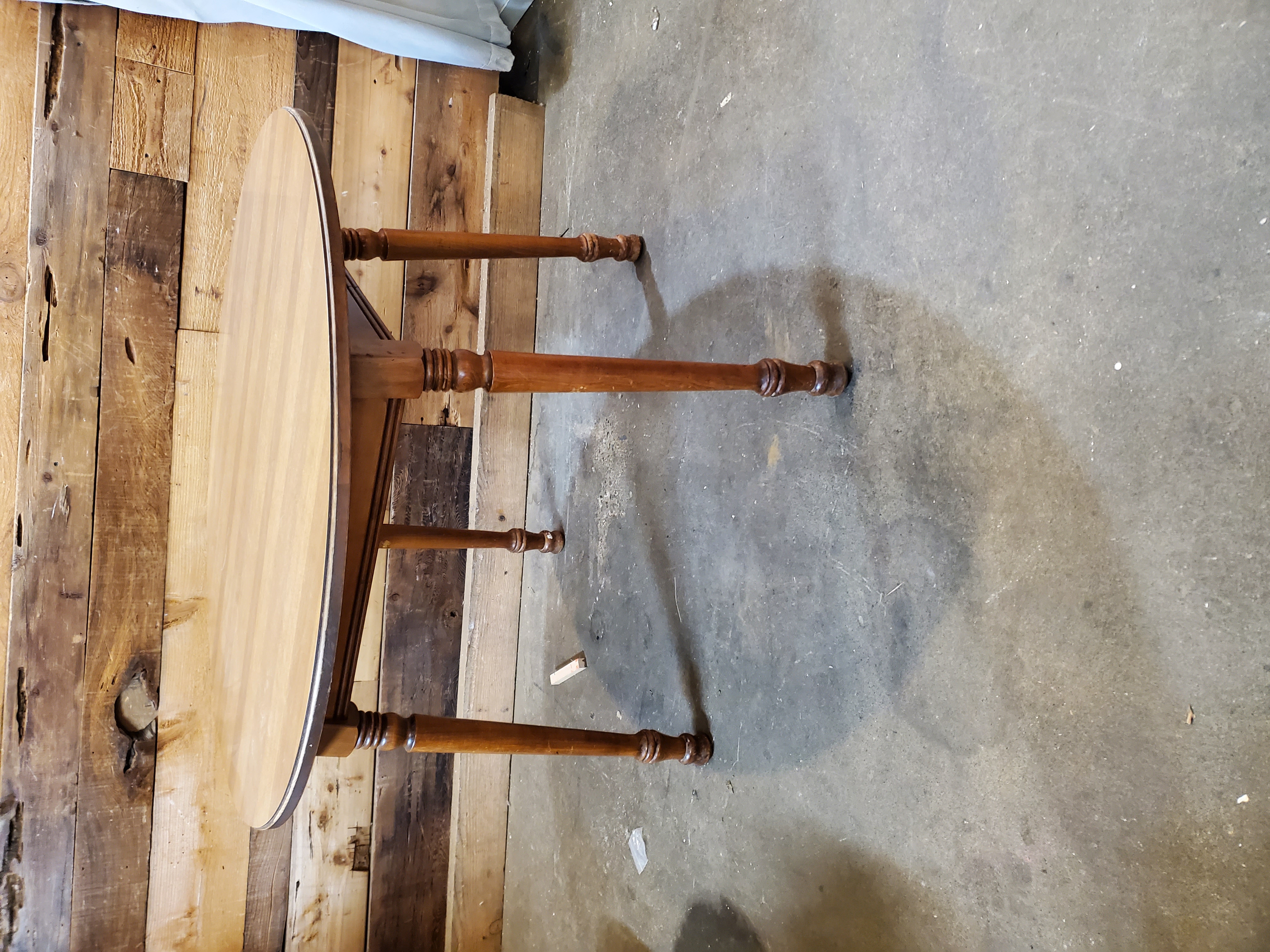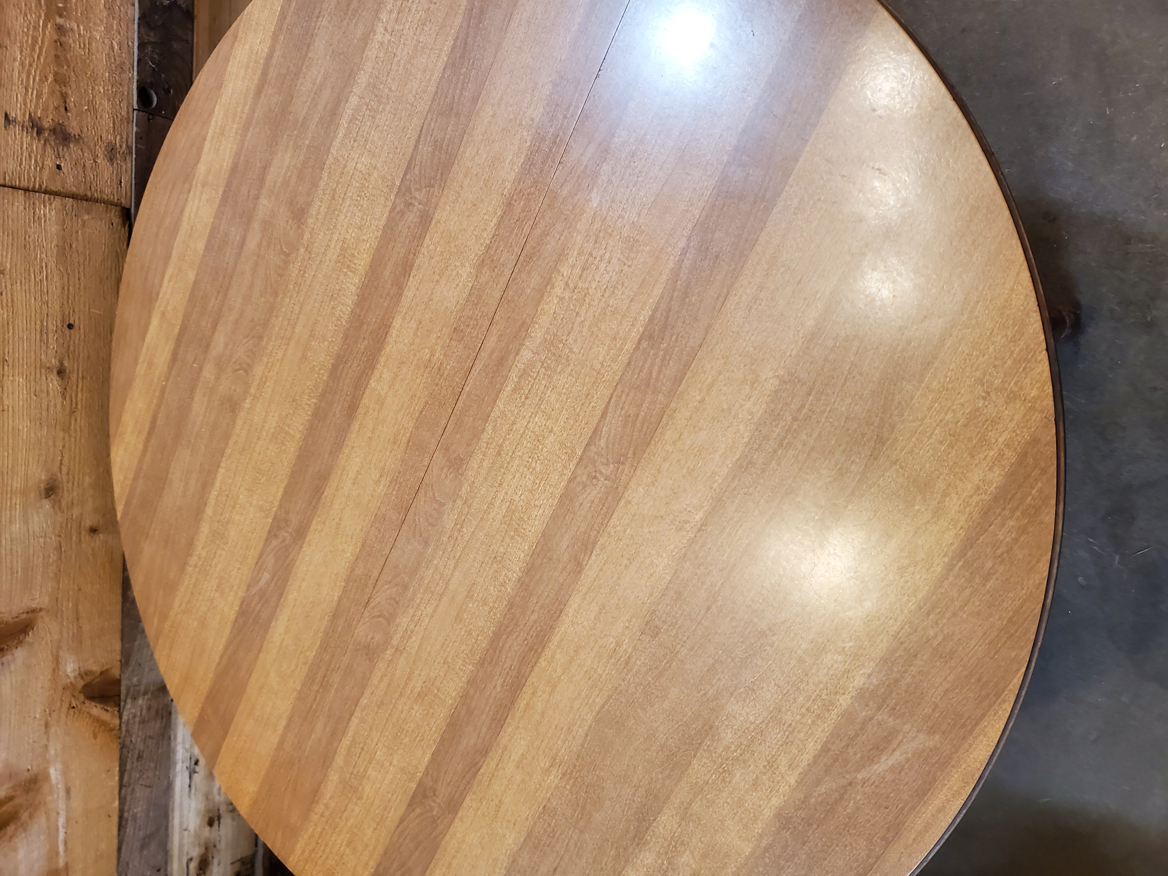 This dining table is in pretty good shape. The leaf is missing but other than that no structural damage. There a few scratches on the top but nothing super noticeable.