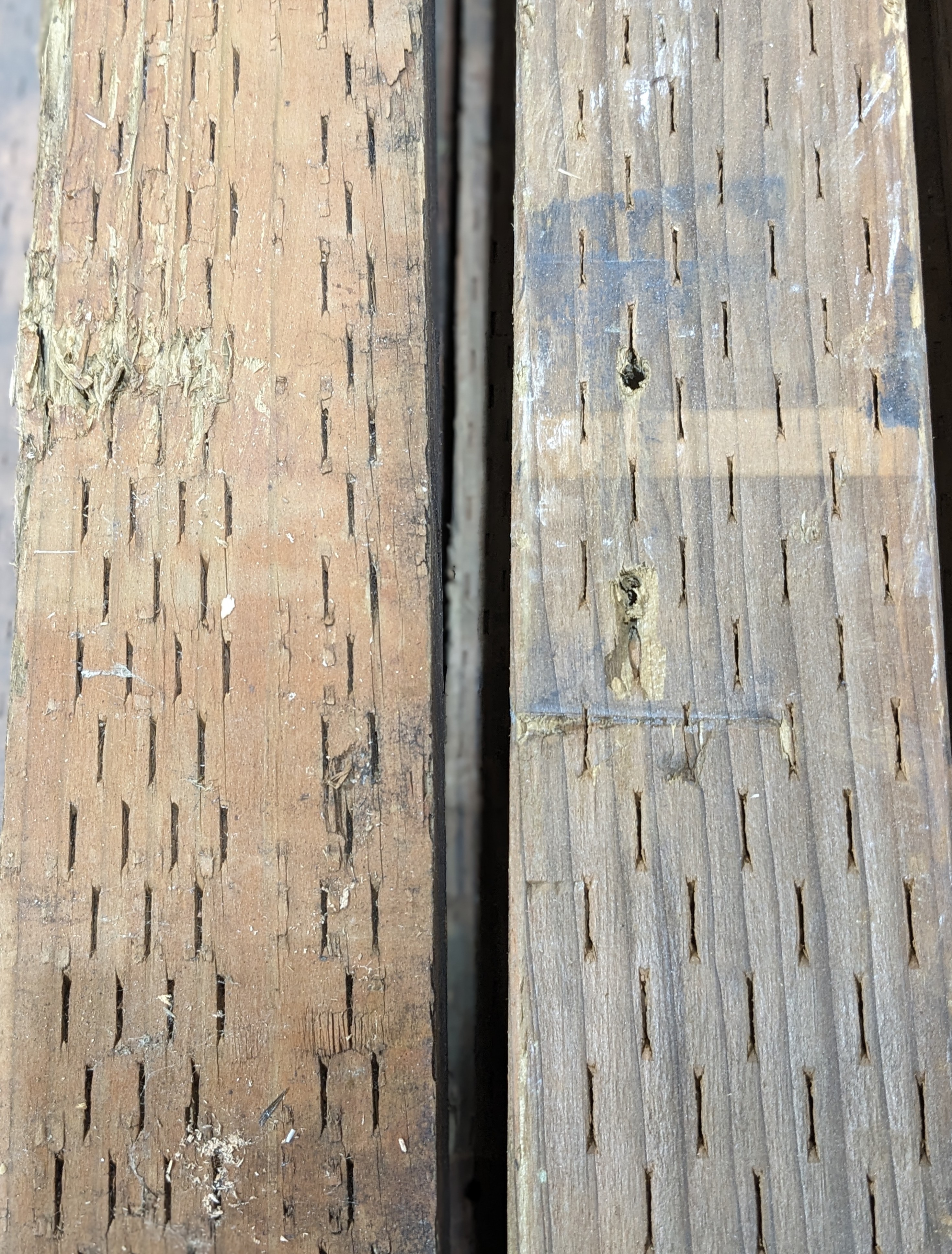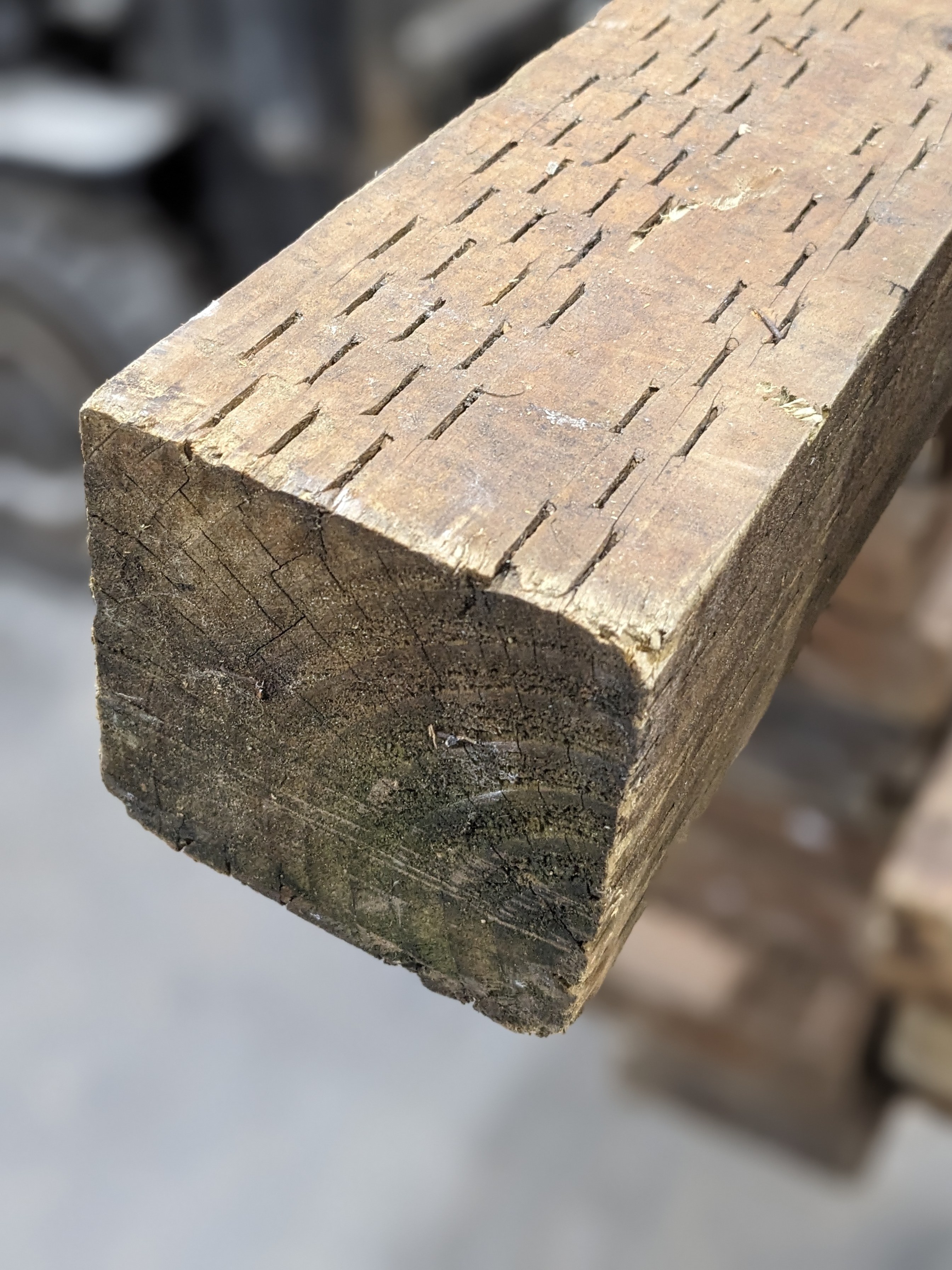 These sturdy pressure treated boards are perfect for your next outdoor project. Pictures are representational. The sides may be chipped. The ends also contain slight cracking. Pieces may contain small pieces of metal. They also might be warped/twisted to various degrees.