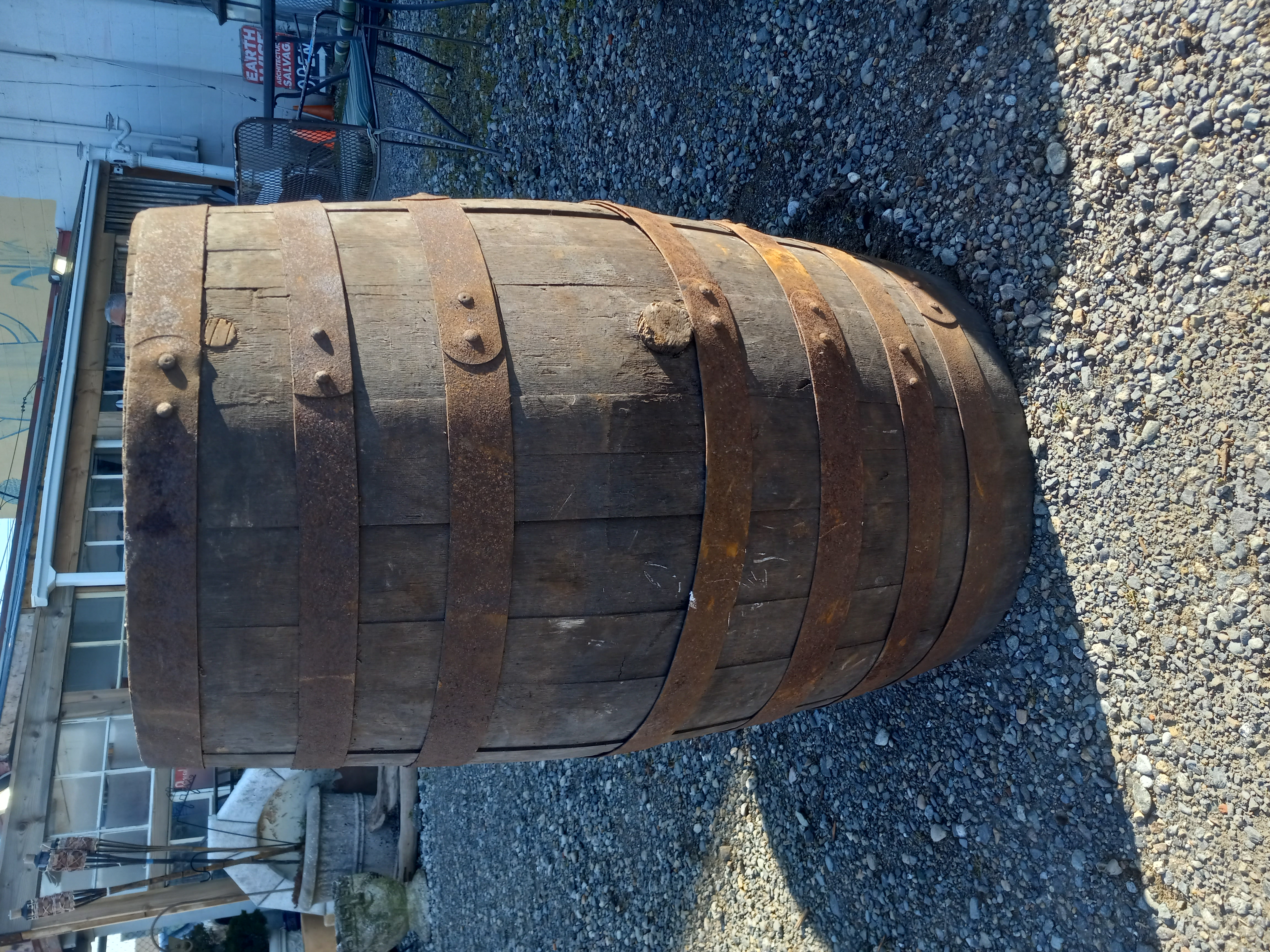 This vintage Oak barrel is hand made by home brewer. Can be refinished and used for all sorts of neat things. Get one before they're gone!!