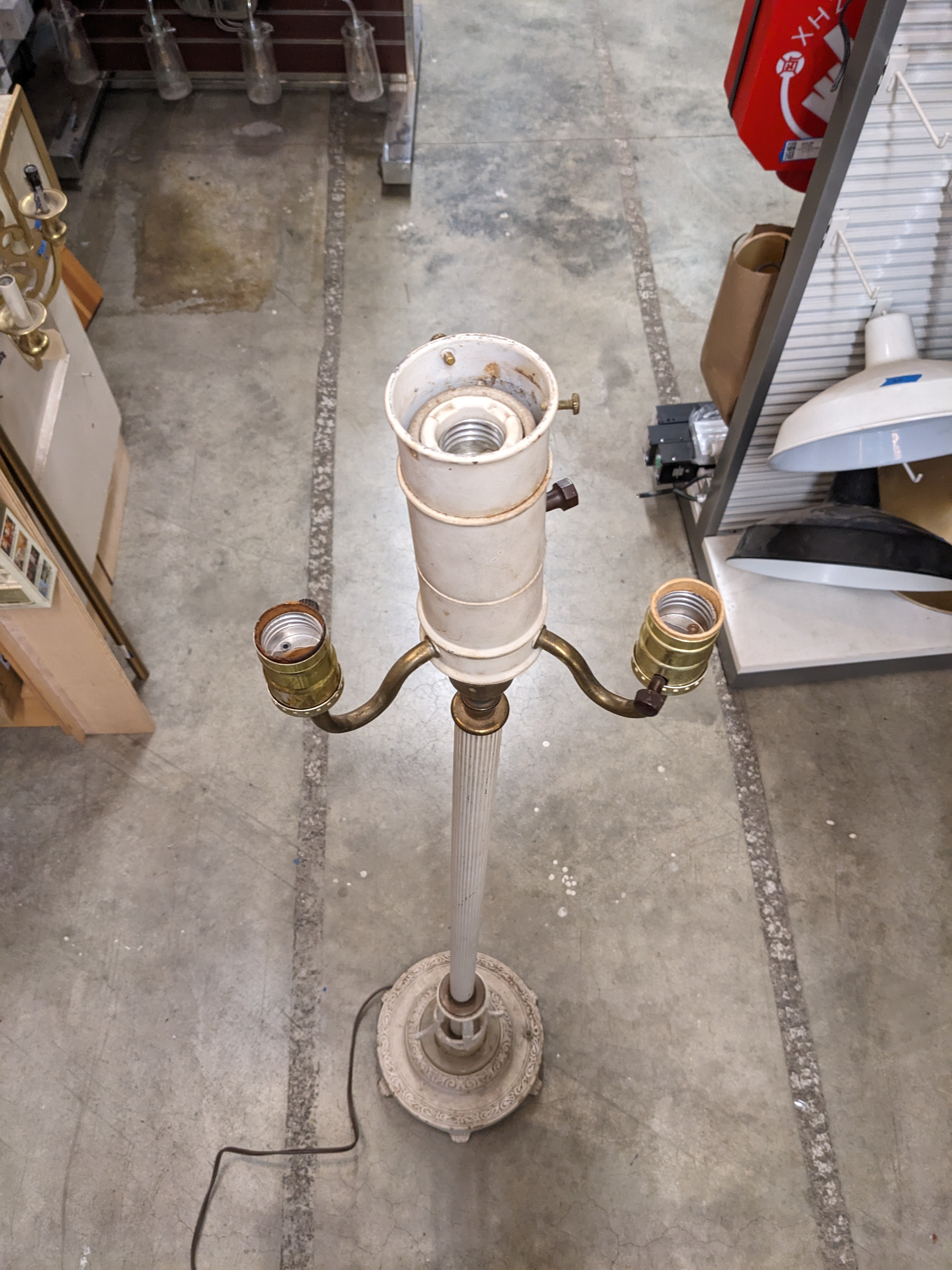 Since there is no current shade attached, come build your own lamp here at Earthwise! We'd be happy to help you out!