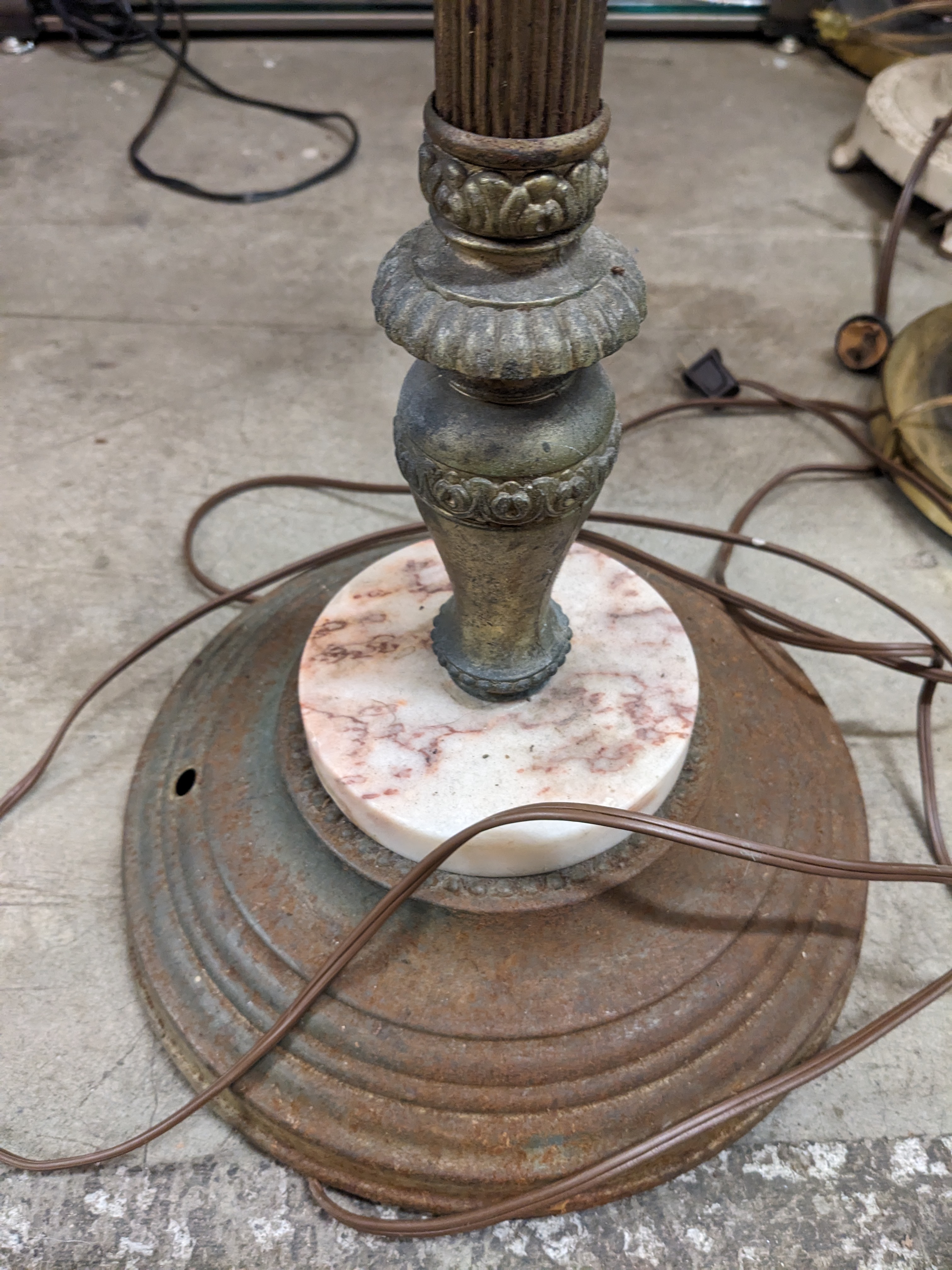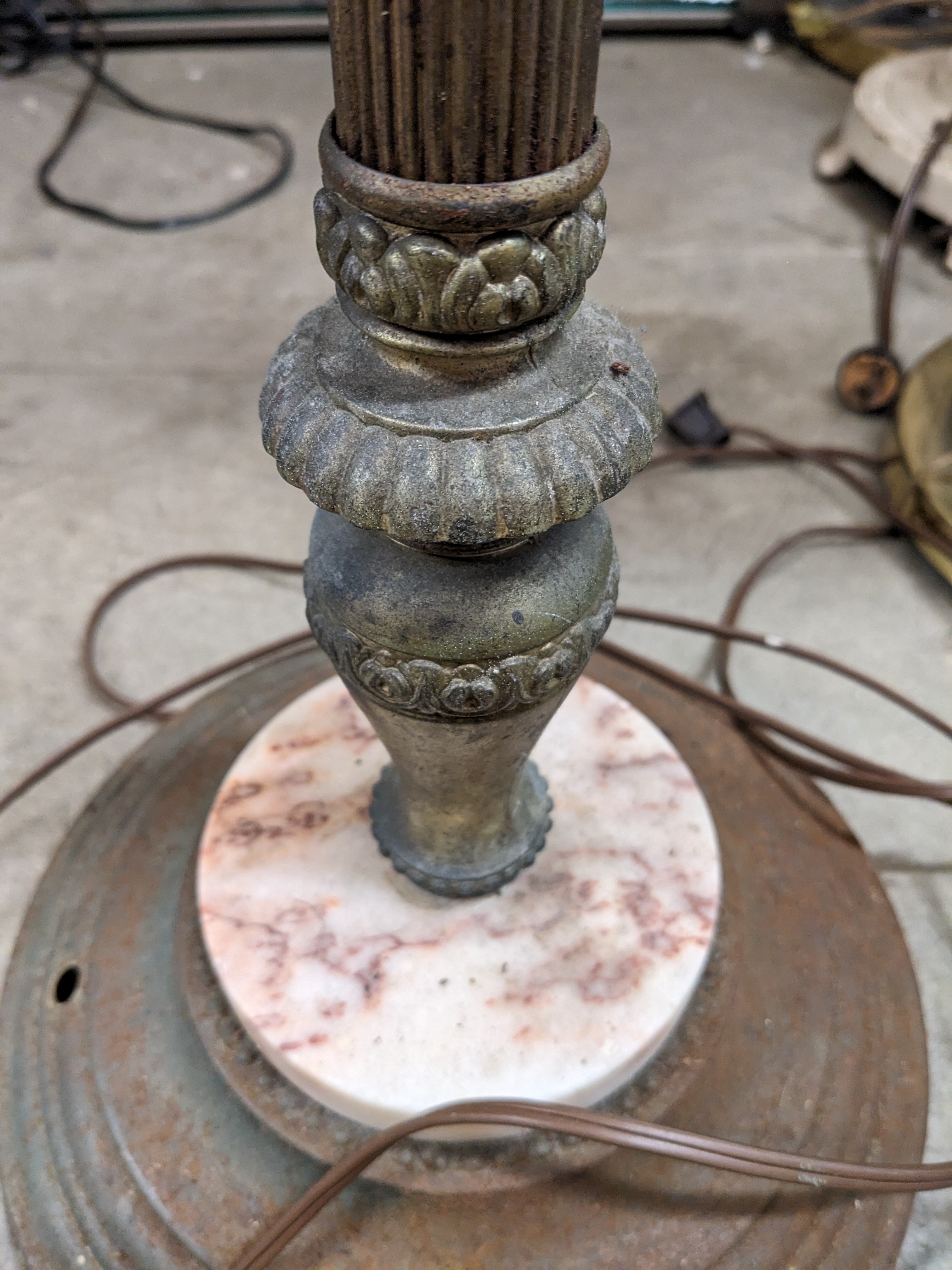 A lot of detail in this lamp; little marble ring at the base, metal detailing, and more! See for yourself today ;) and while you're in, check out our selection of shades, too!