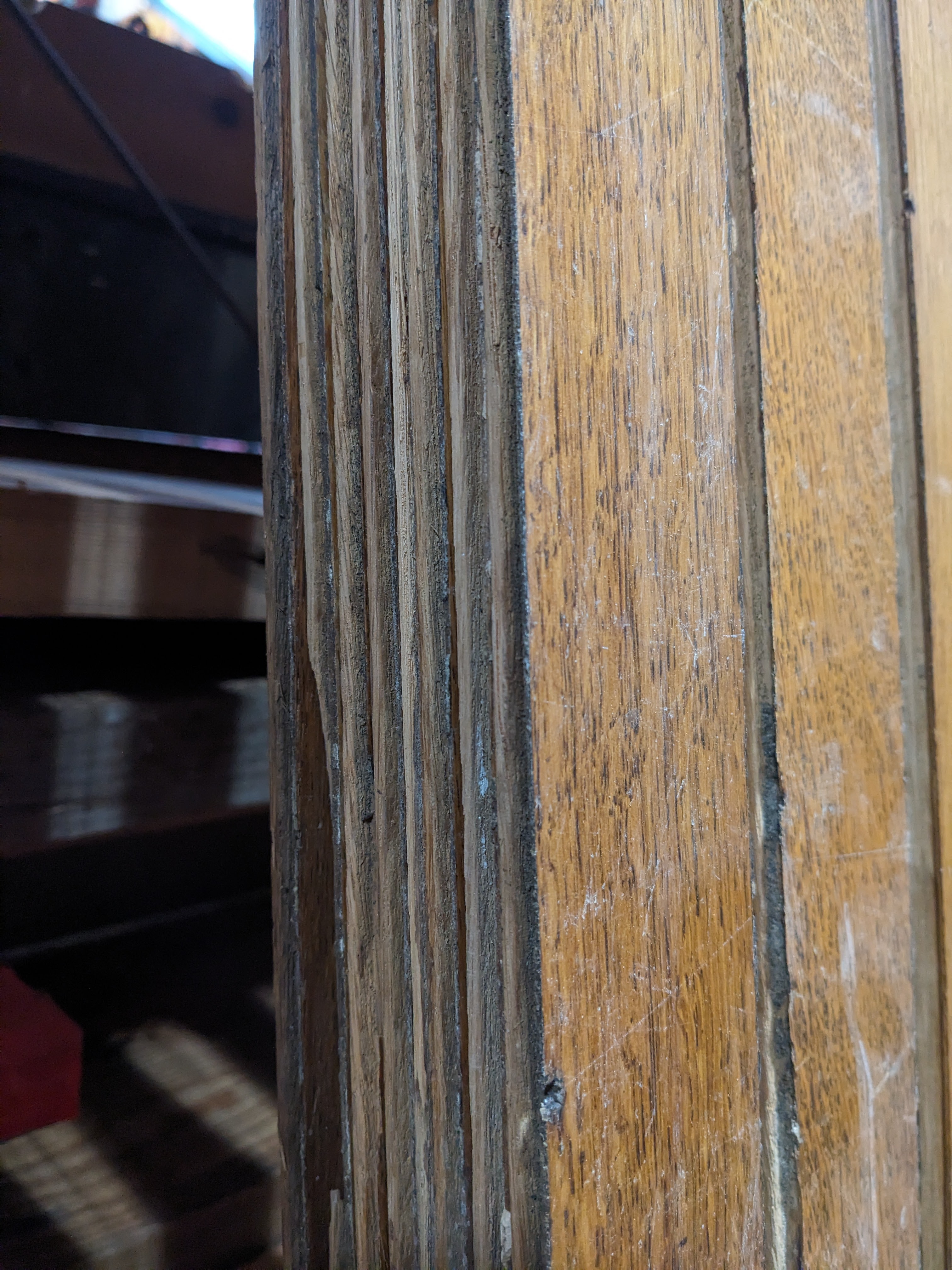 This 2 inch wide, super thin tongue and groove flooring is designed to be installed over existing flooring to give it a classier look. It has very delicate tongue and groove on the sides and should be handled with care. There is a bit of damage to the T+G in places, but it has been carefully salvaged and denailed so it is ready for it's next home! There are eight boards of similar length in each bundle.